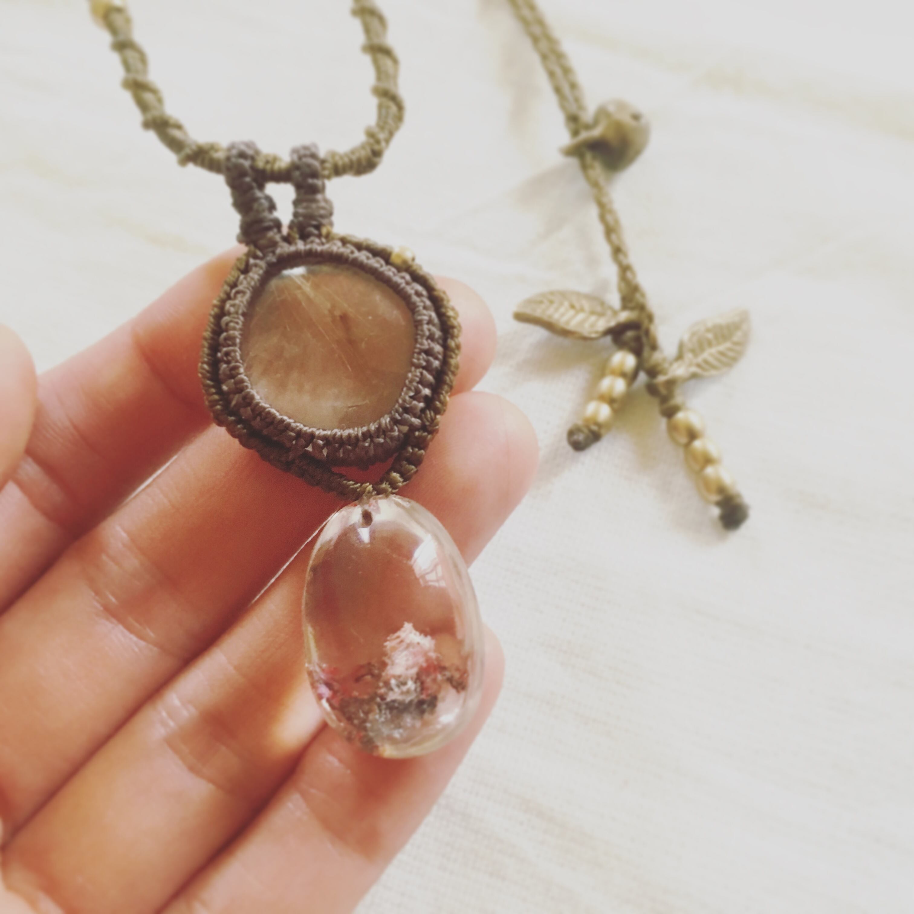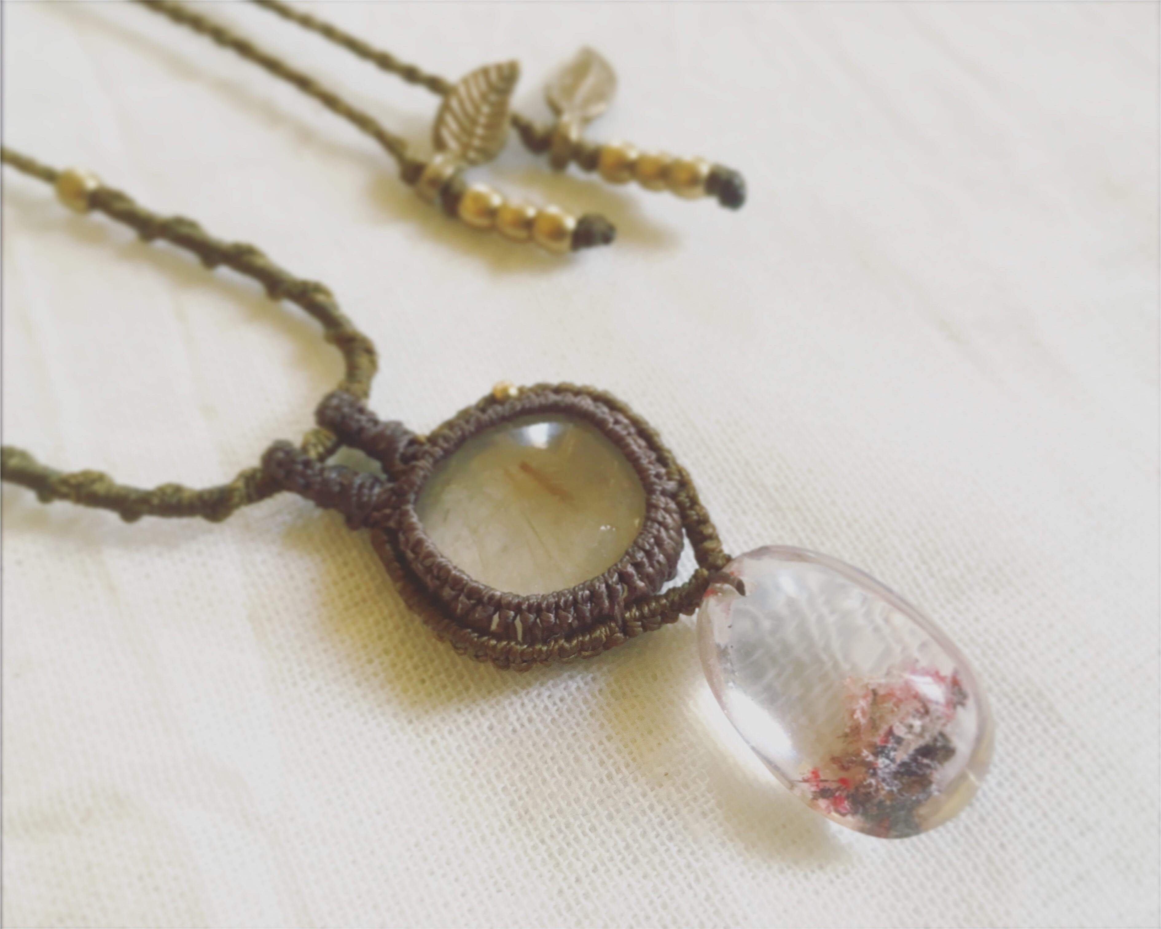 Rutile Quartz & Garden Quartz Macrame Necklace