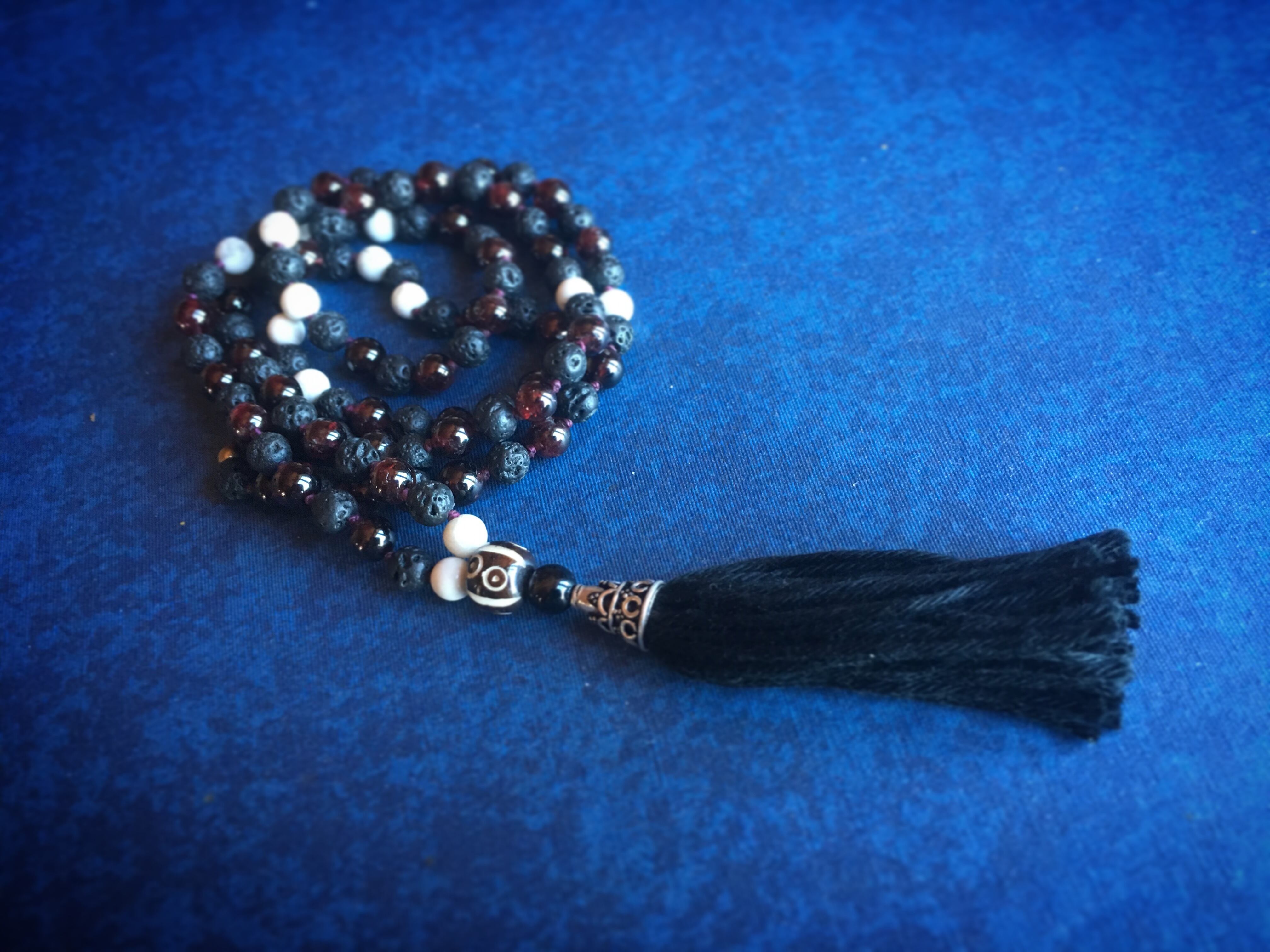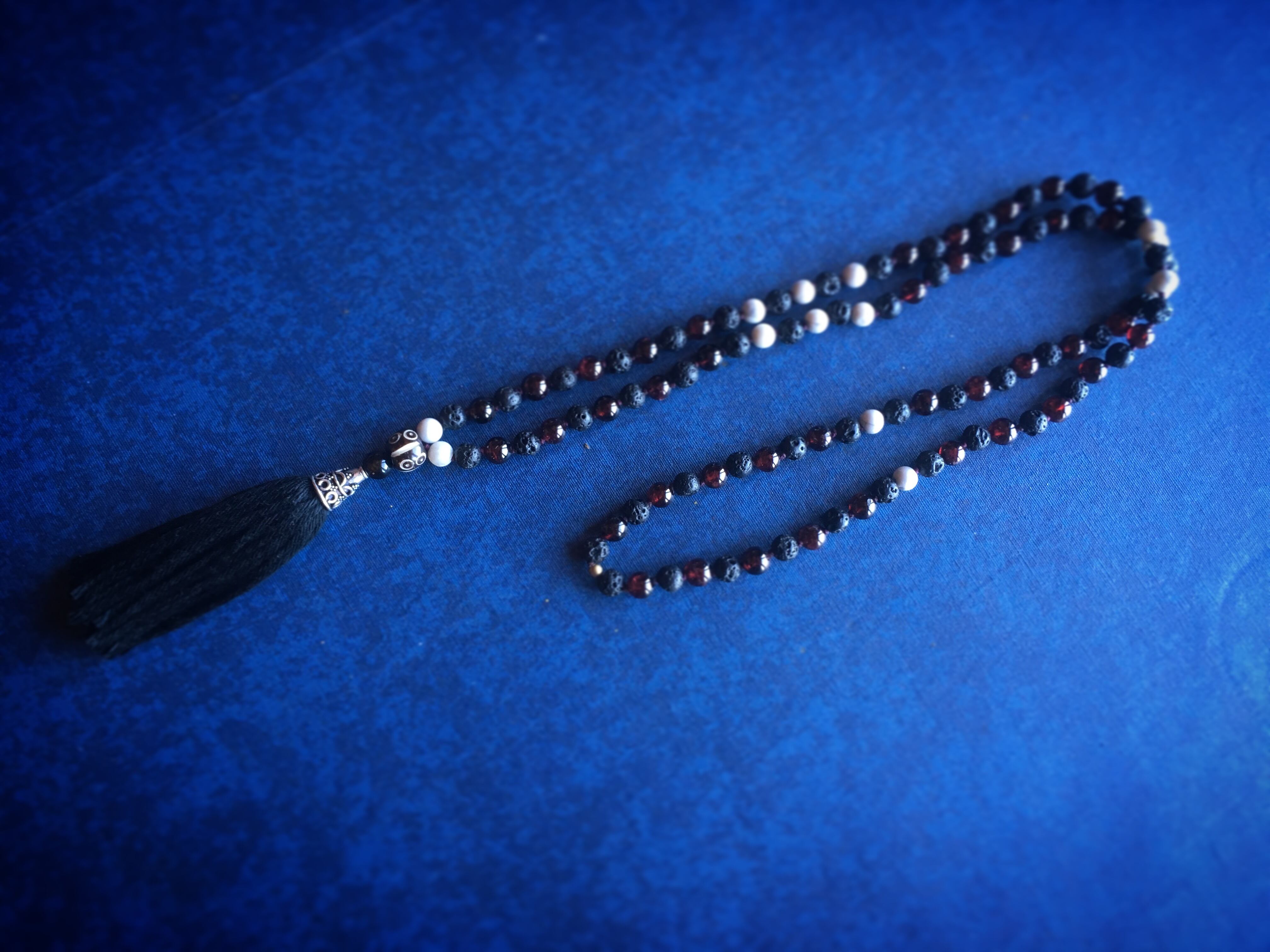 Japa Mala 001 Lava Stone,Garnet,Howlite