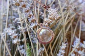 紐と石の周りはライトブラウンの糸、それを6色の糸で装飾しています。