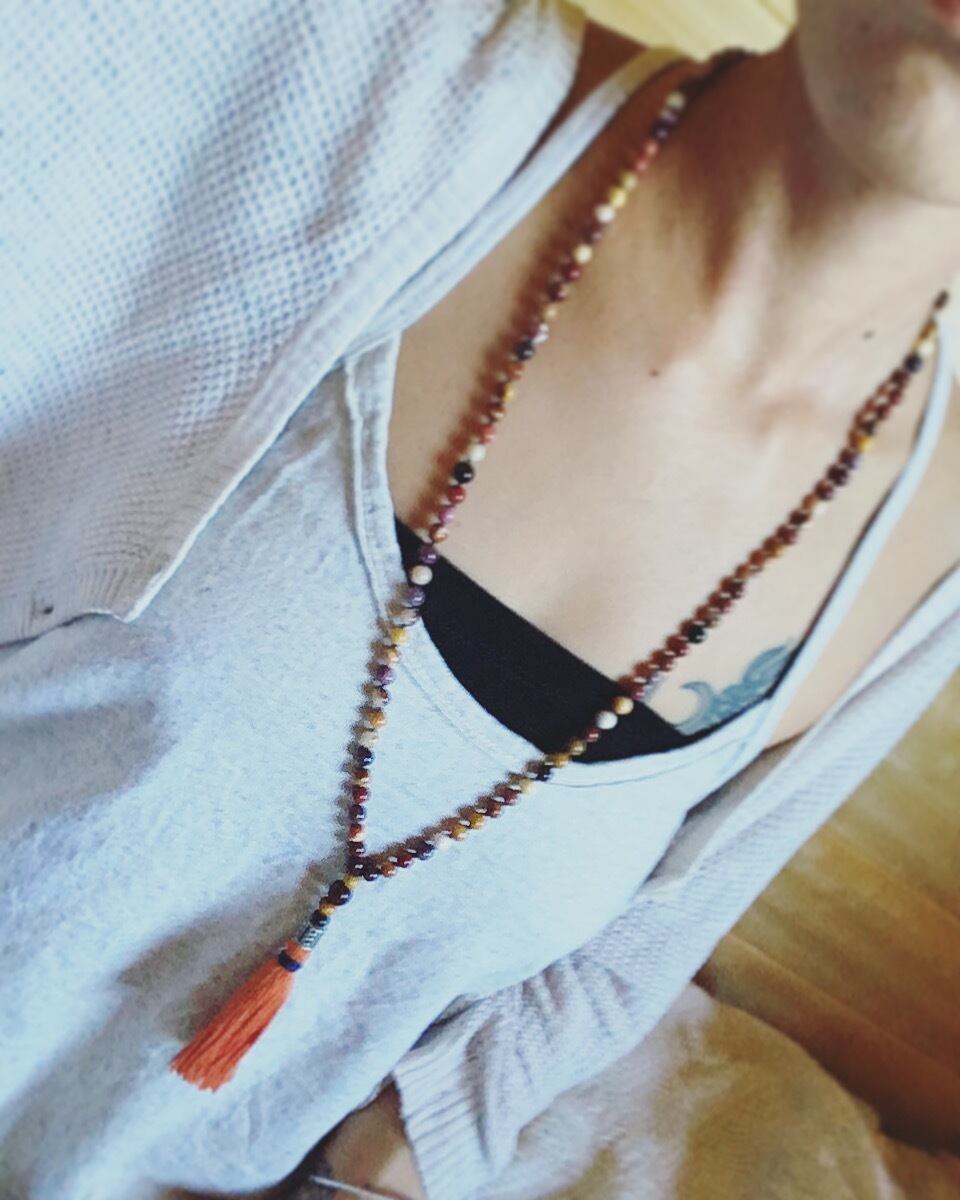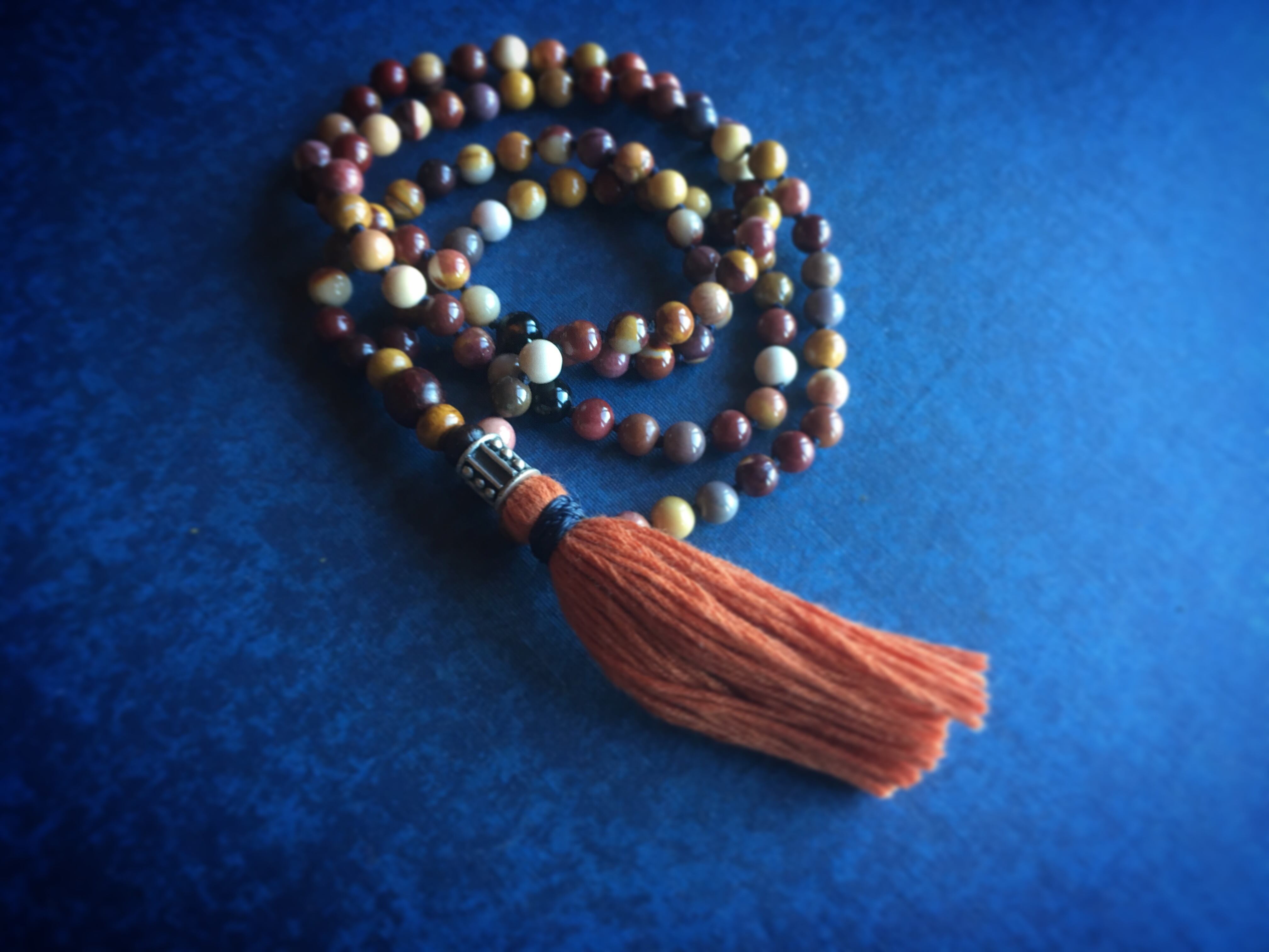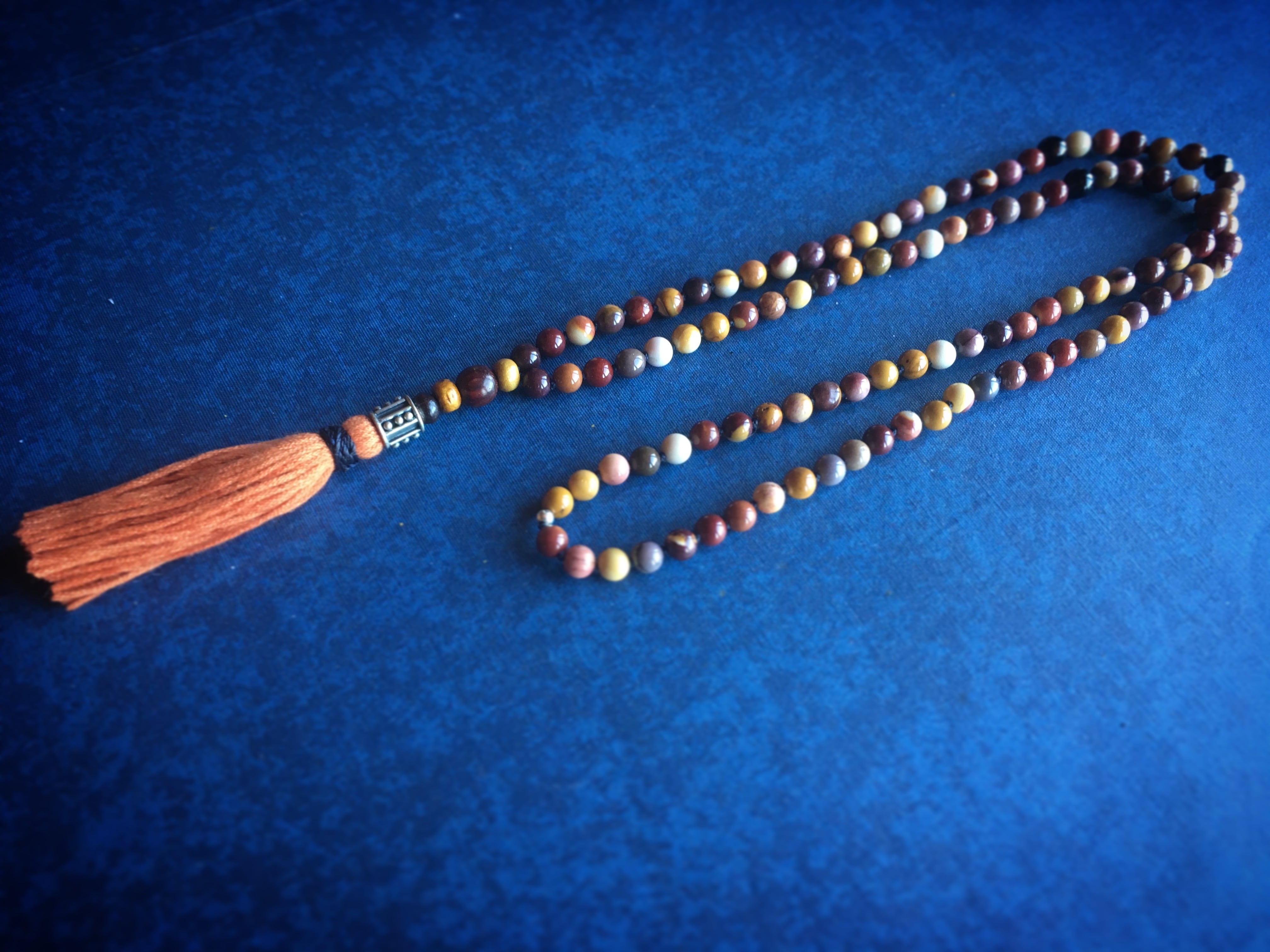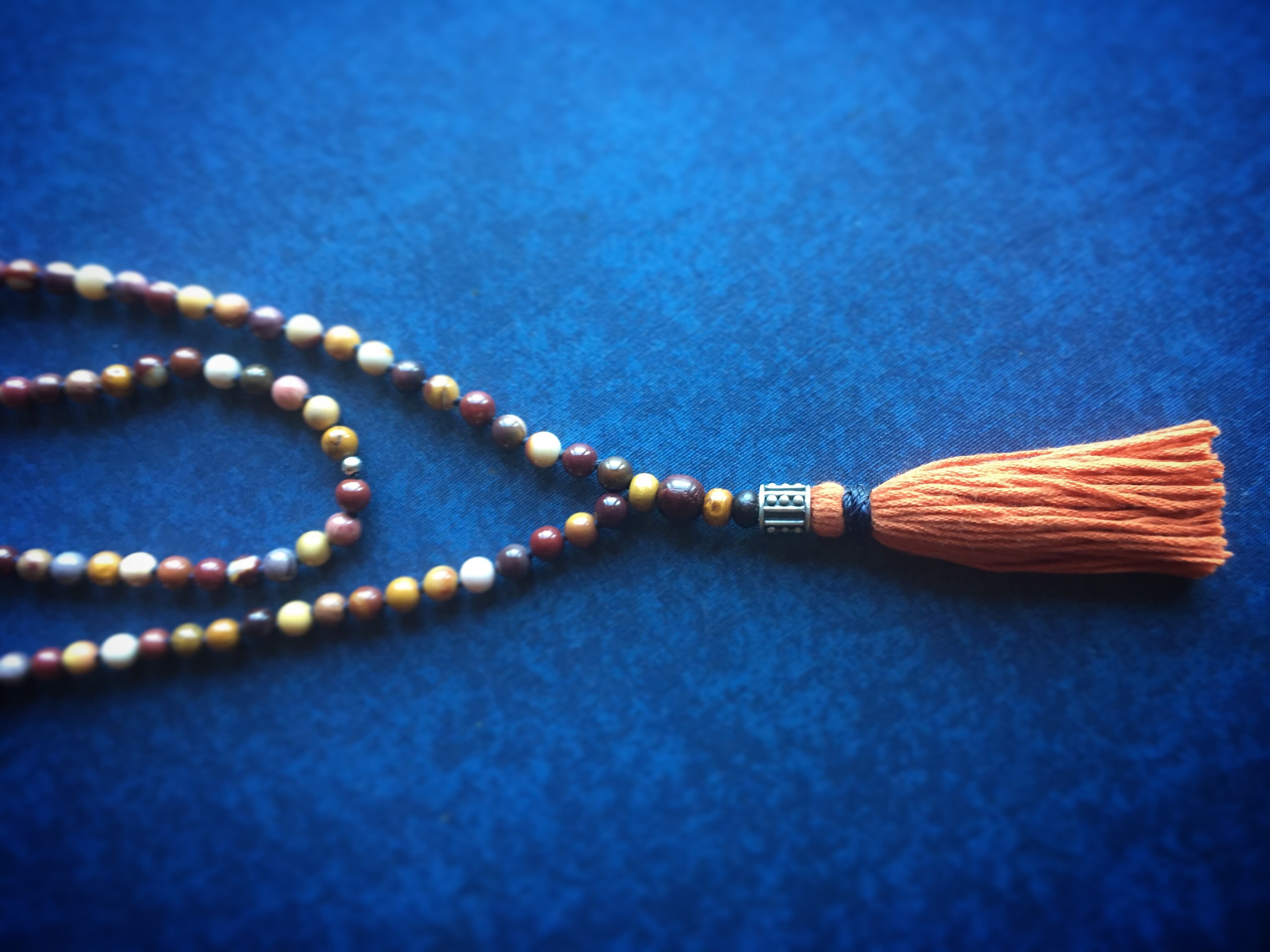 ひとつビーズを通して、ひとつ結び目を作る。マラを繰っていくとき、ビーズとビーズの間、この結び目に瞑想が起こる、と言われています。