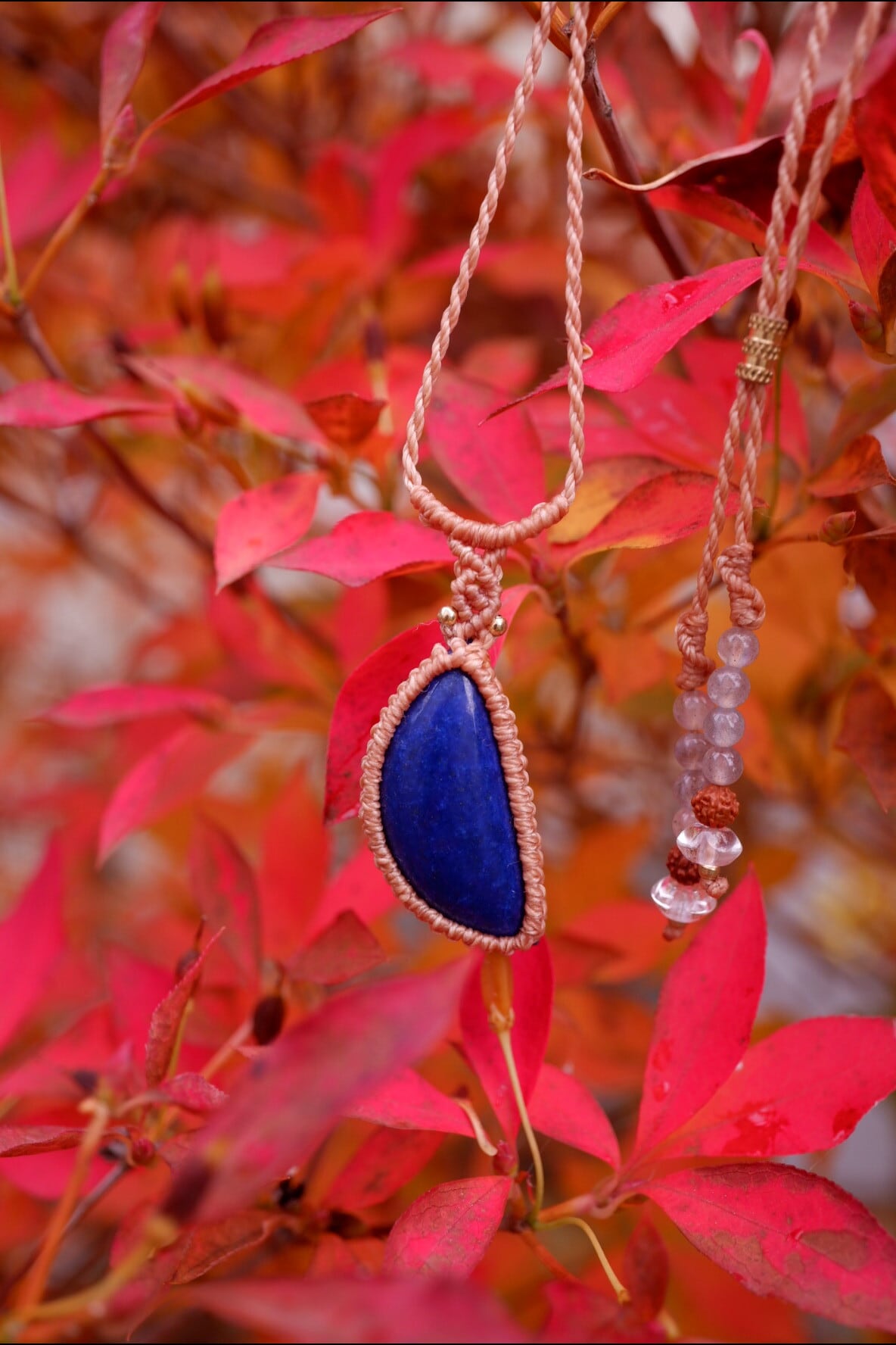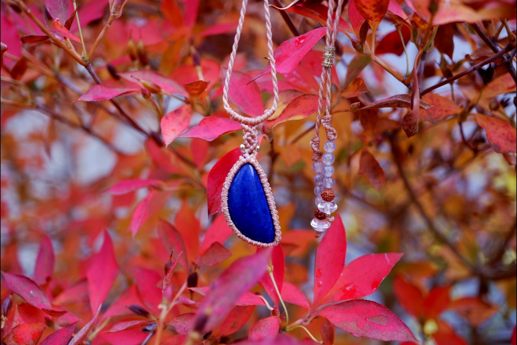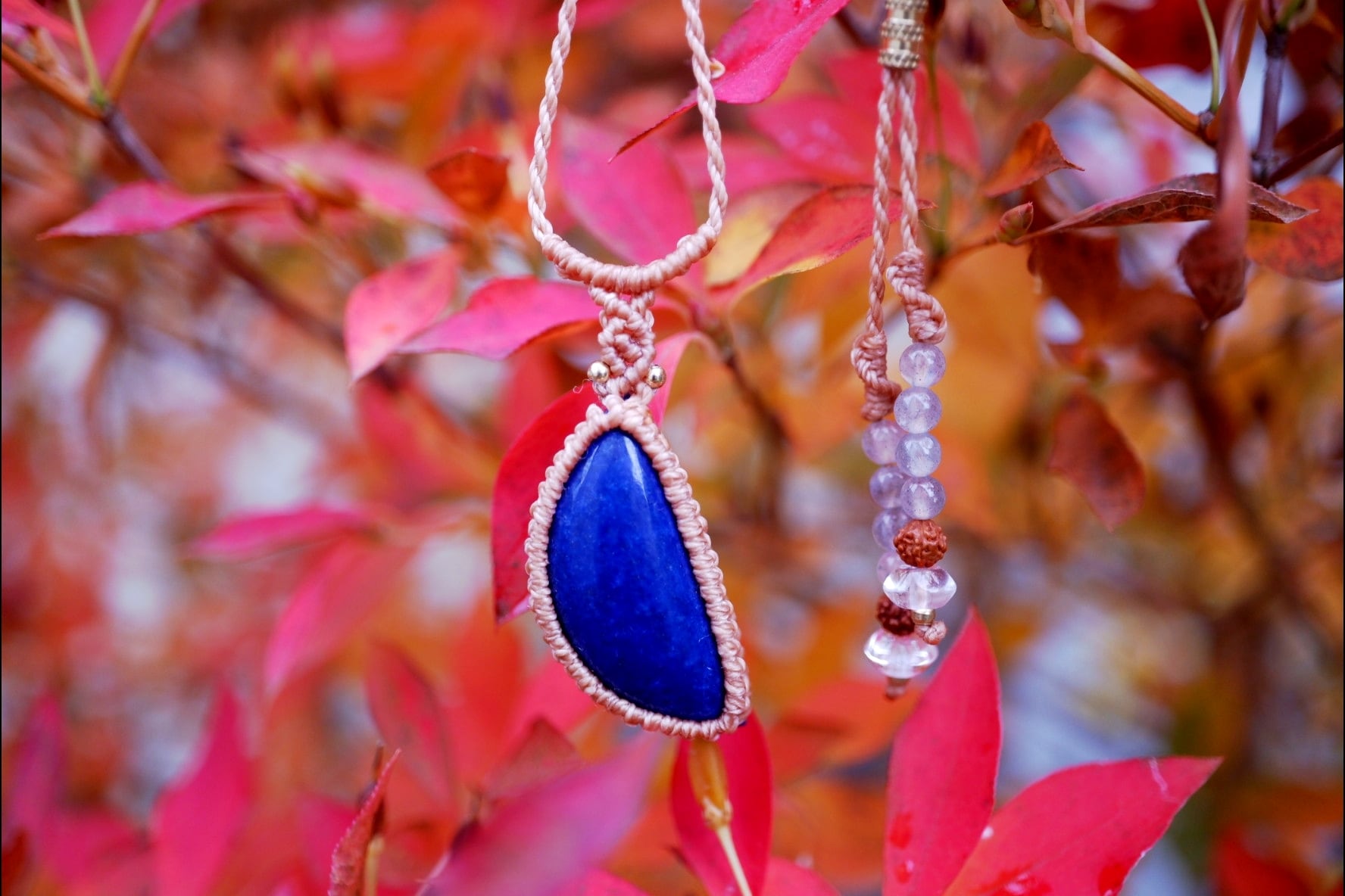 紐を少し短めに、鎖骨あたりに置いても、胸元にゆったり垂らしてもかわいいです。