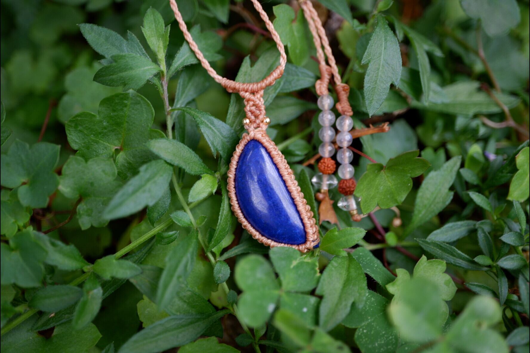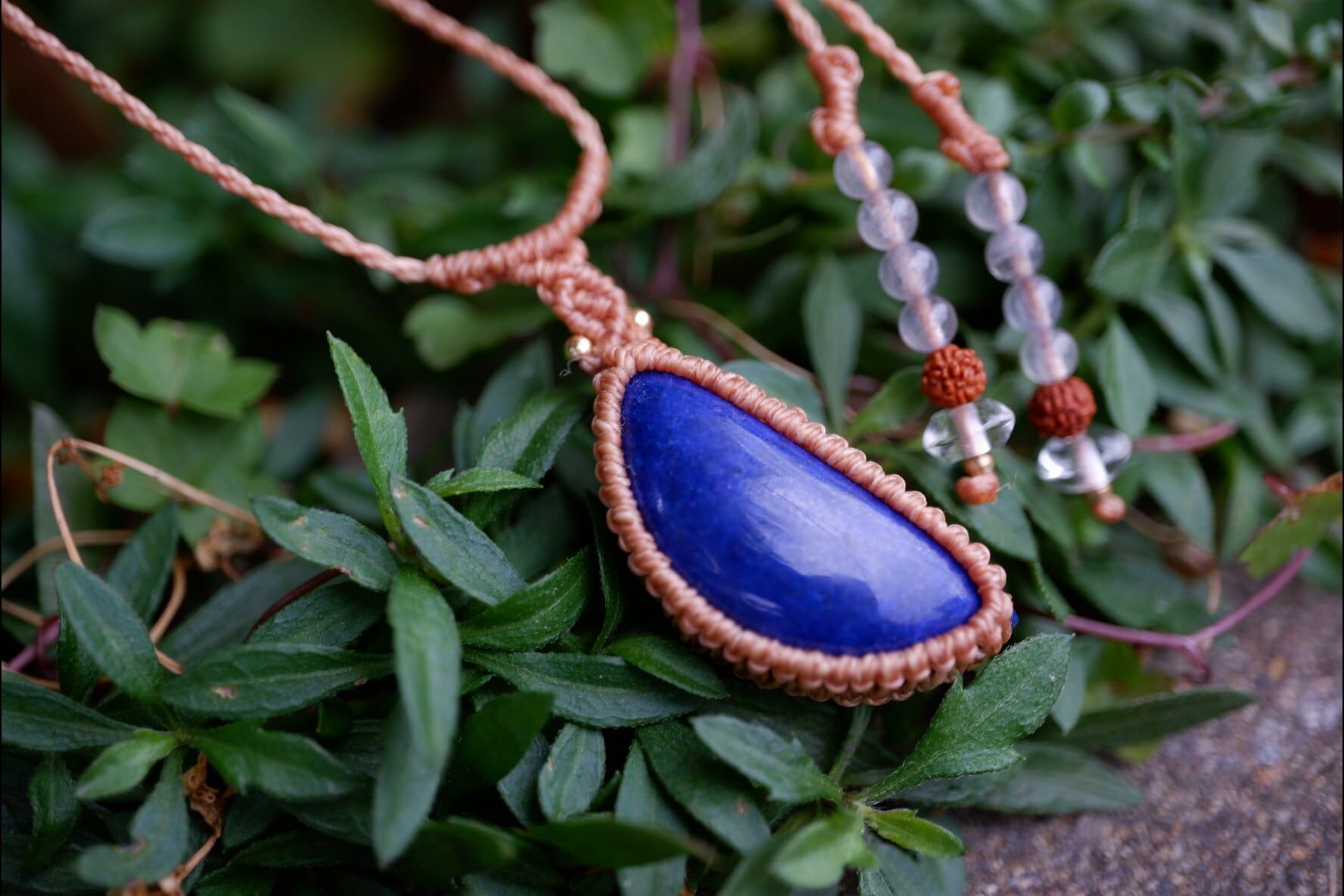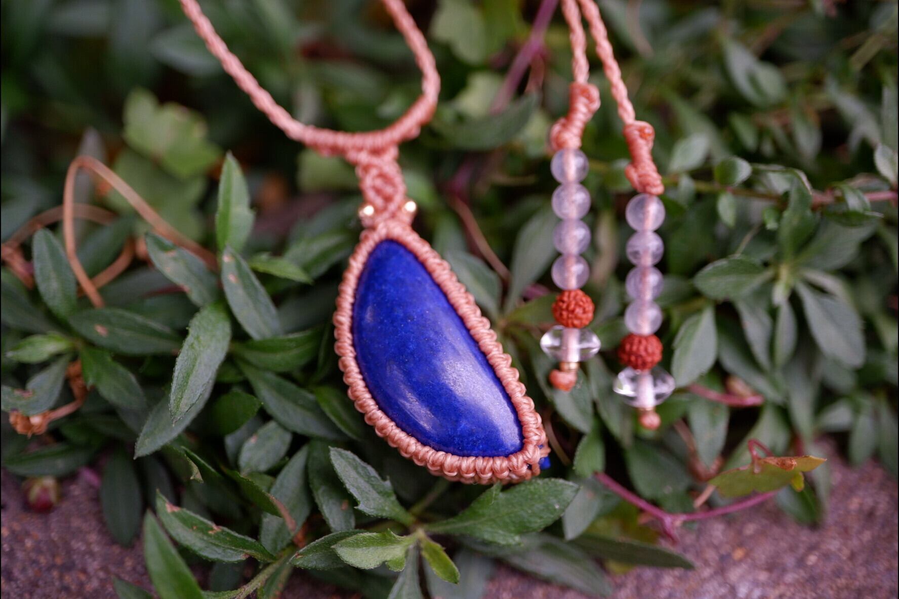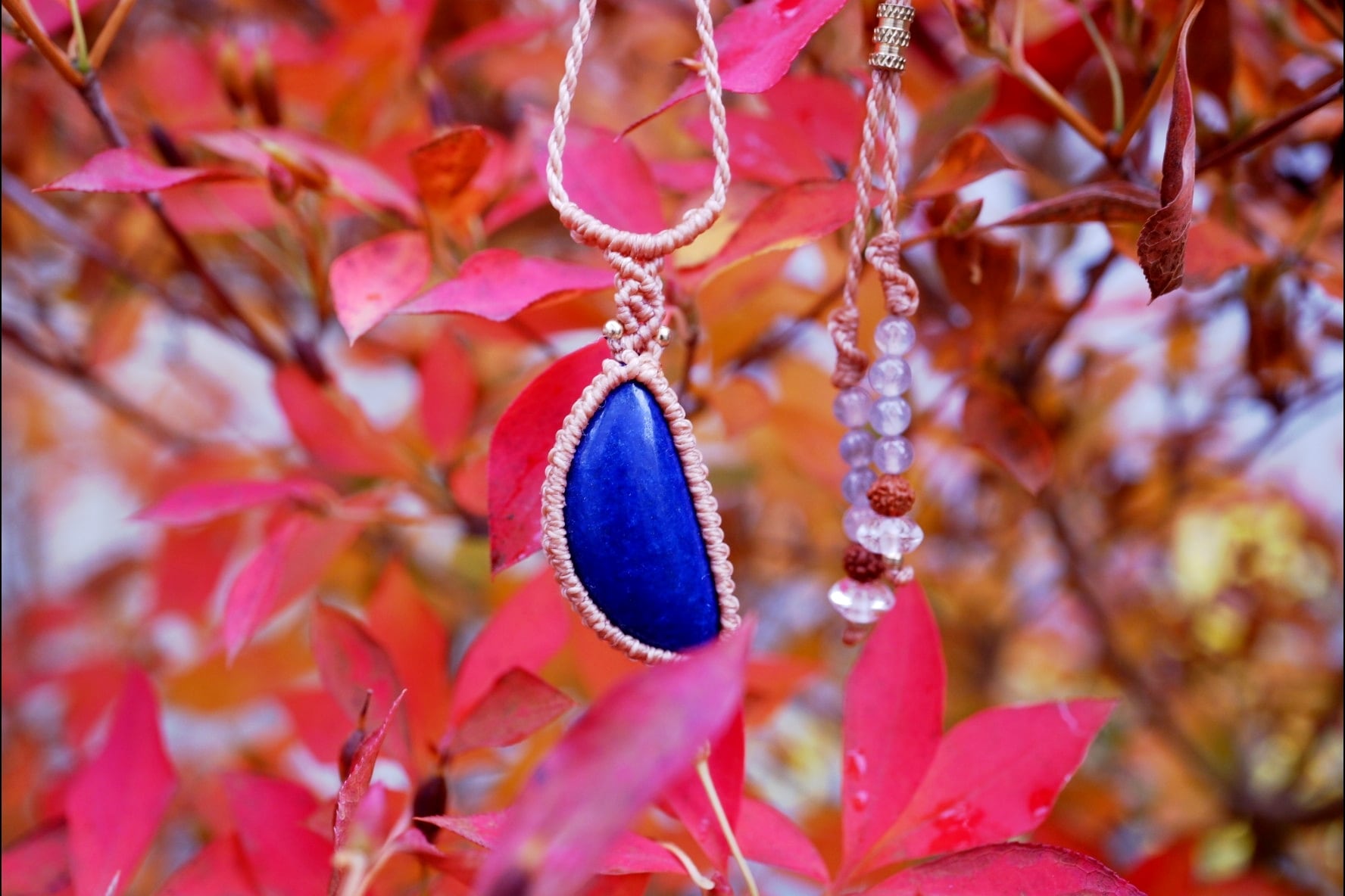背守りにはラブラドライト、ルドラクシャ、水晶。