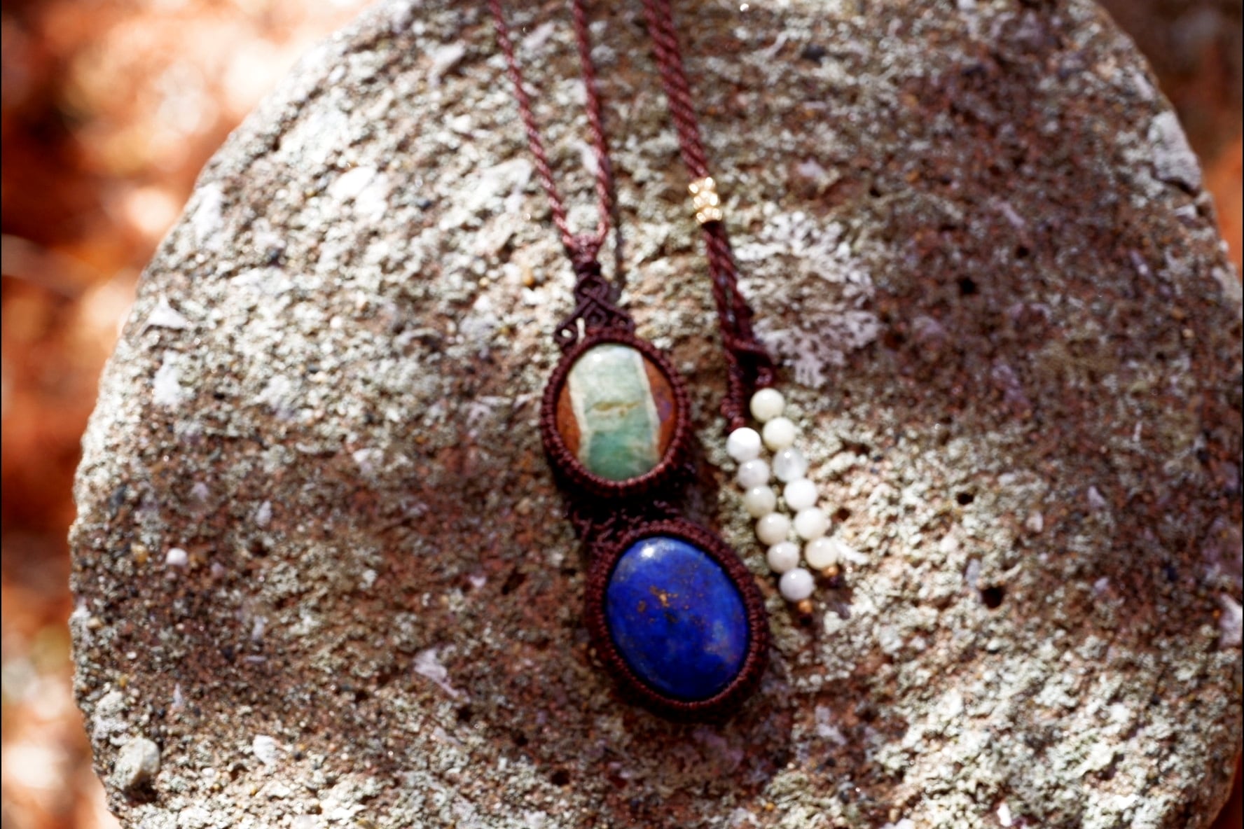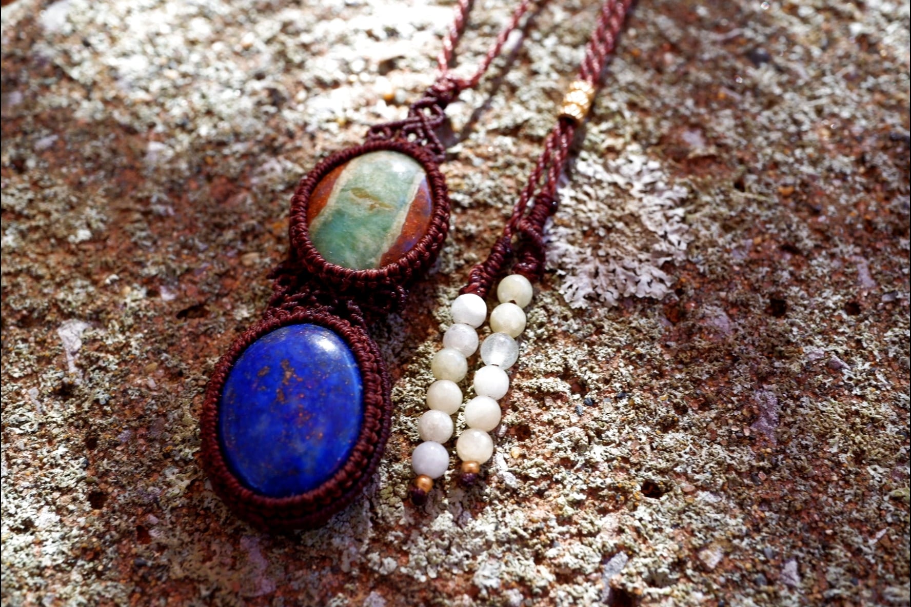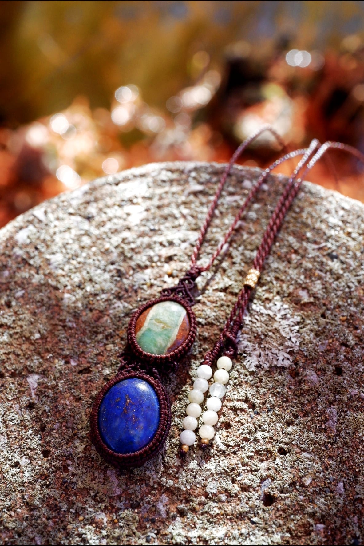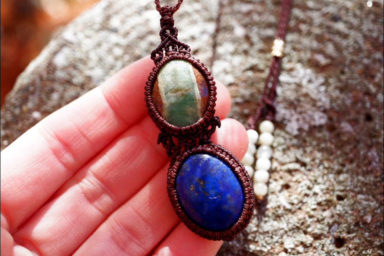 Chrysoprase & Lapis lazuli Macrame Necklace