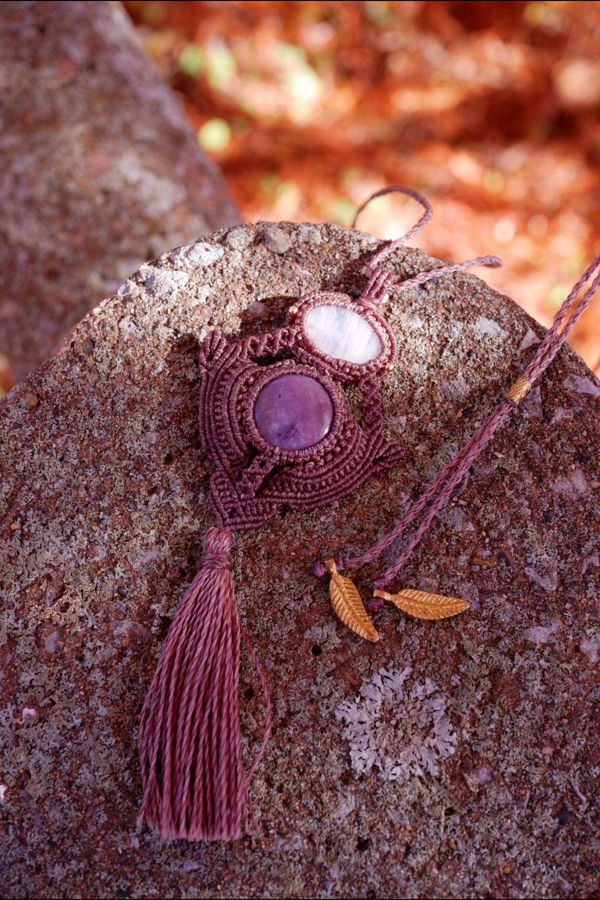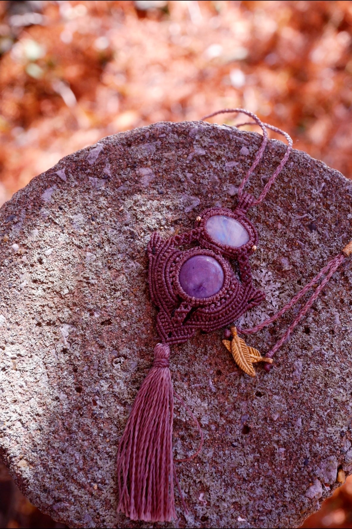 Charoite & Moonstone Angel Macrame Necklace