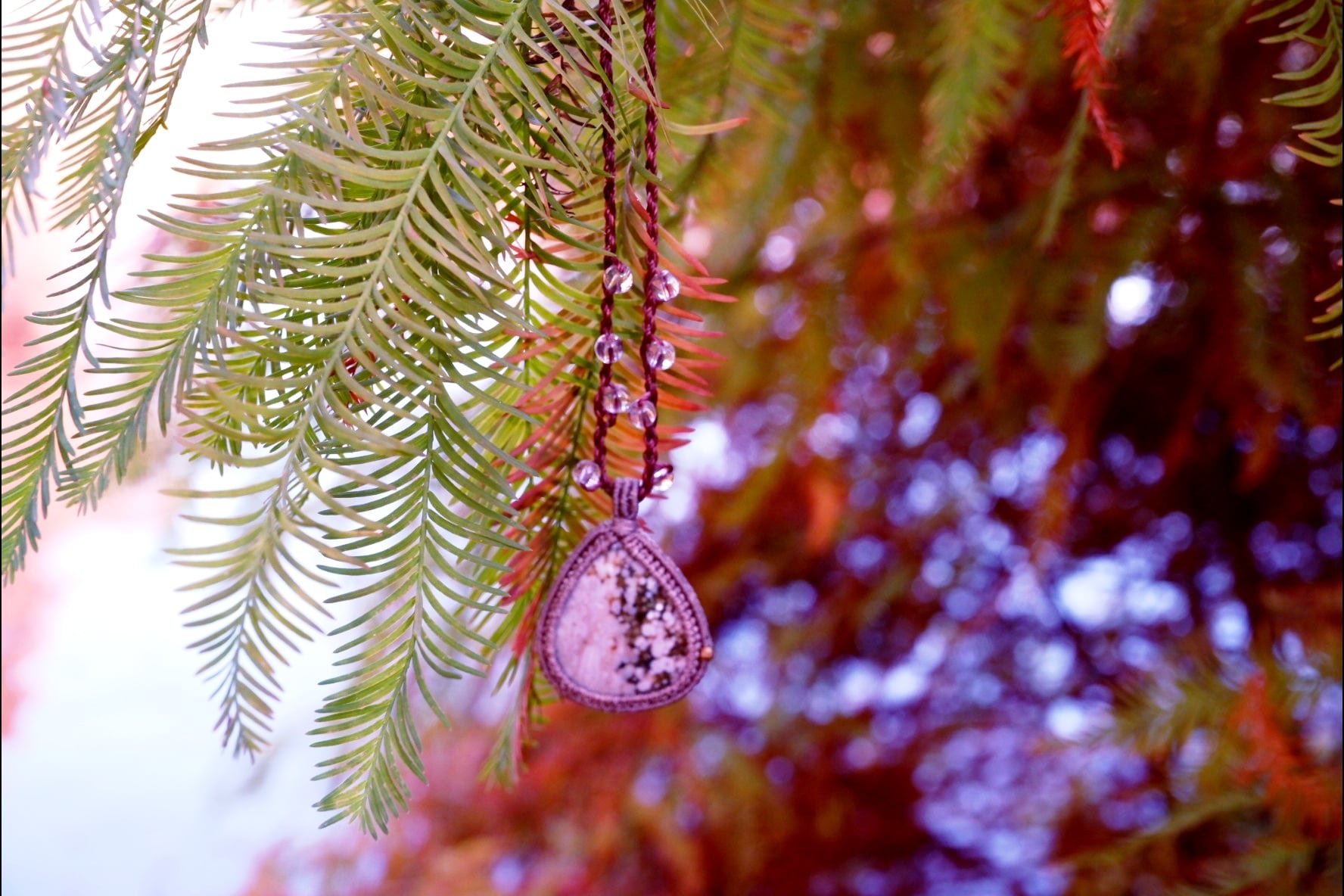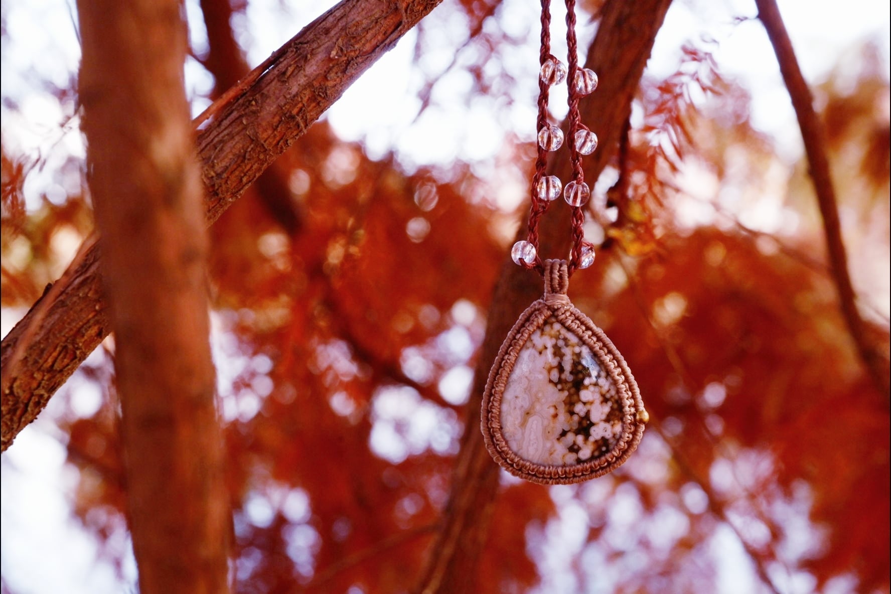 胸元部分に小さな水晶ビーズを配置し、キラリと自然な美しさを引き立てます。