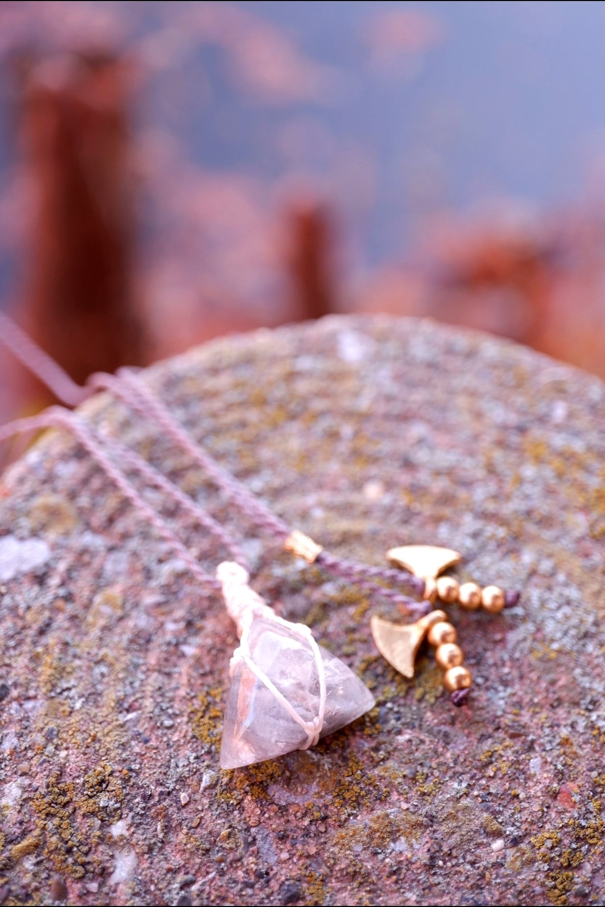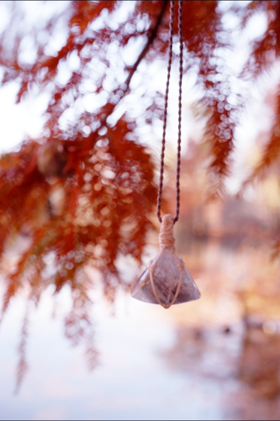 このサンカクの形がユニークなガーデンクォーツは、雪の結晶のように、清らかで、凛としたエネルギーをたたえています。石の内側に広がる世界を柔らかく水晶が守っています。