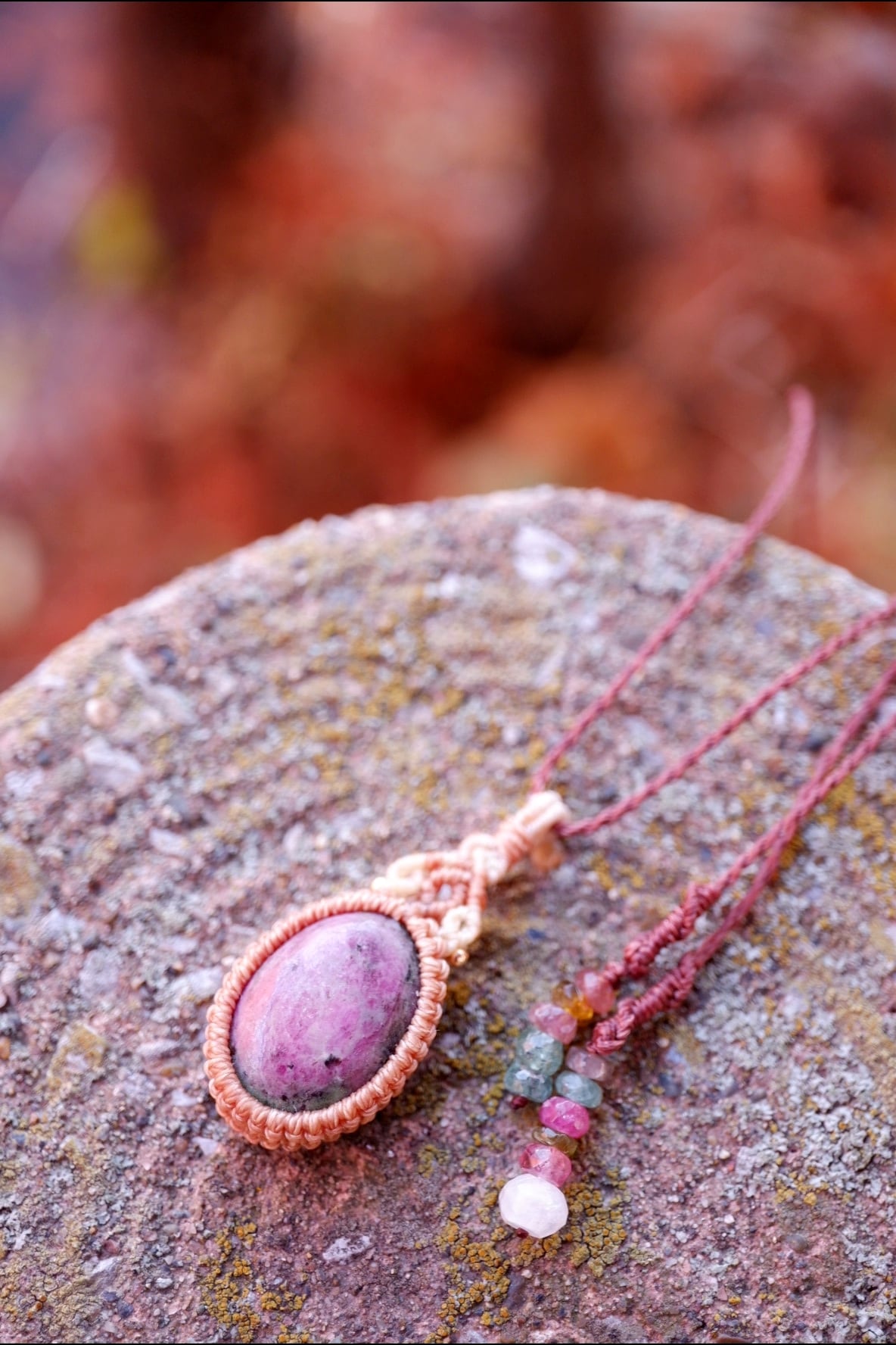 ** ルビーインゾイサイト マクラメネックレス **
