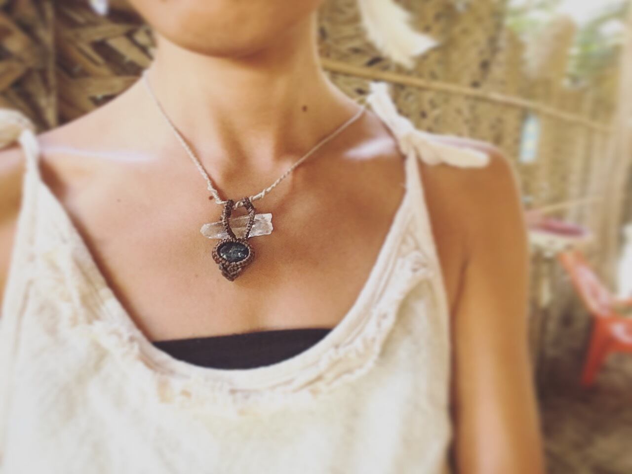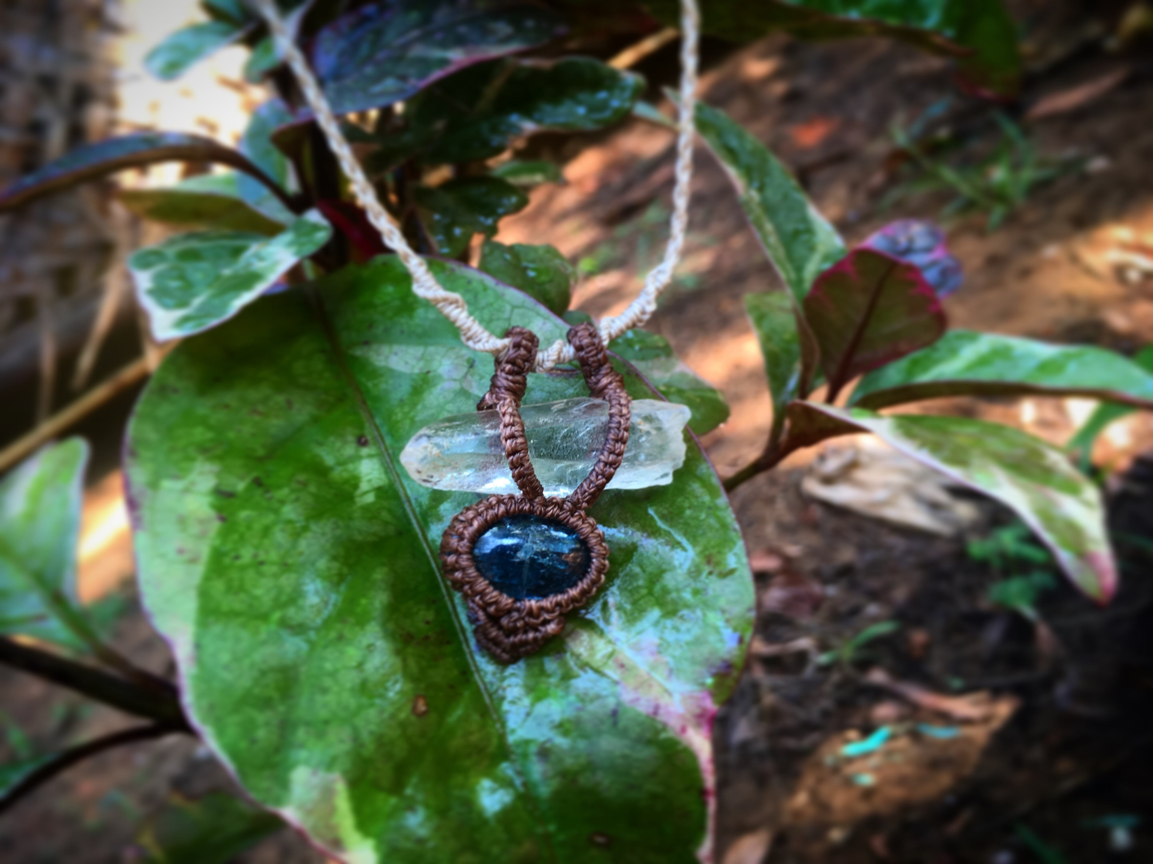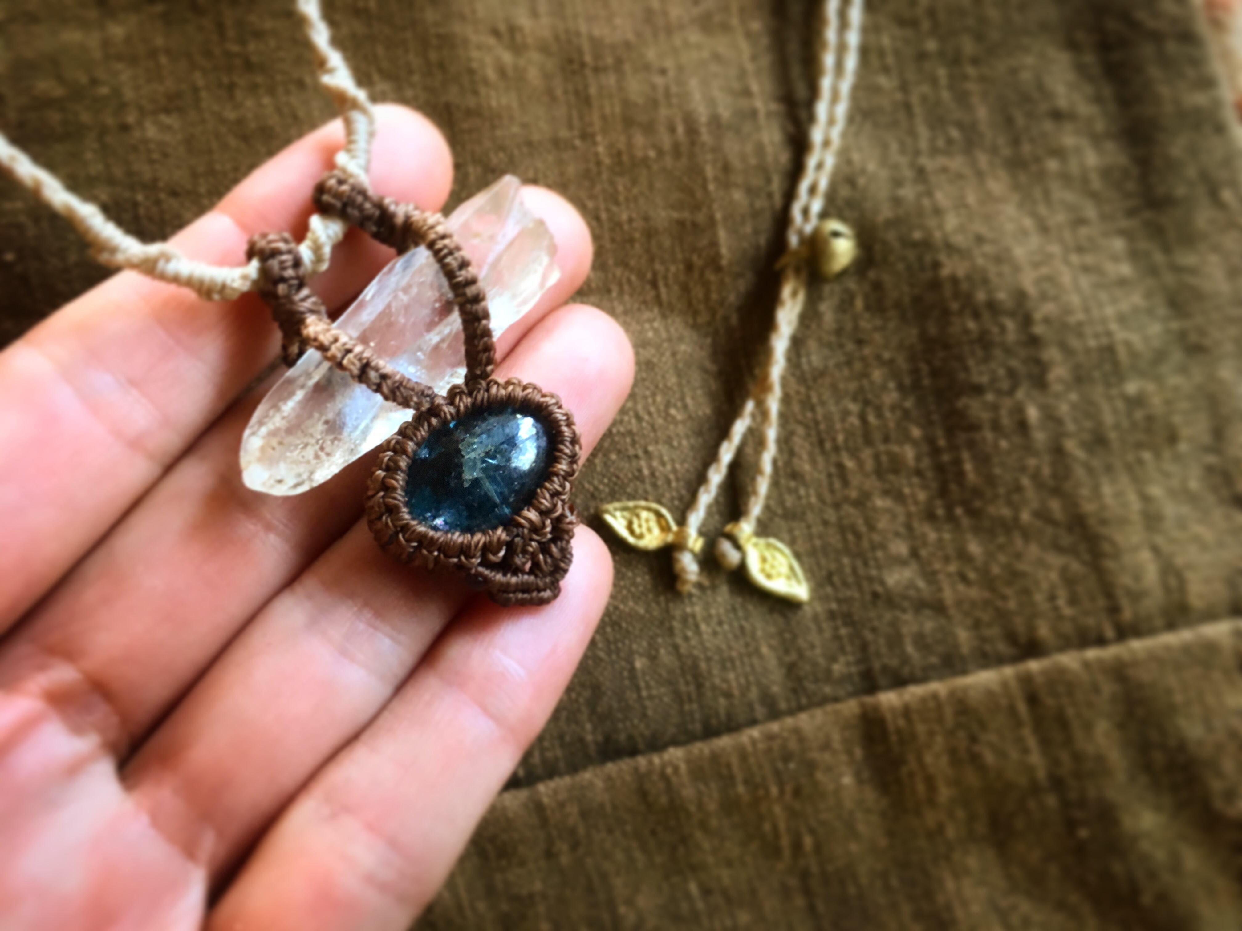 ヒマラヤ産ナチュラルポイントのクリスタルクォーツと、青色の美しいカイヤナイトを組み合わせて丁寧に制作しました。