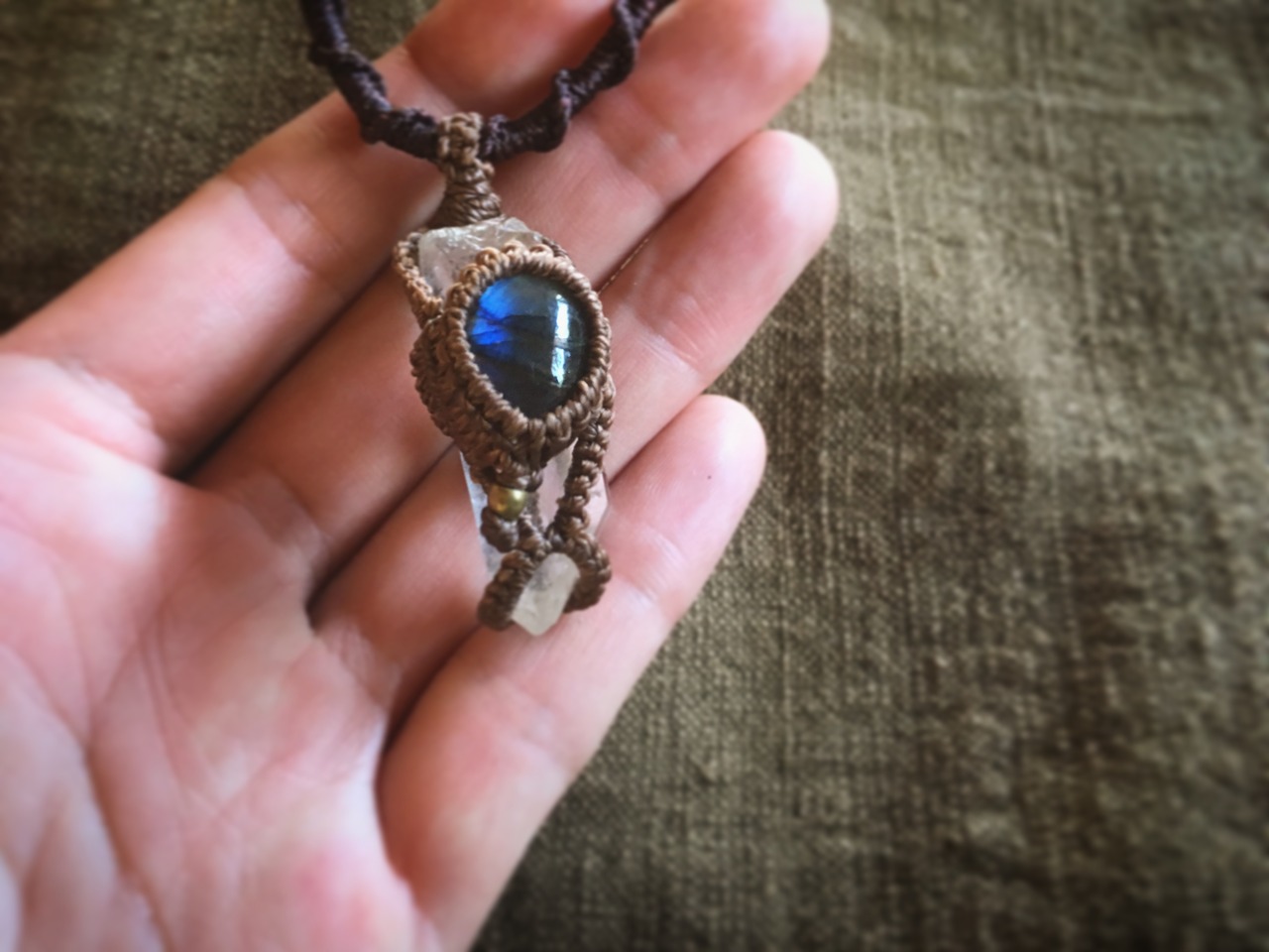 Himalayan Crystal Quartz & Labradorite Macrame Necklace