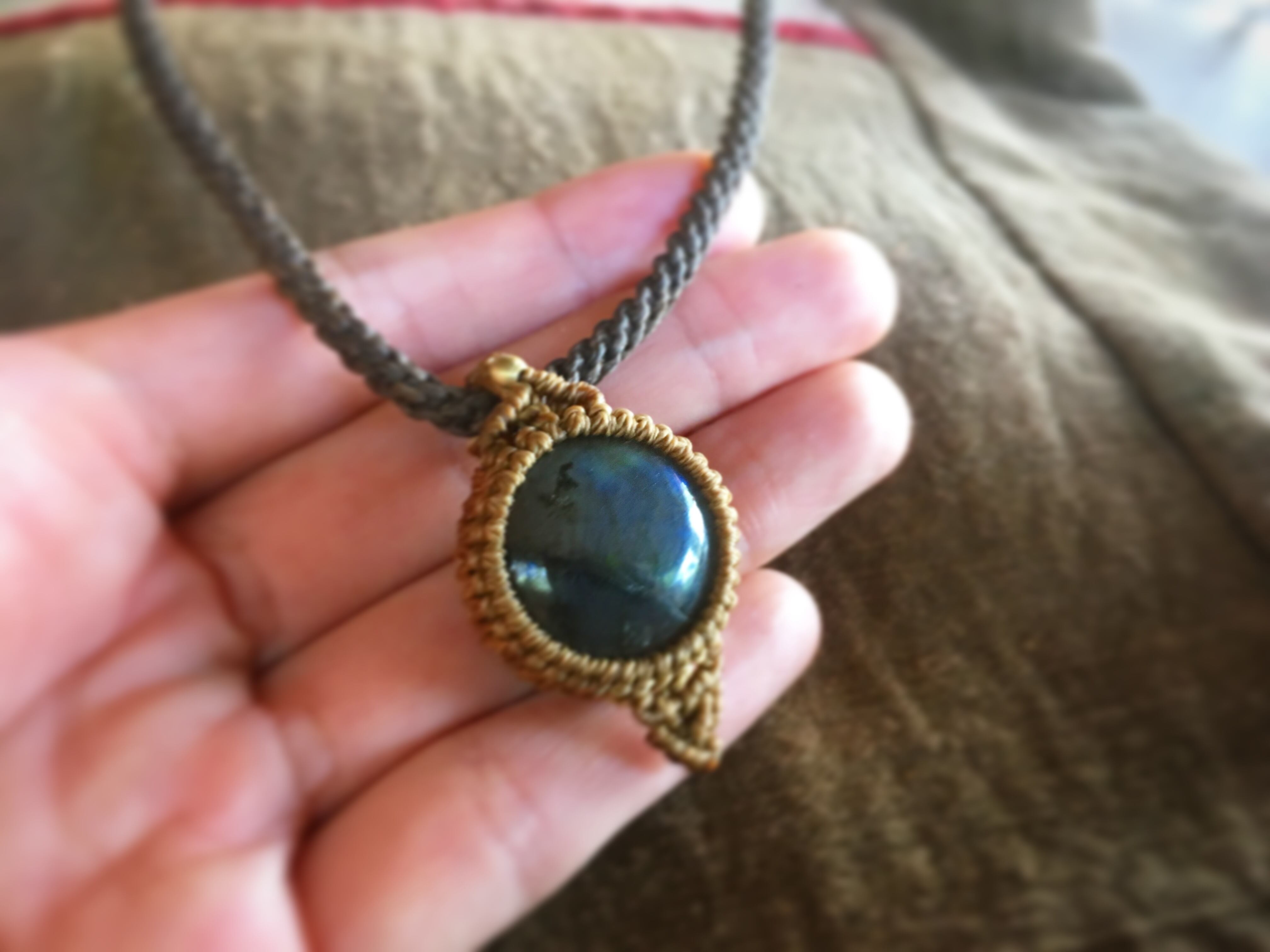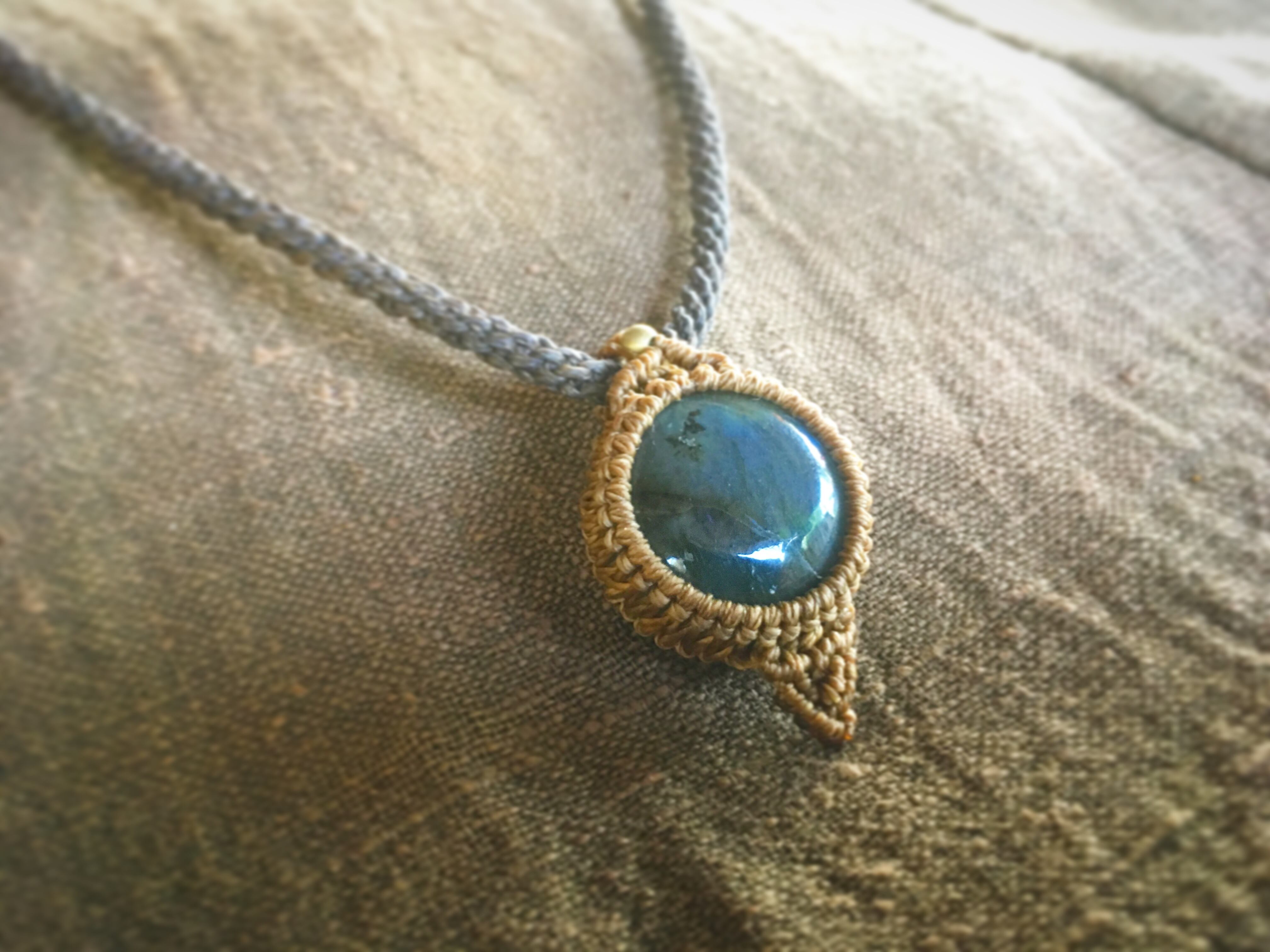 青く深い光が煌めく、ラブラドライトのネックレス。とても美しいピースです。まんまるの形がかわいいカボション。