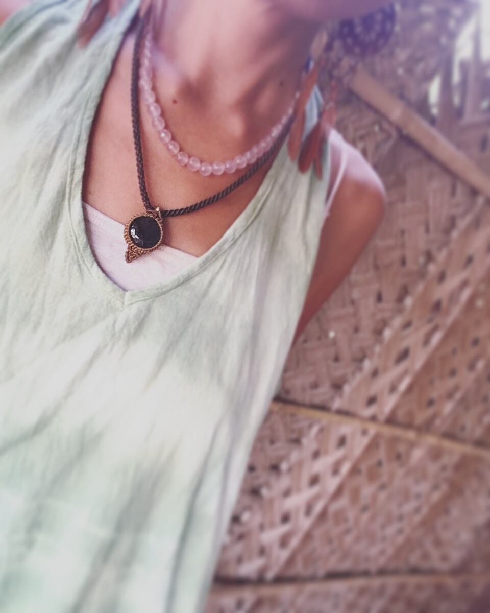 抜群の存在感ながら、シンプルなデザインなので、いろいろなお洋服に合わせて毎日つけていただけるように編みました。
