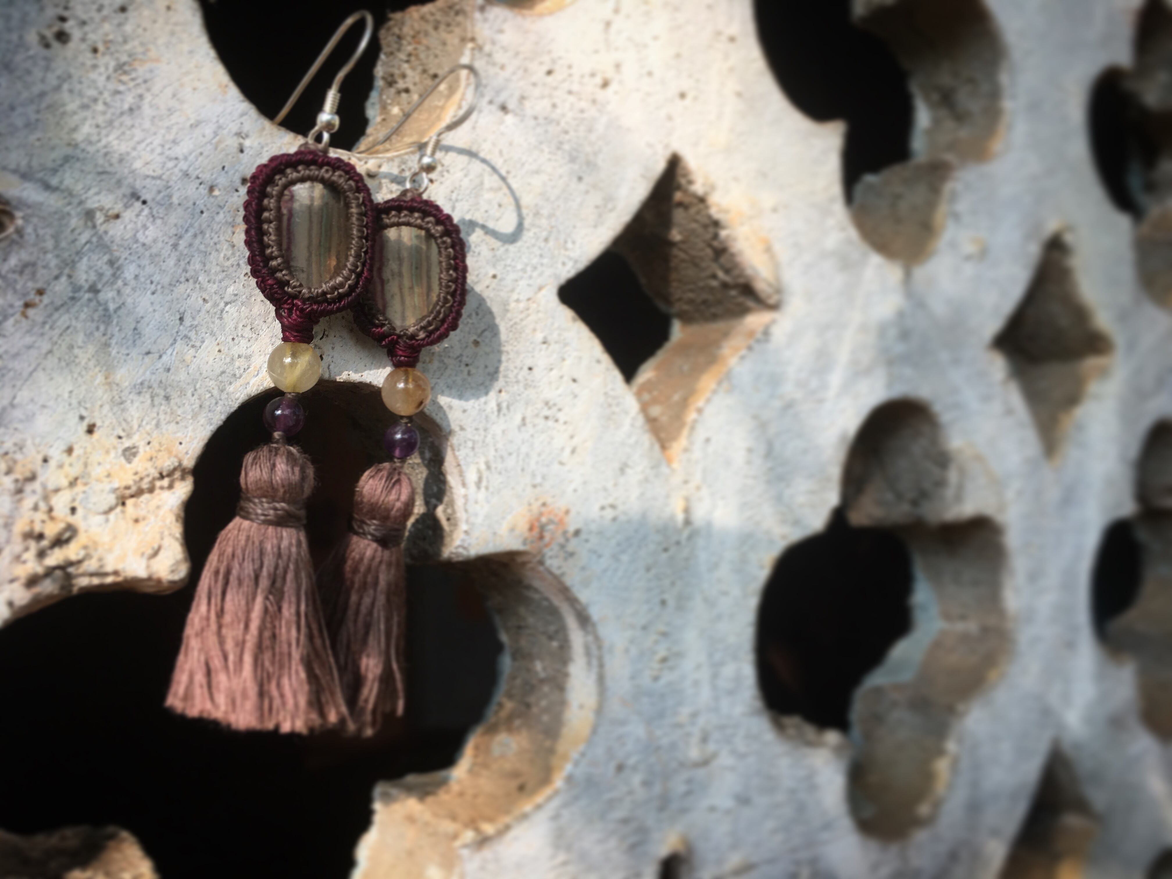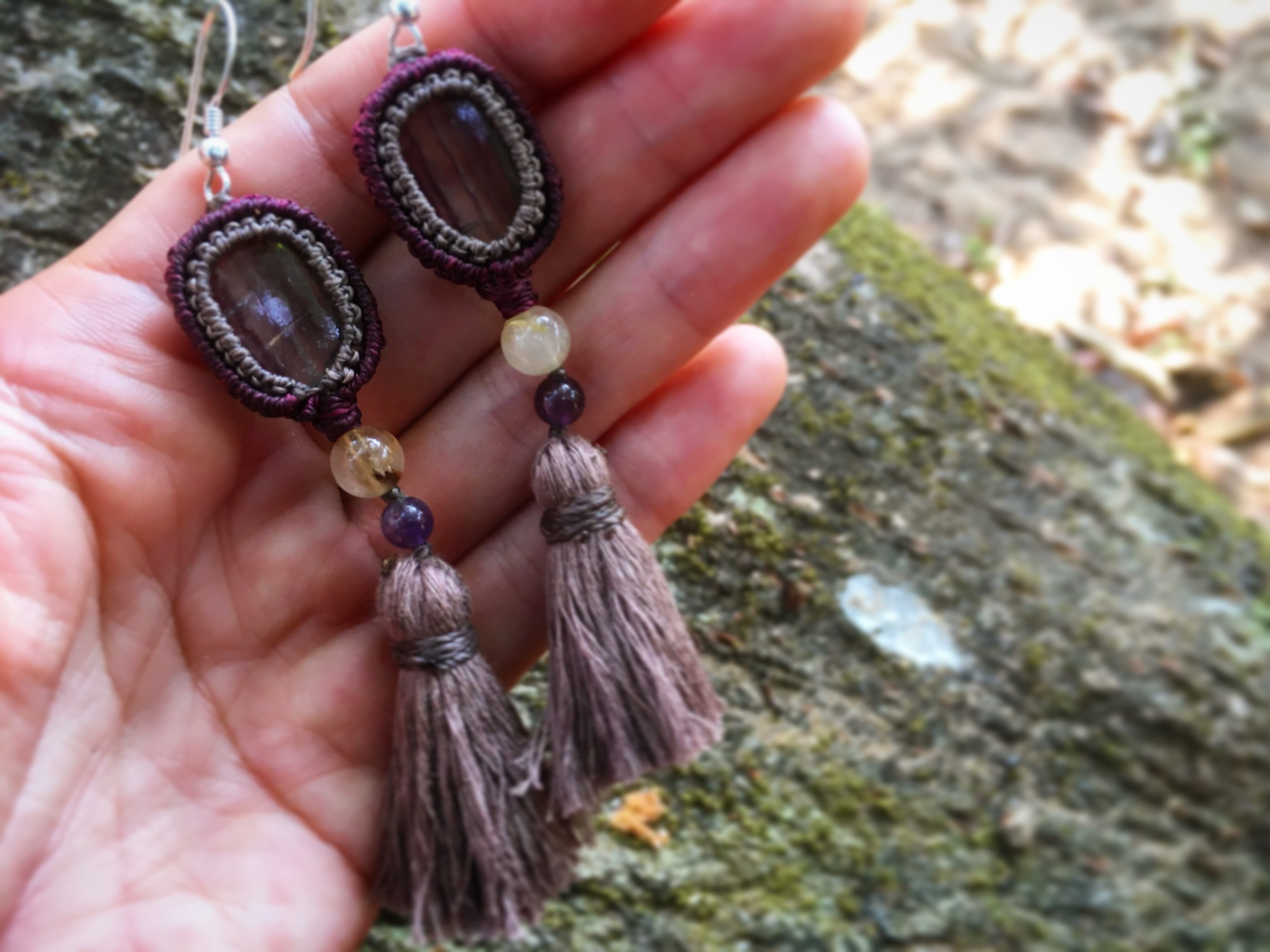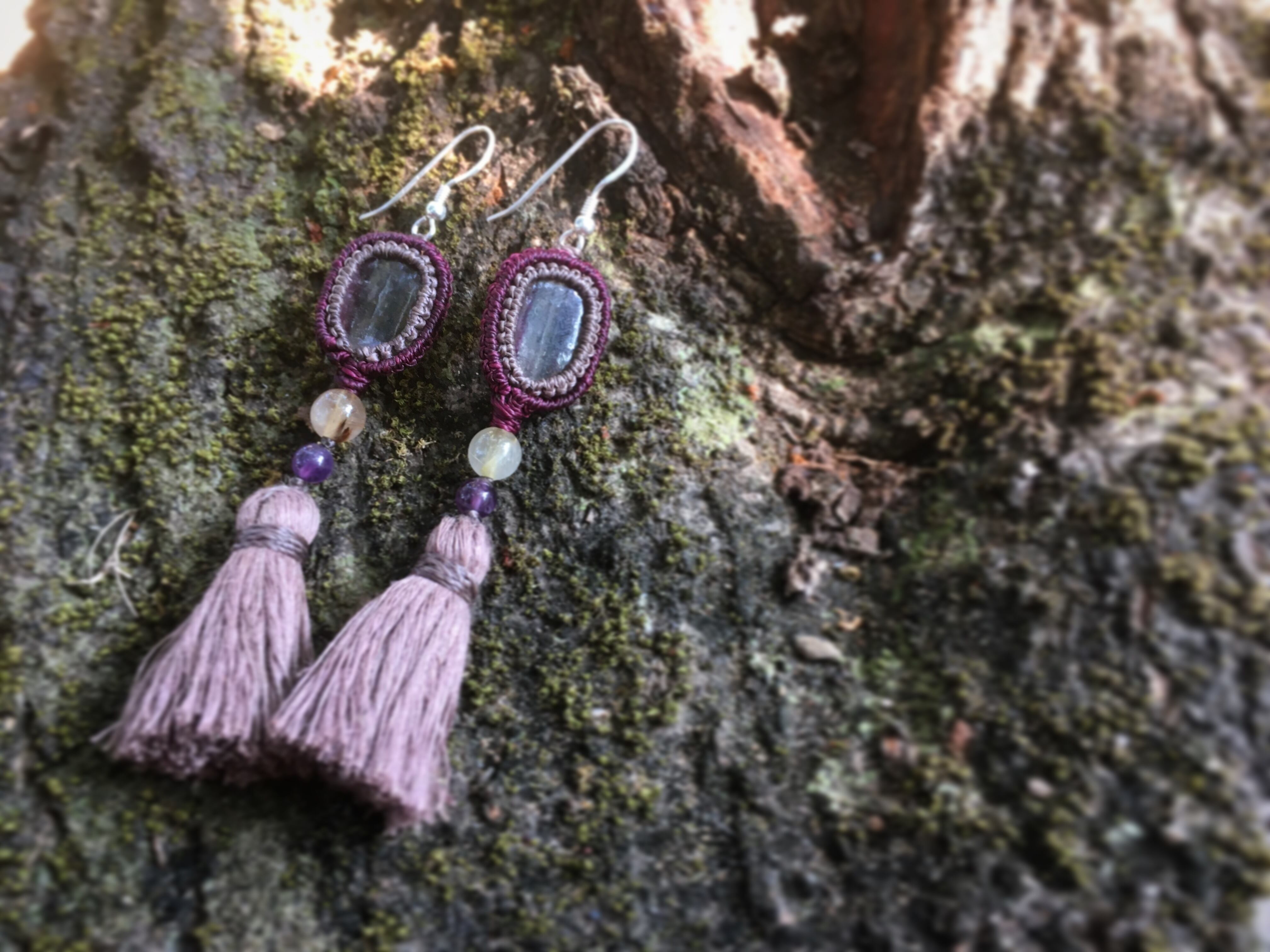 装飾にルチルクォーツとアメティストのビーズを使っています。