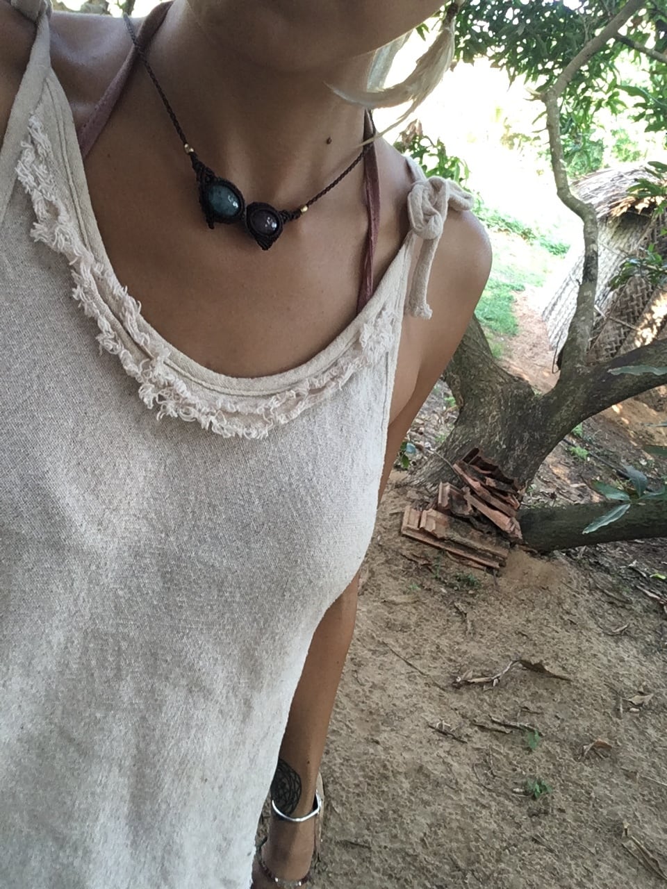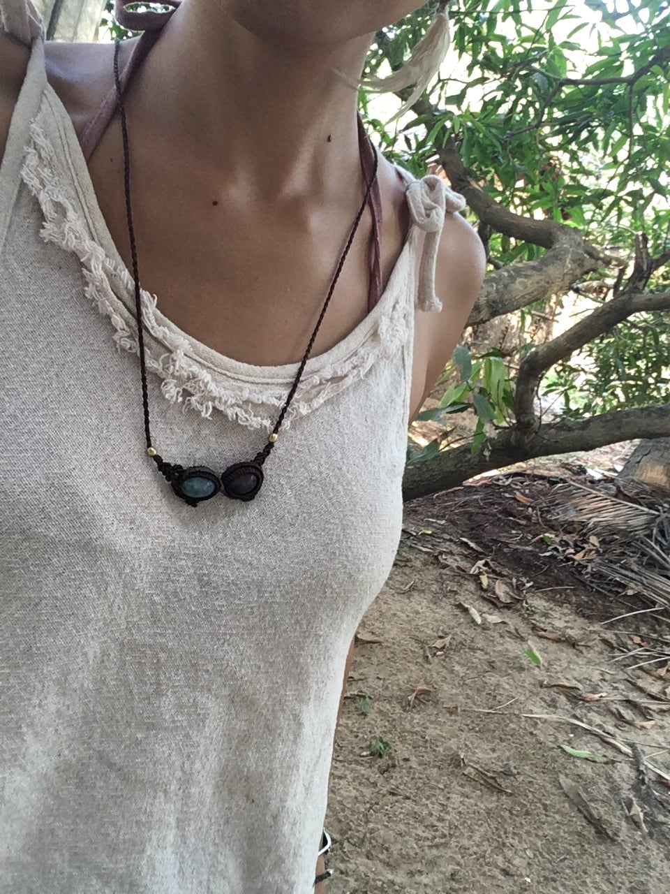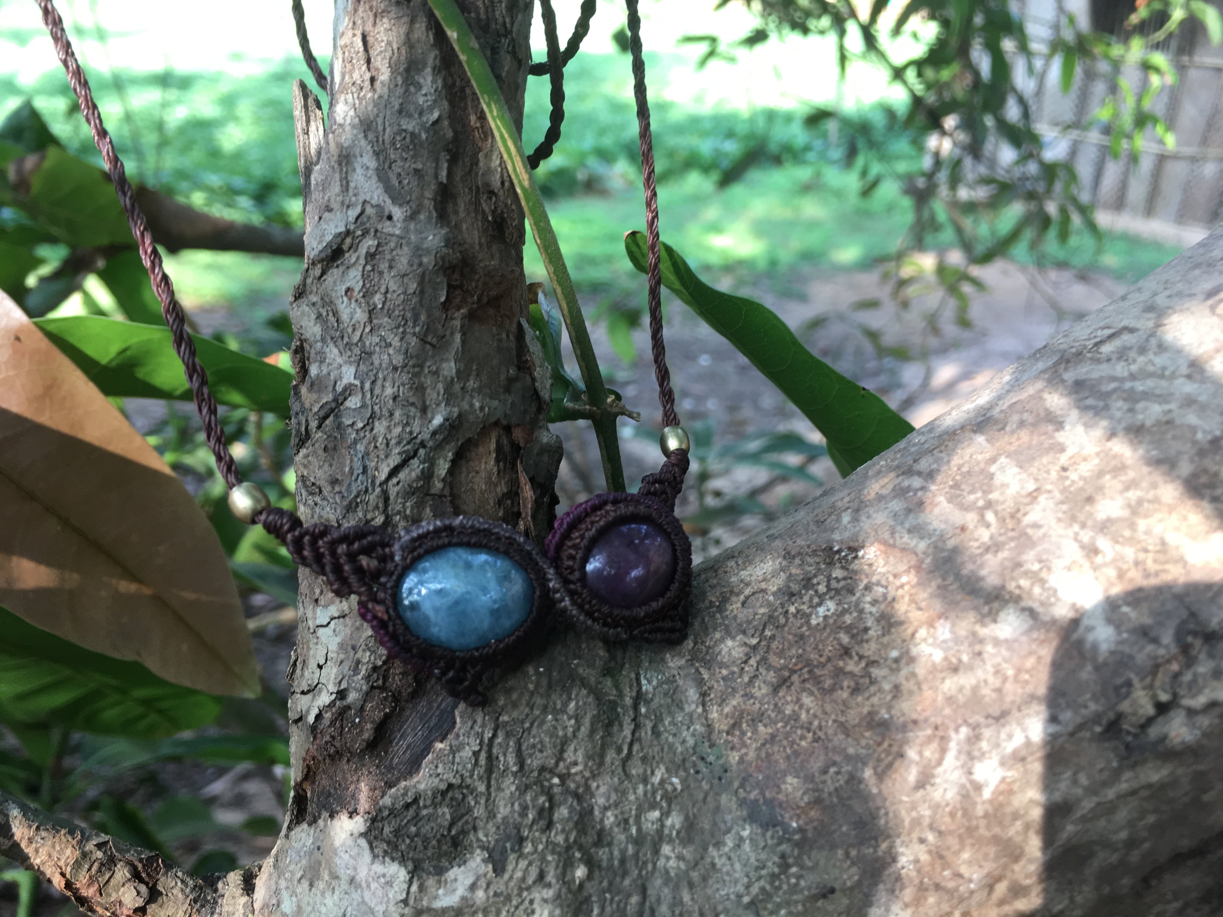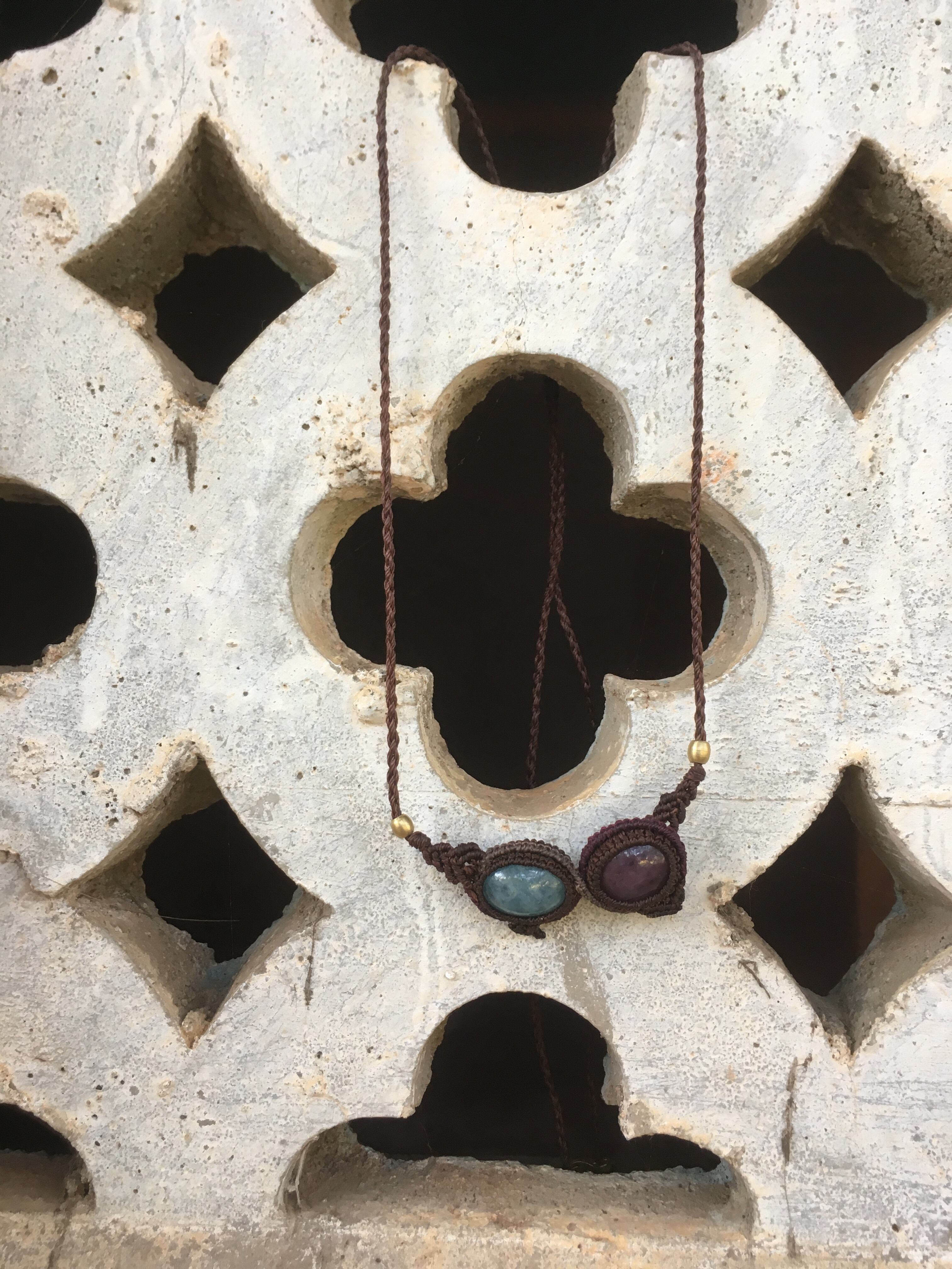 Ruby + Aquamarine Macrame Necklace