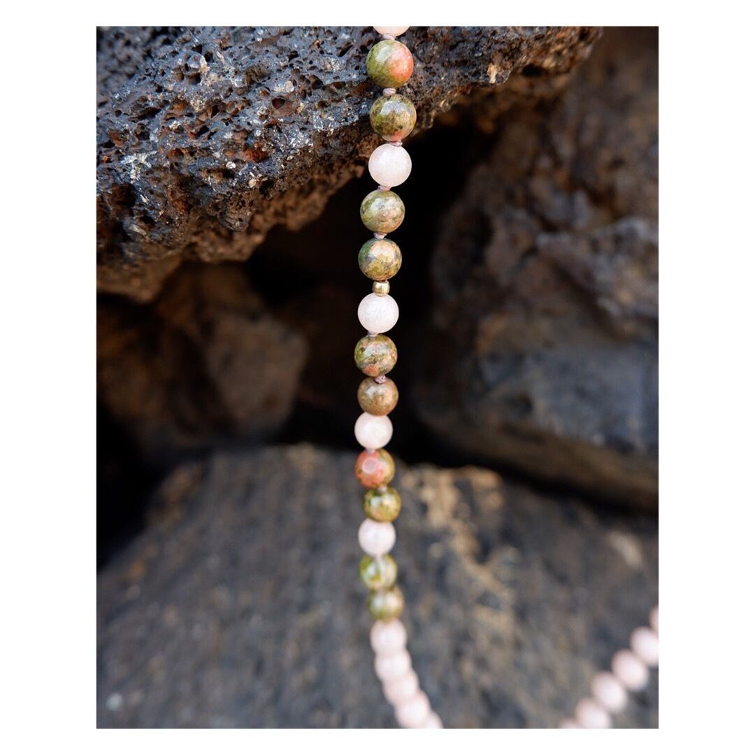 108の半分、54番目と55番目の間には真鍮の葉っぱのビーズを使用し、ジャパが半分のところにきたことを指で感じられるようになっています。