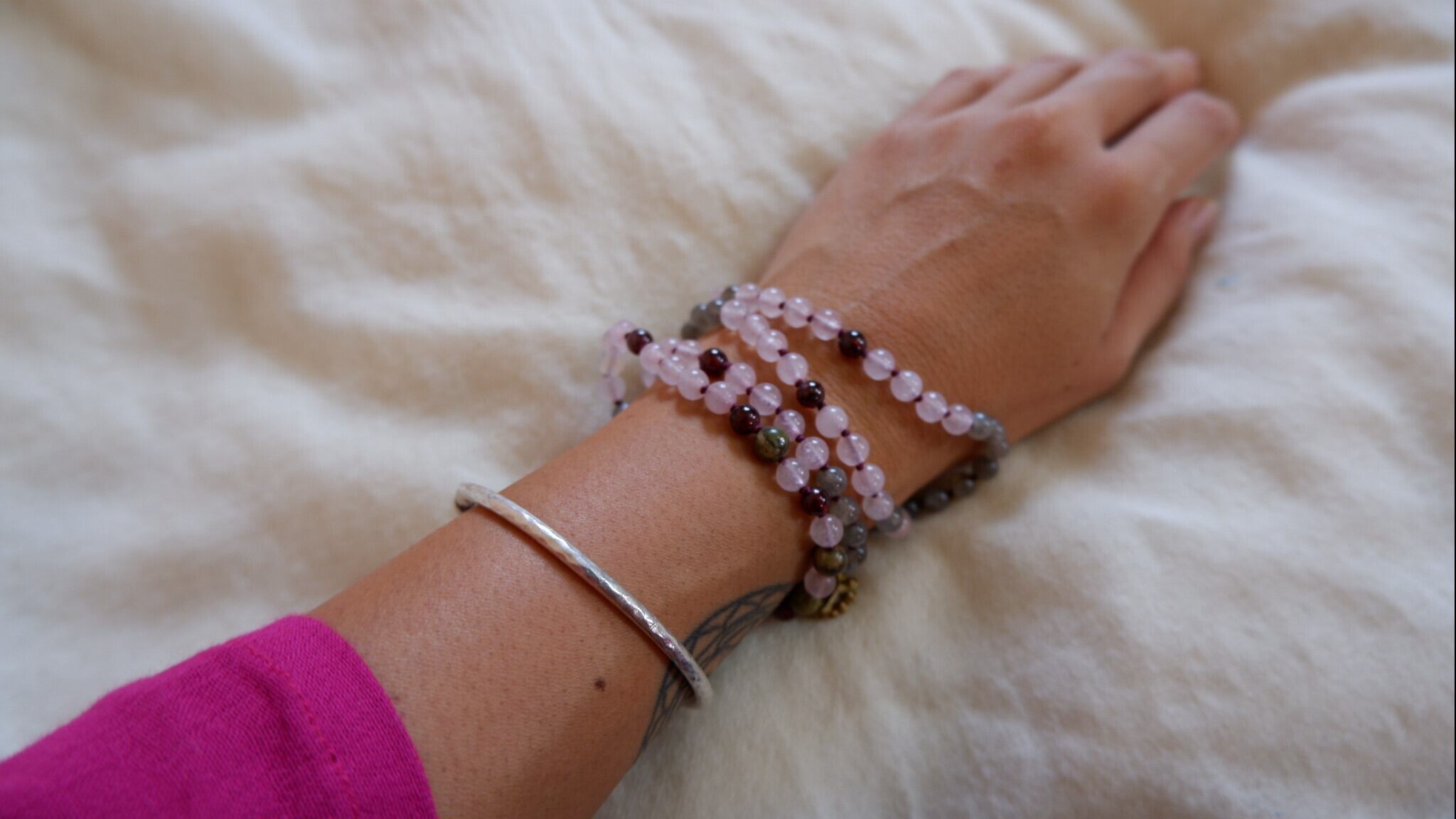 ひとつビーズを通して、ひとつ結び目を作る。マラを繰っていくとき、ビーズとビーズの間、この結び目に瞑想が起こる、と言われています。