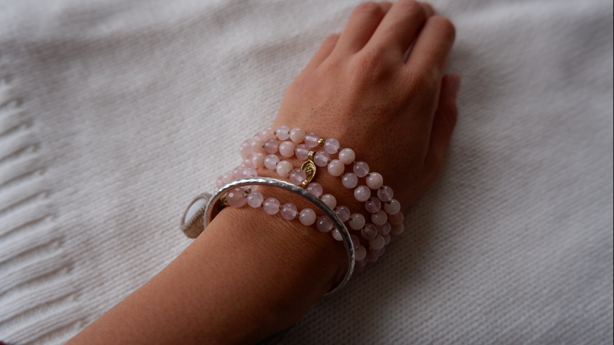 透明感のあるピンクが美しいローズクォーツは、愛の石。