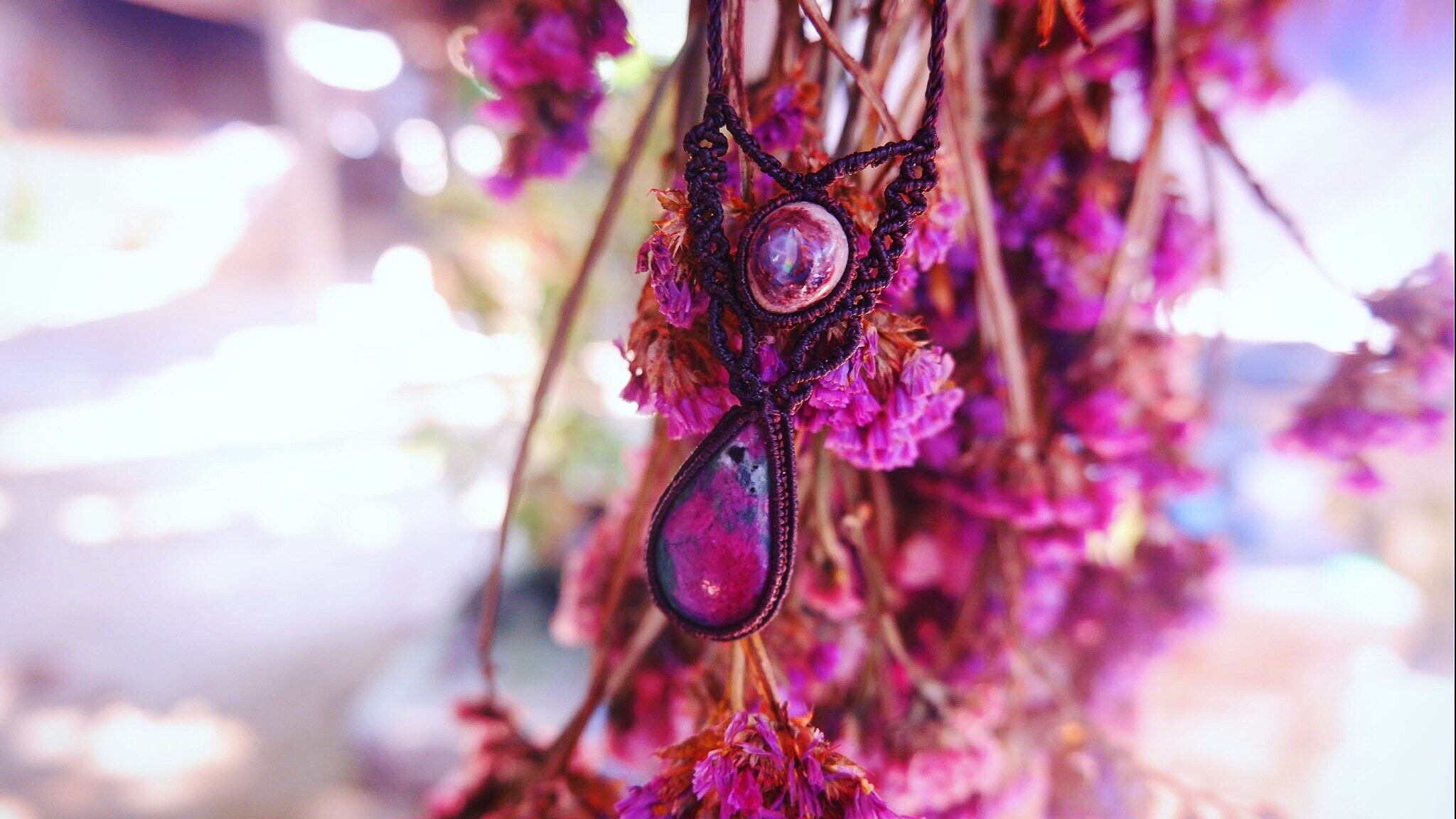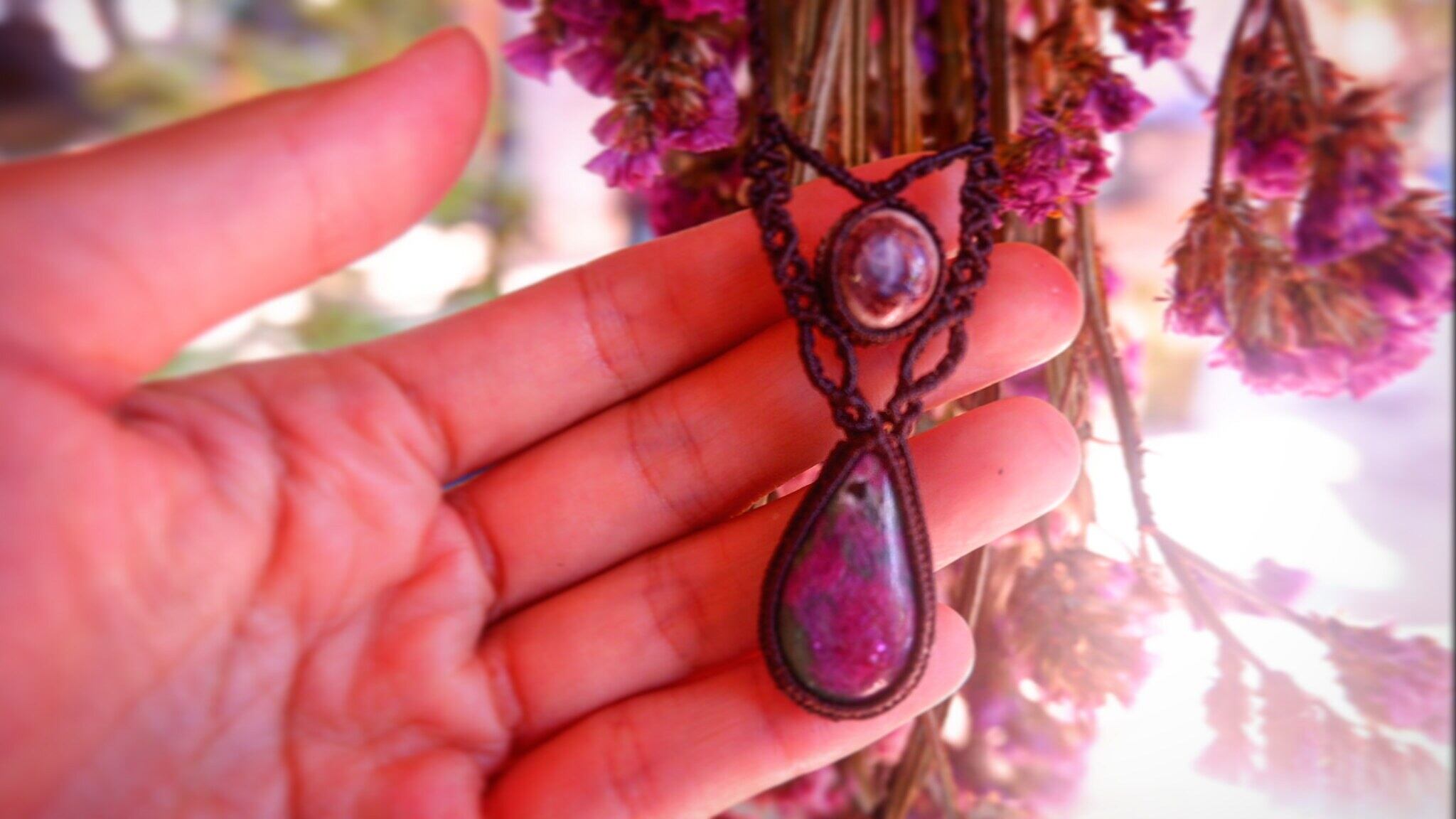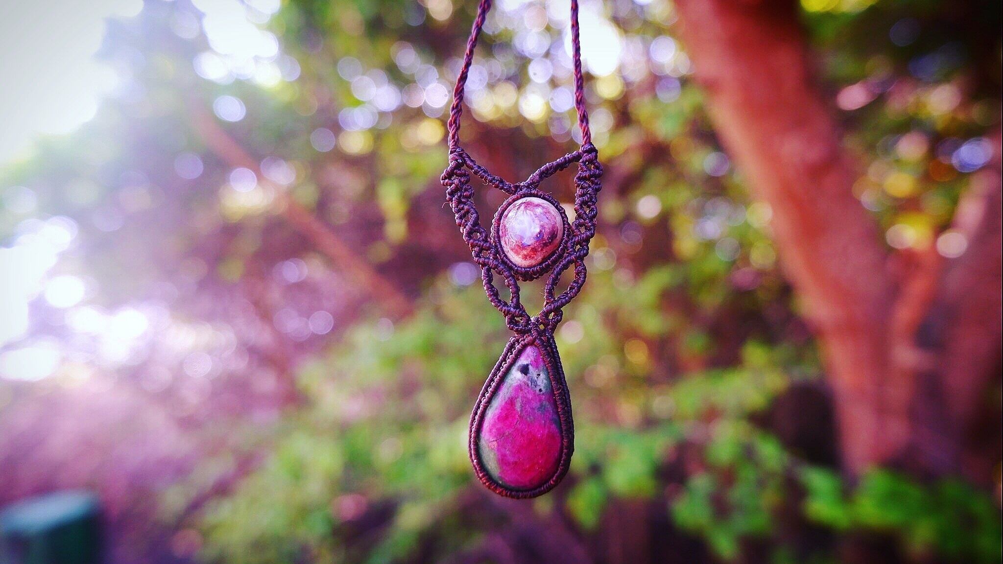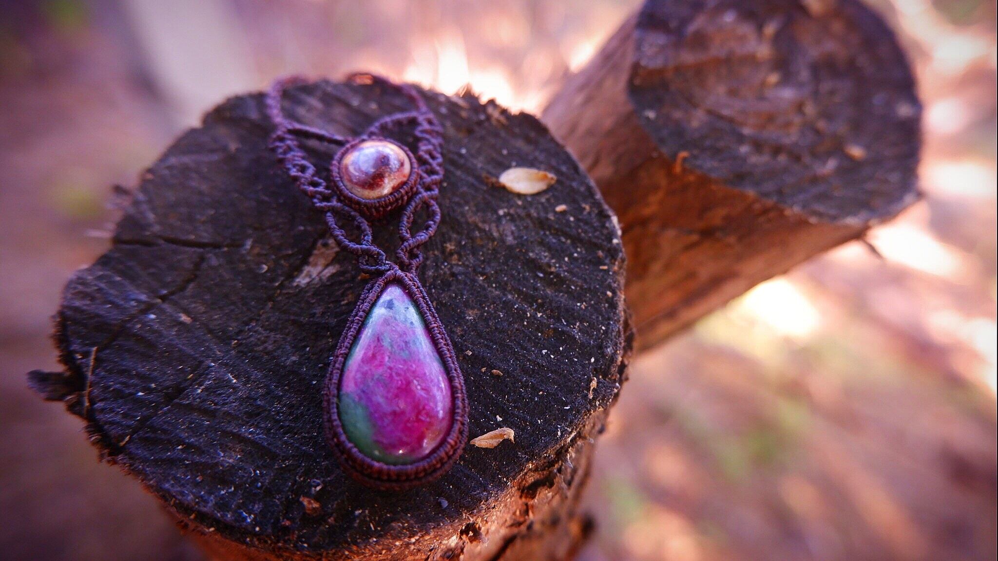 Mexican Opal & Ruby in Zoisite Macrame Necklace