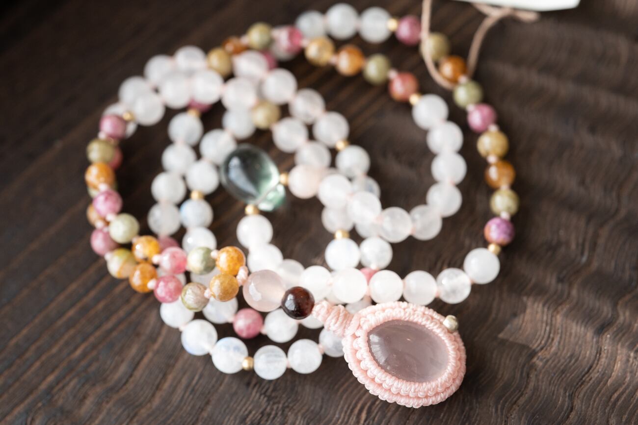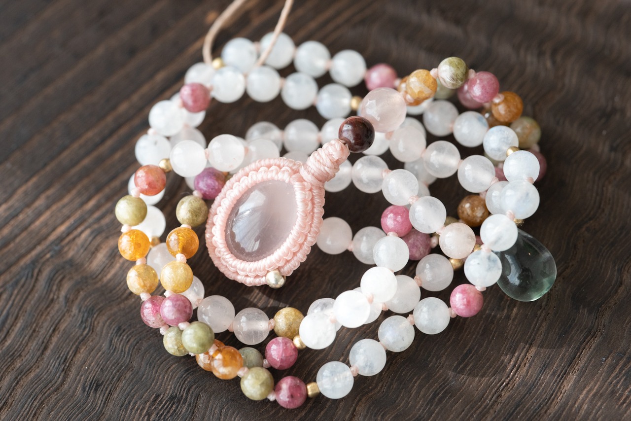 Japamala : Rose Quartz & Tourmaline & Moonstone
