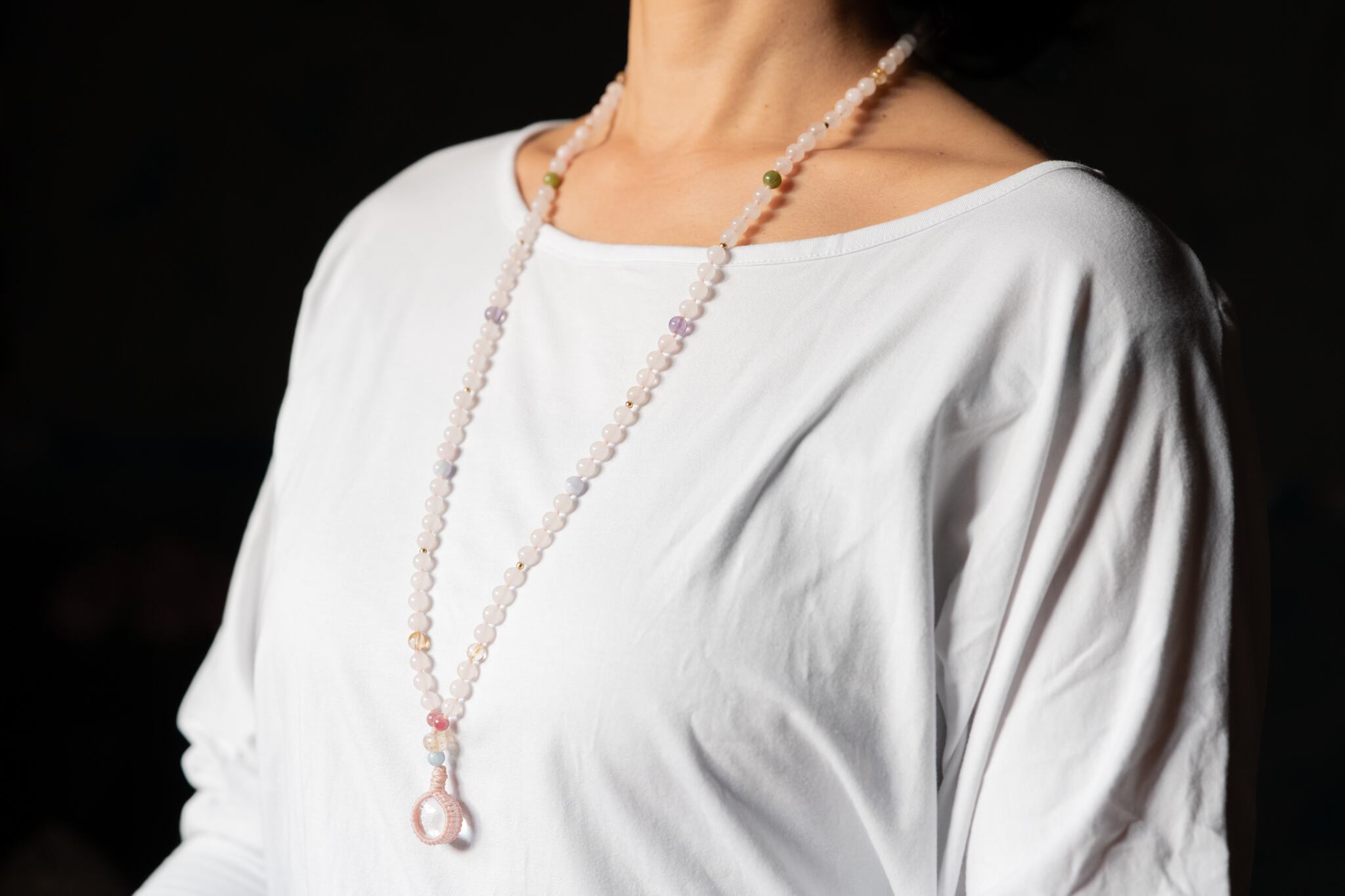 ひとつビーズを通して、ひとつ結び目を作る。マラを繰っていくとき、ビーズとビーズの間、この結び目に瞑想が起こる、と言われています。