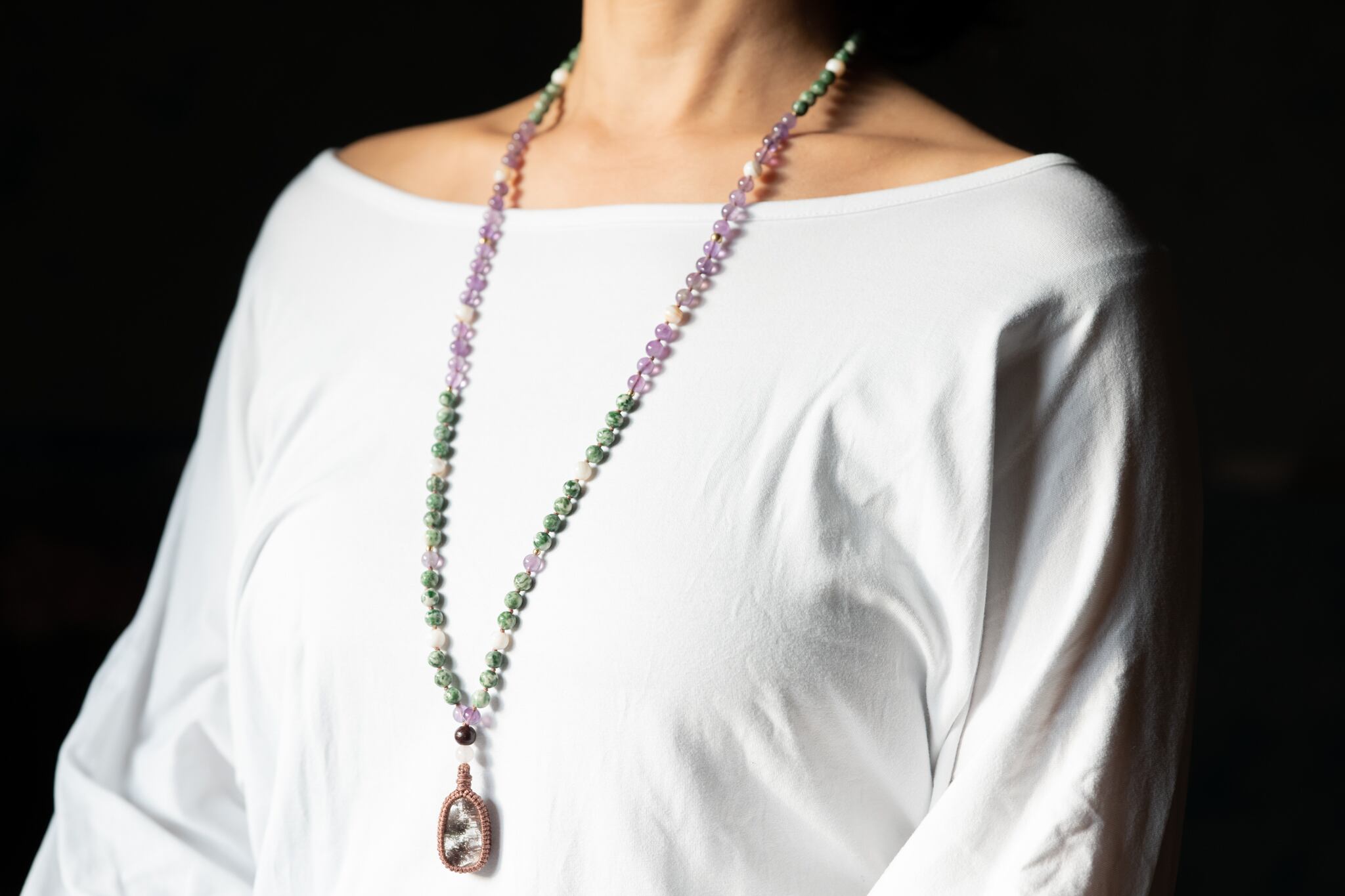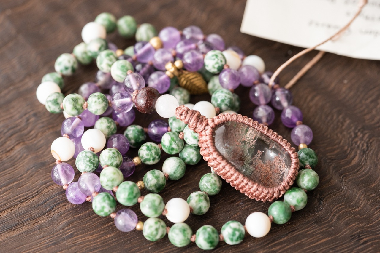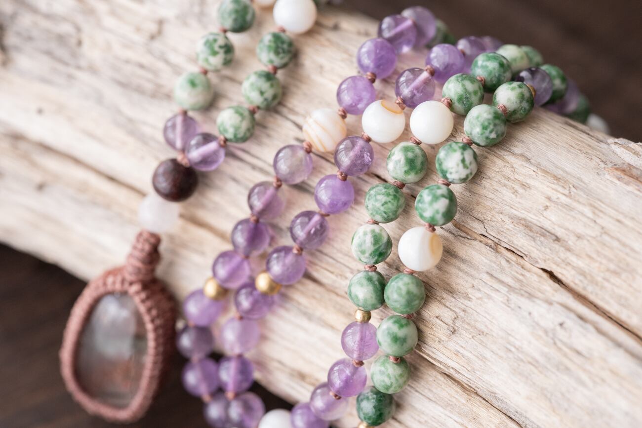 Japamala : Garden Quartz & Amethyst & Moss Agate
