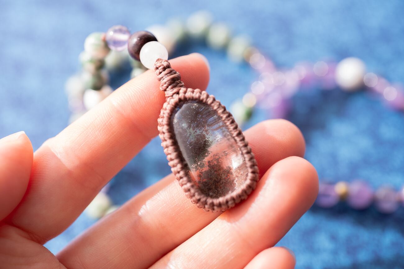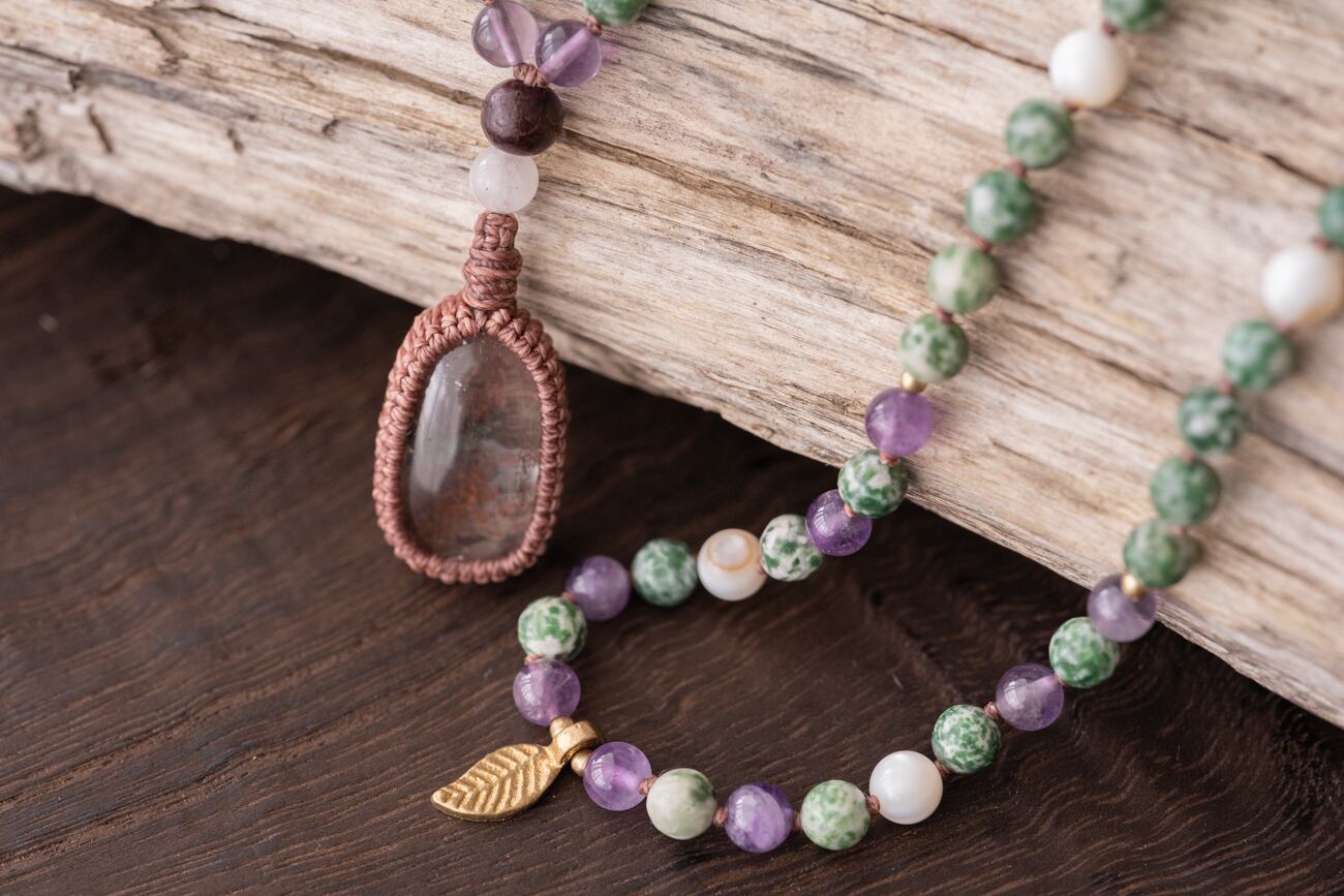 森の精たちを宿しているかのようなガーデンクォーツをマラのトップに配置しました。