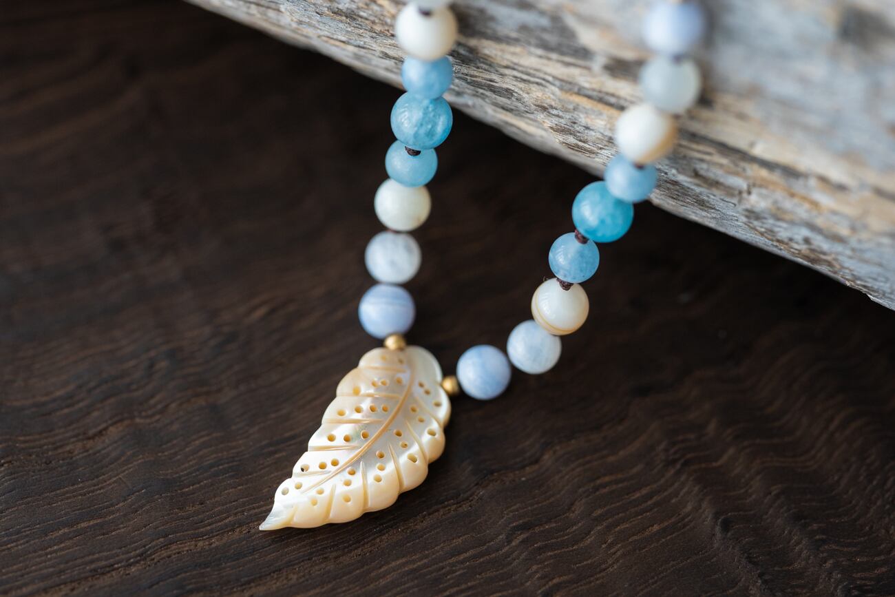月のシンボル、ムーンストーン、それからマザーオブパールをポイントに使って仕上げました。