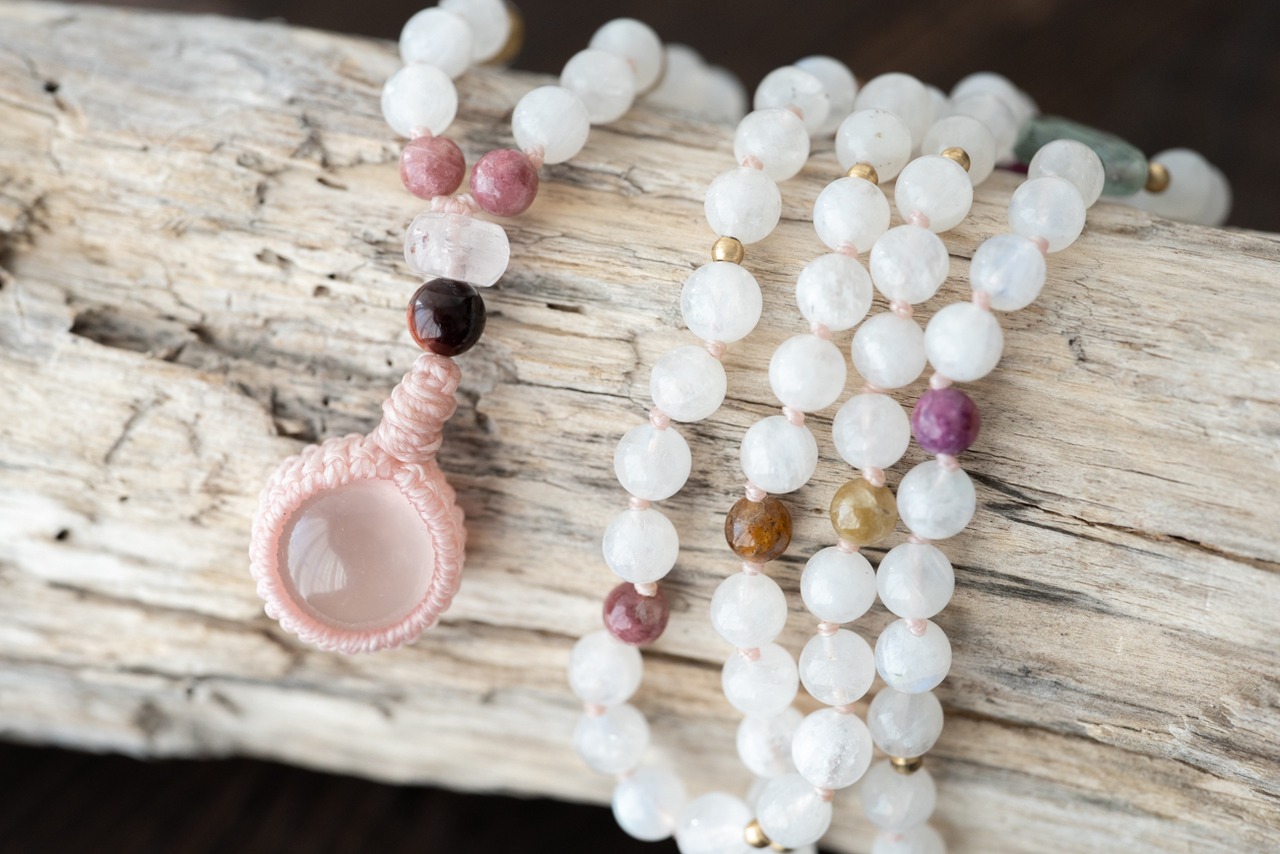 Japamala : Rose Quartz & Moonstone & Tourmaline