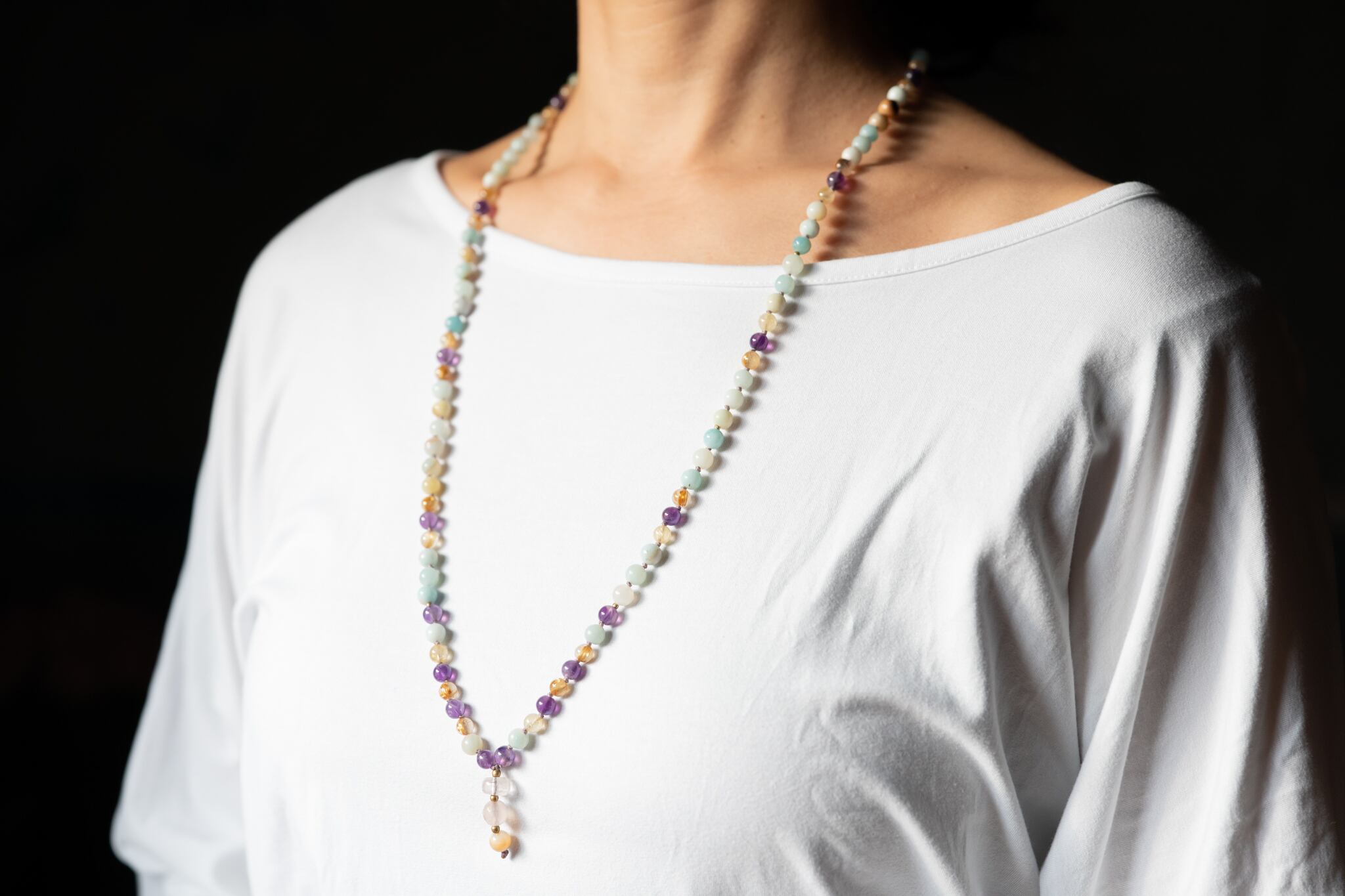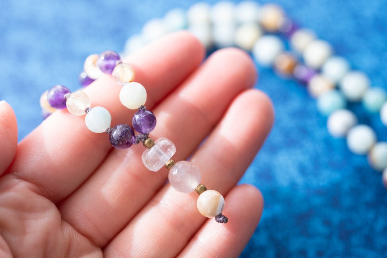 高貴な愛の石アメジストを繋いだ大人のかわいさがつまったマラです。