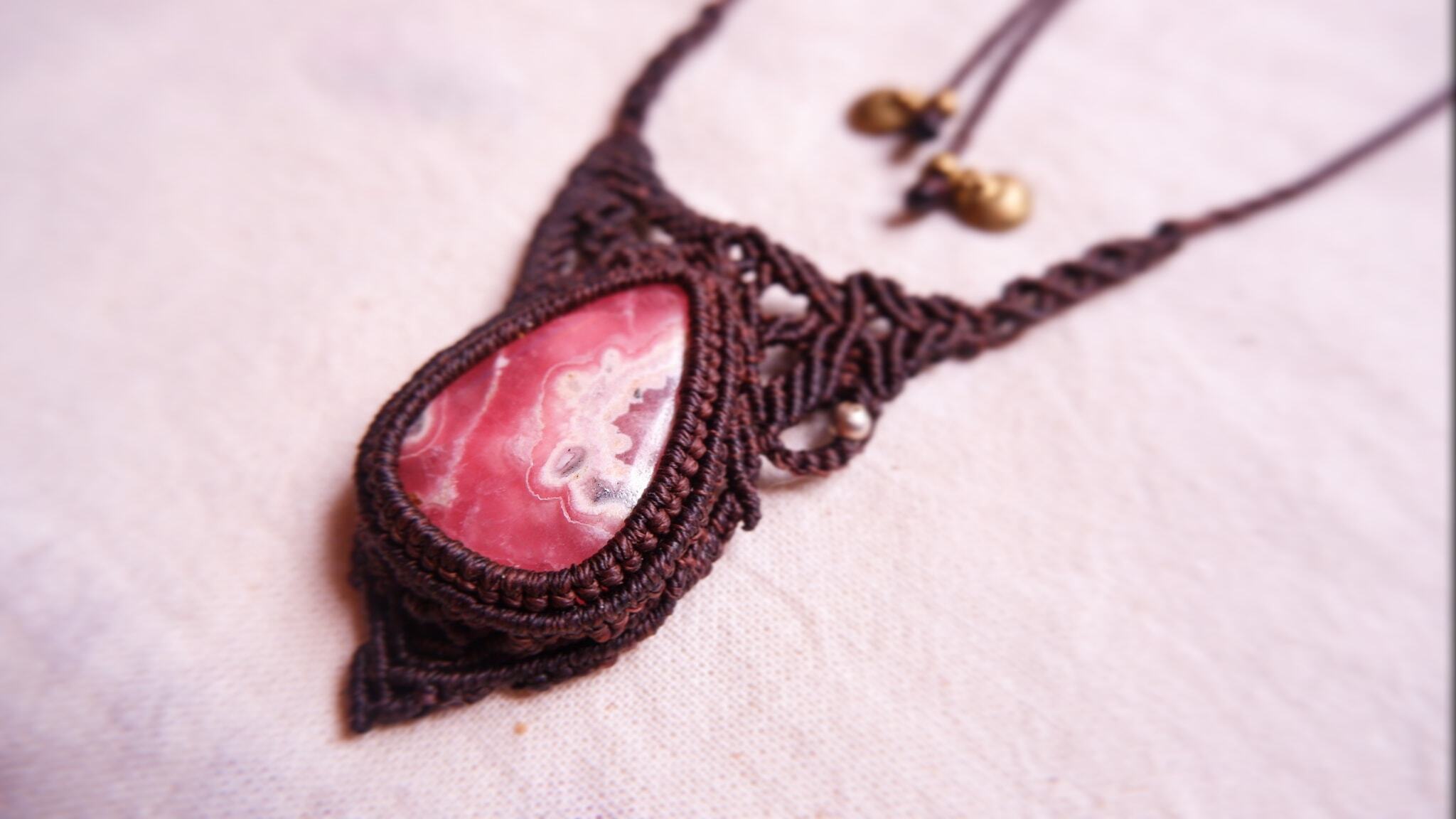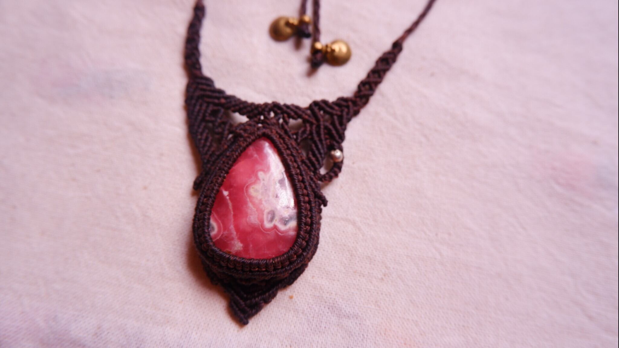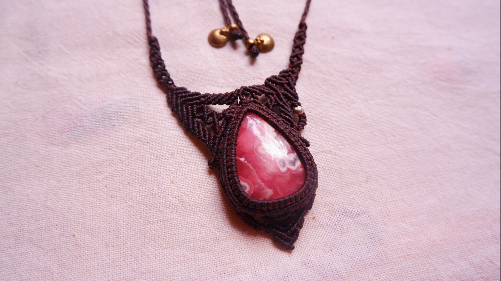 艶やかな綺麗なピンク色の発色の美しいローズクォーツをマクラメ編みで、ネックレスに仕立てました。