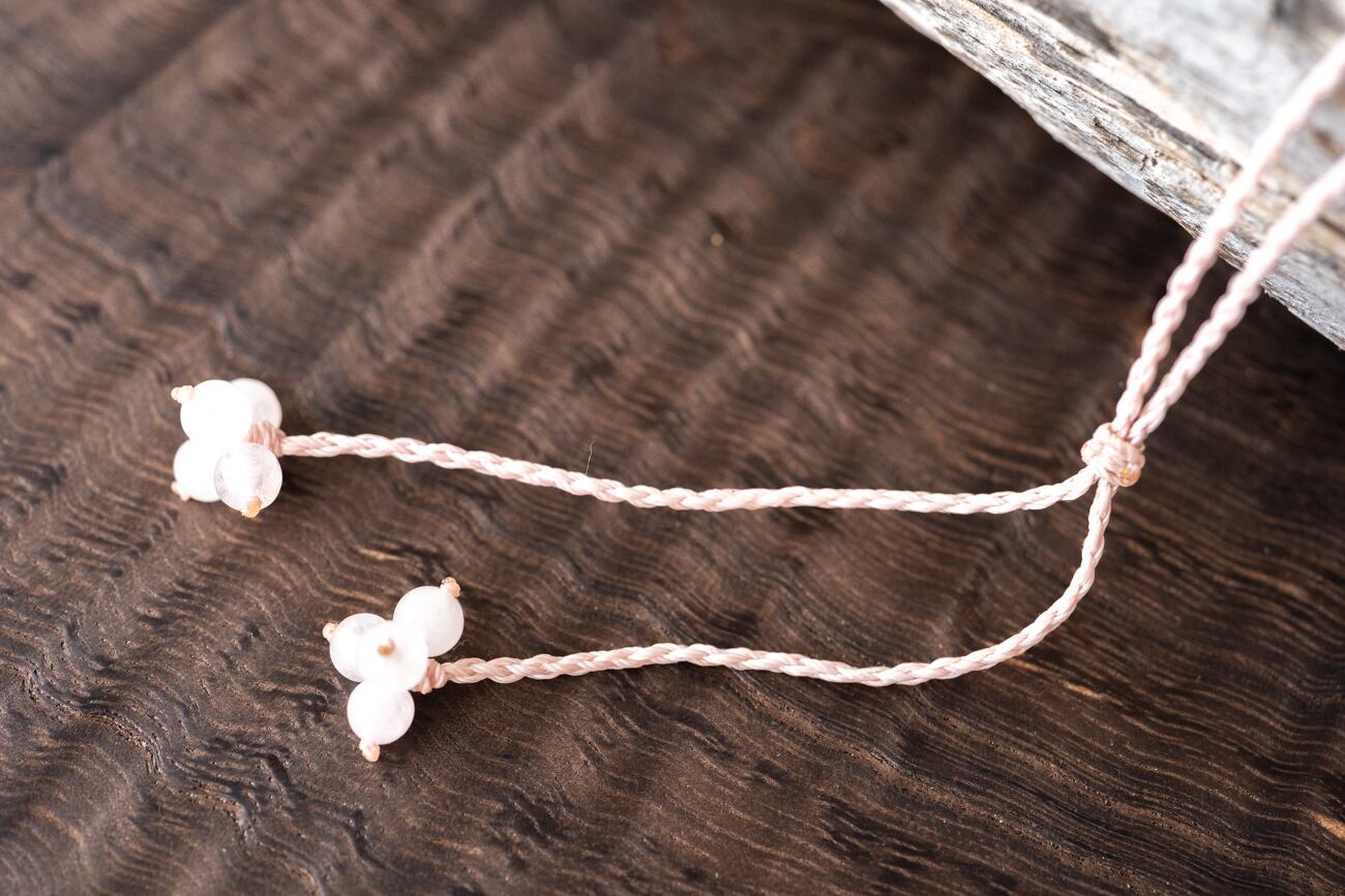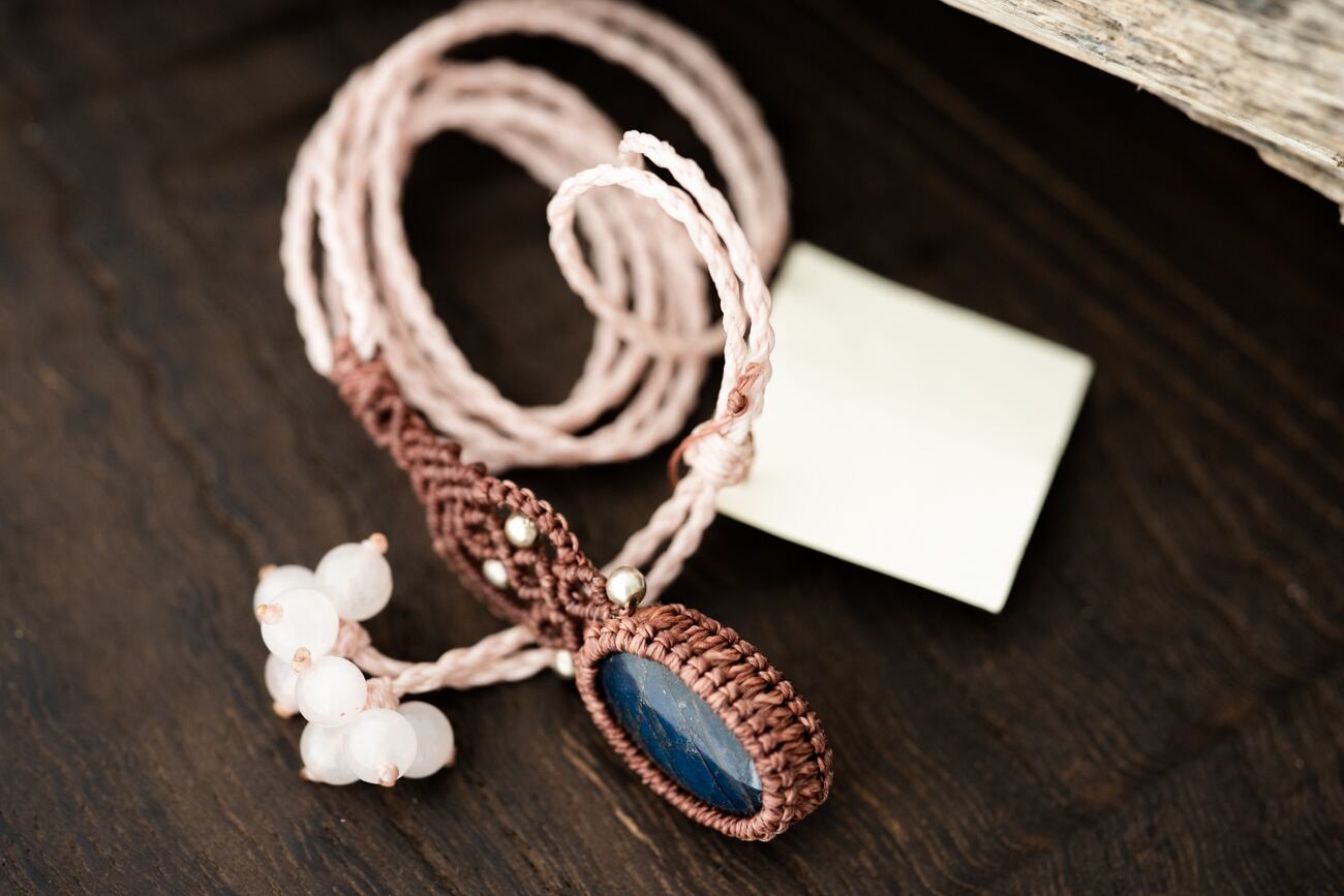 抜群の存在感ながら、シンプルなデザインなので、いろいろなお洋服に合わせて毎日つけていただけるように編みました。