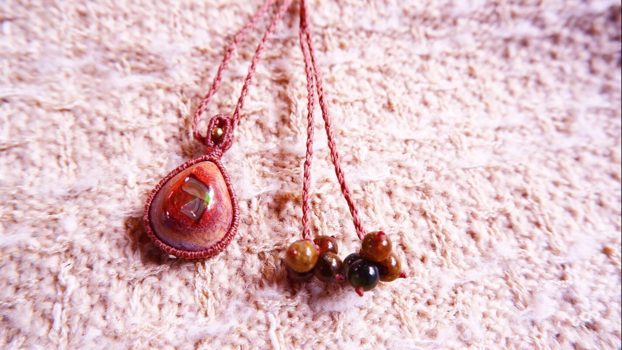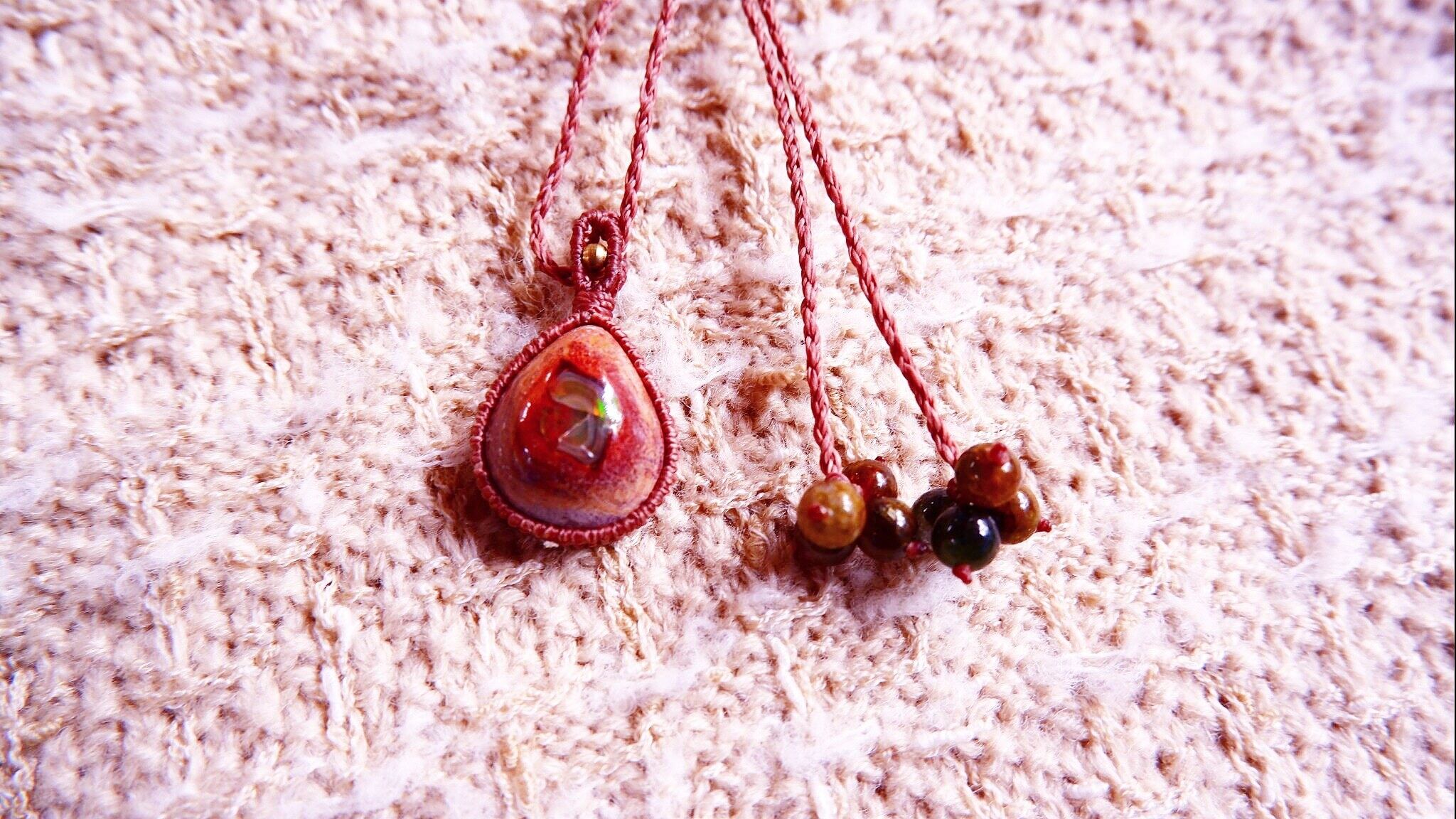Mexican Opal Macrame Necklace