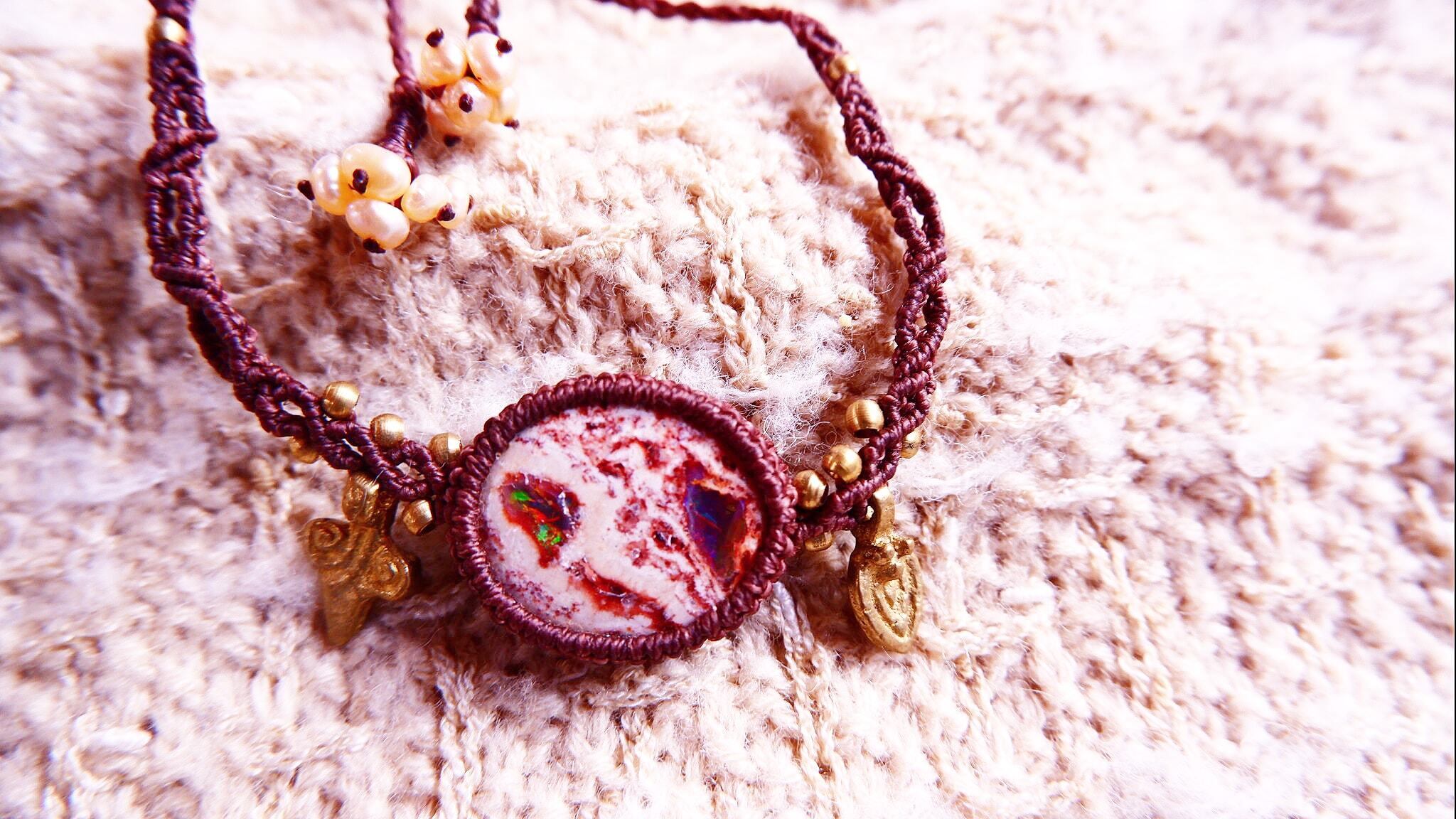 オパールの魅力を存分に引き出すために、0.25mmと0.5mmの繊細な極細の糸を組み合わせて丁寧に編んでいます。