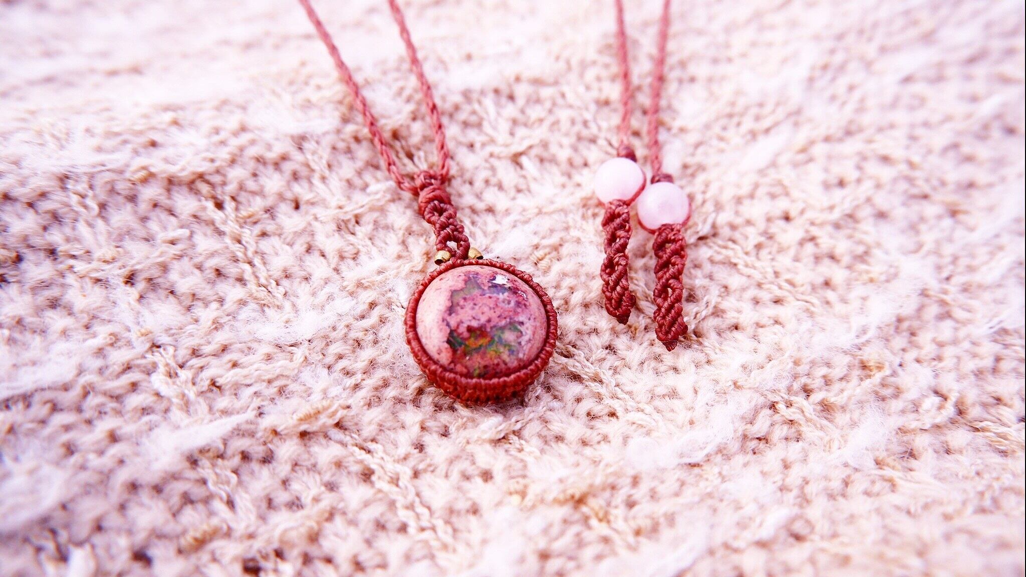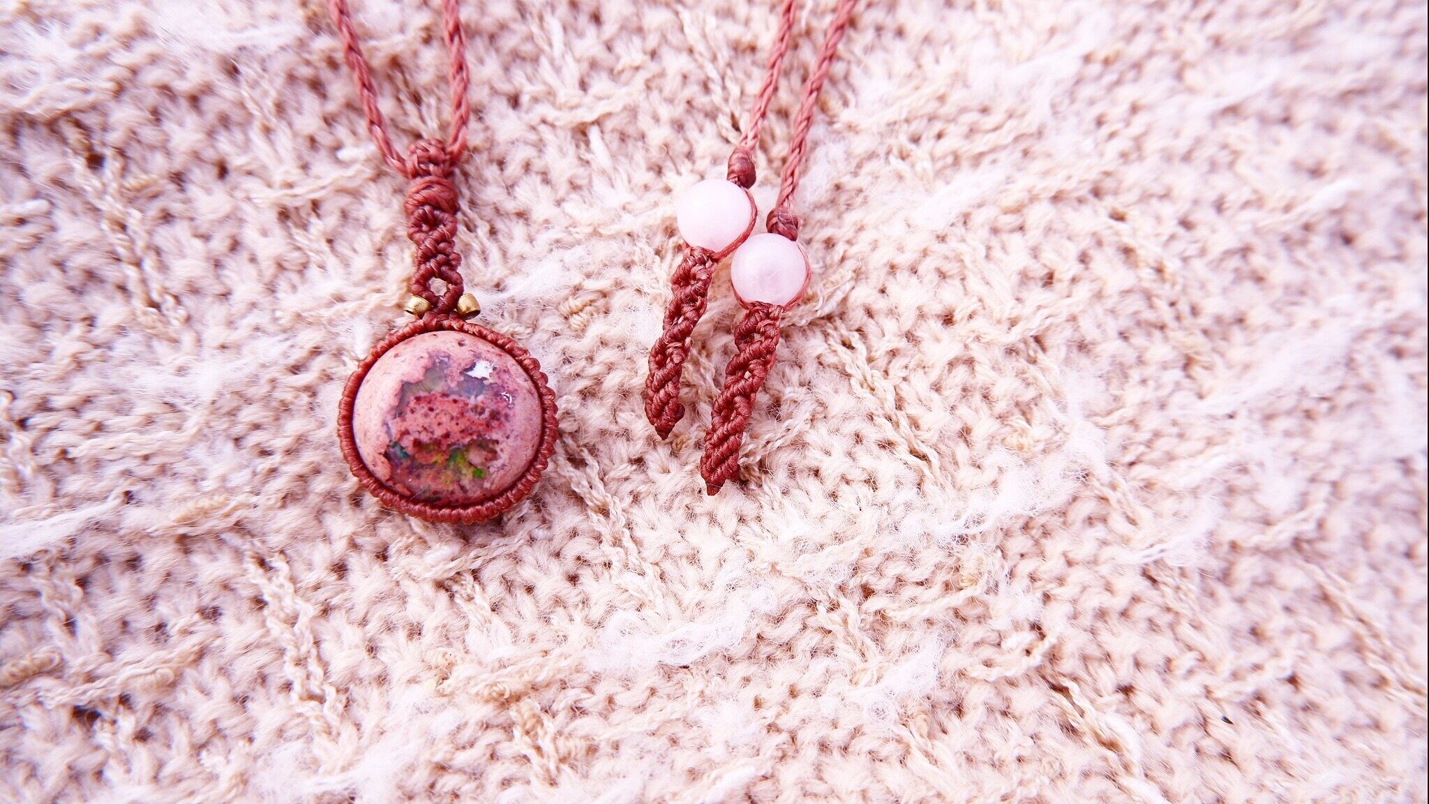 エンド部分にはローズクォーツビーズを組み合わせました。
