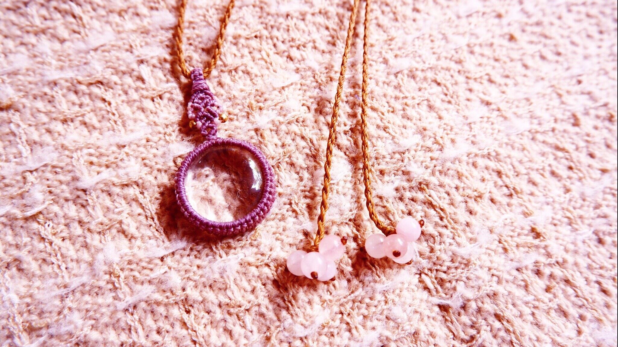 エンド部分にはローズクォーツビーズを組み合わせました。