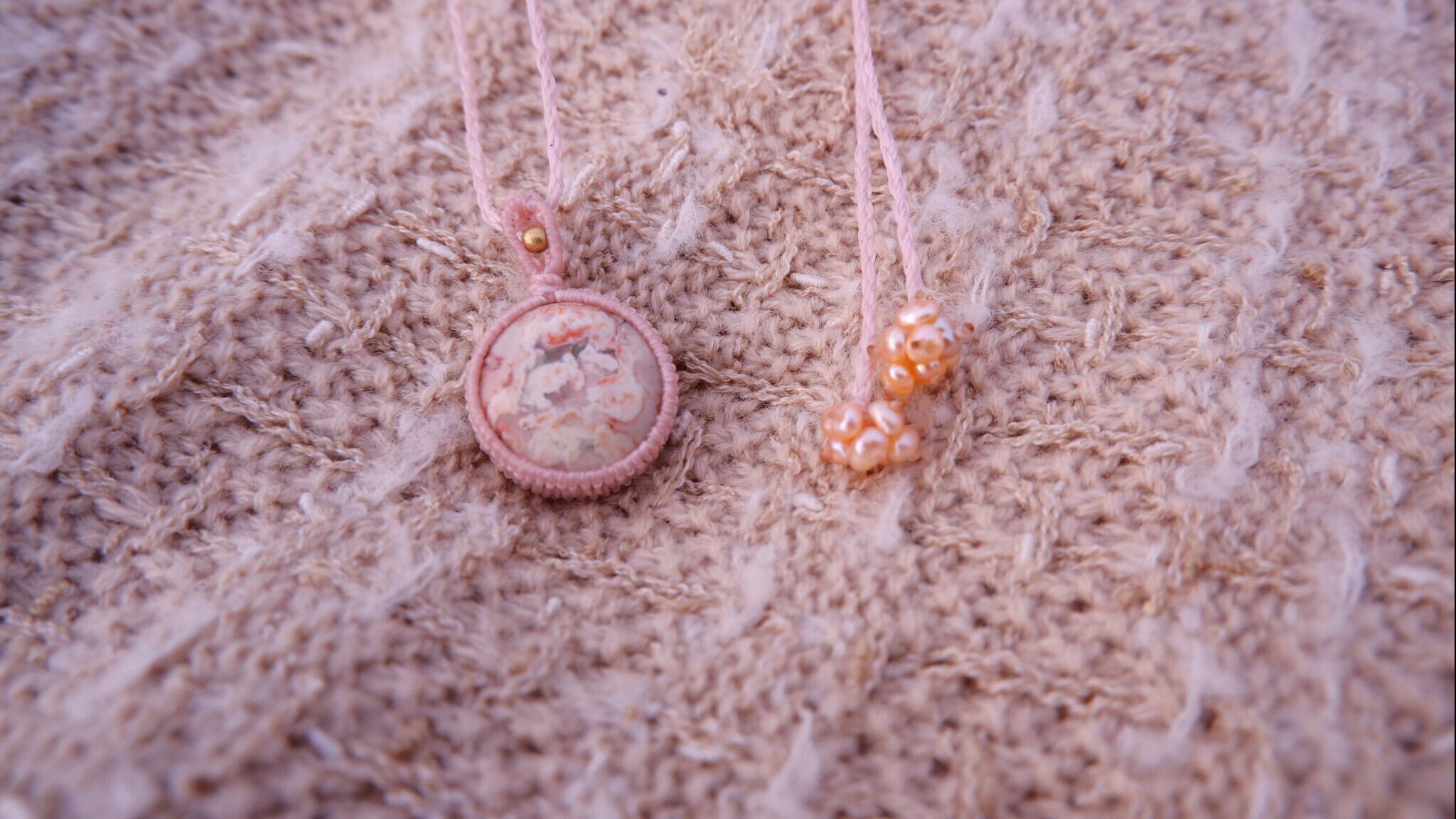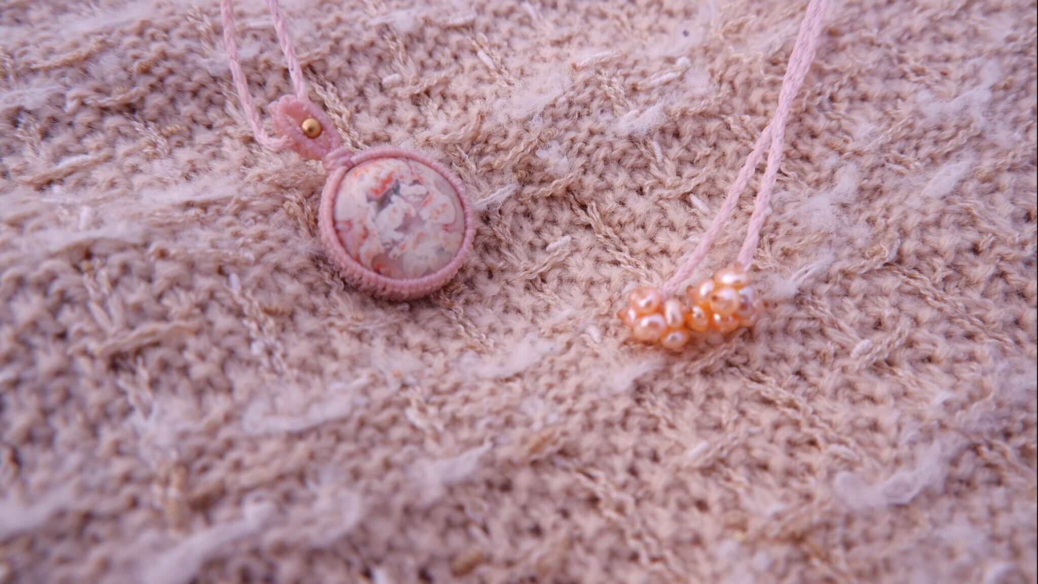 エンド部分には小さなピンクパールビーズを組み合わせました。