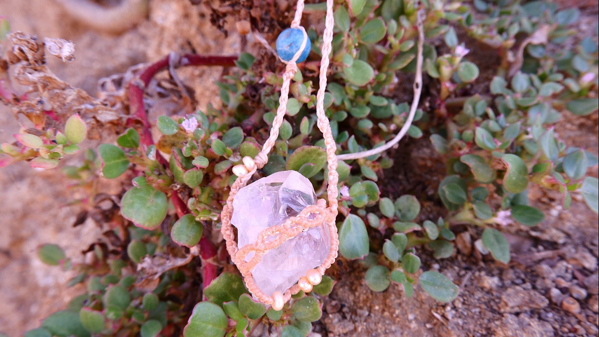 惑星たちのようにブルーアパタイトとピンクパールを配置。