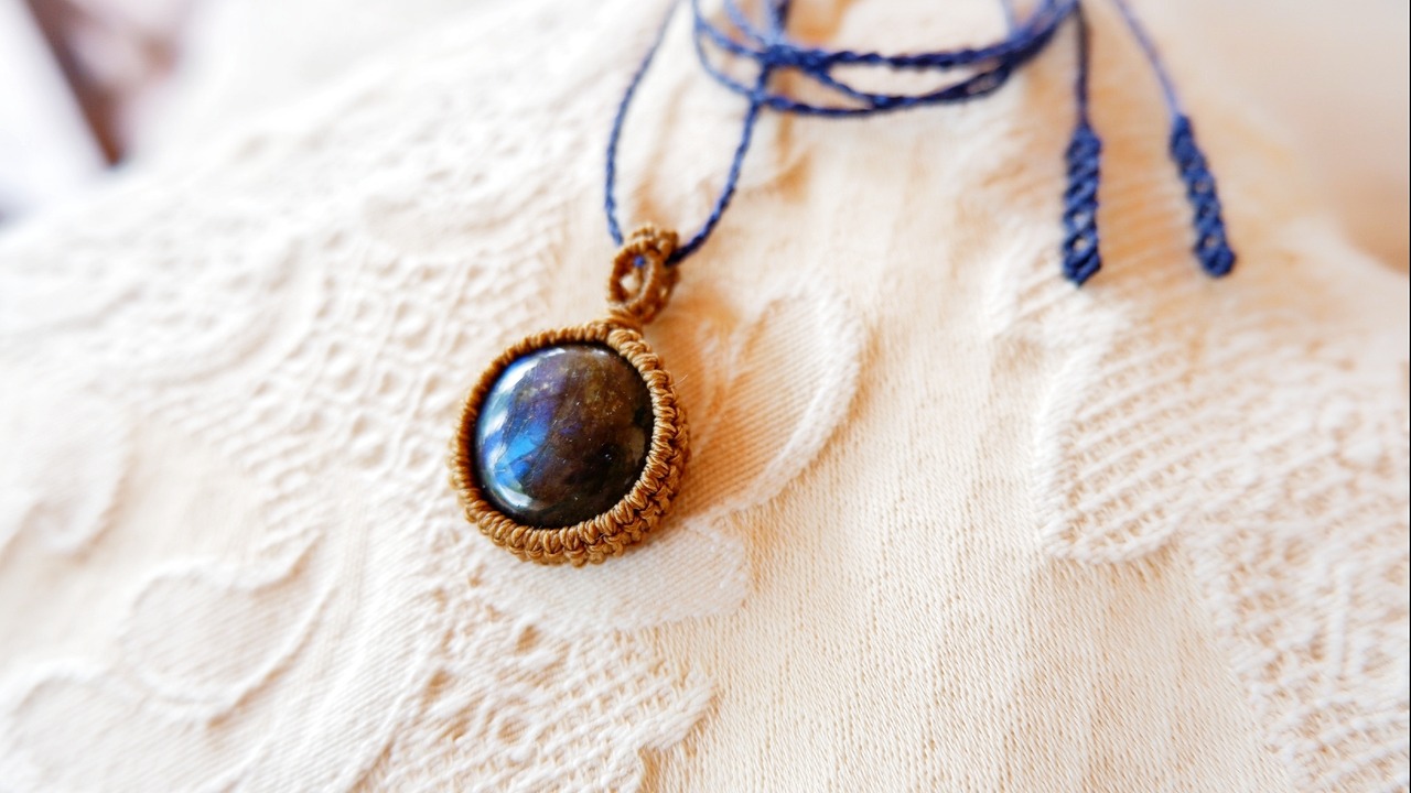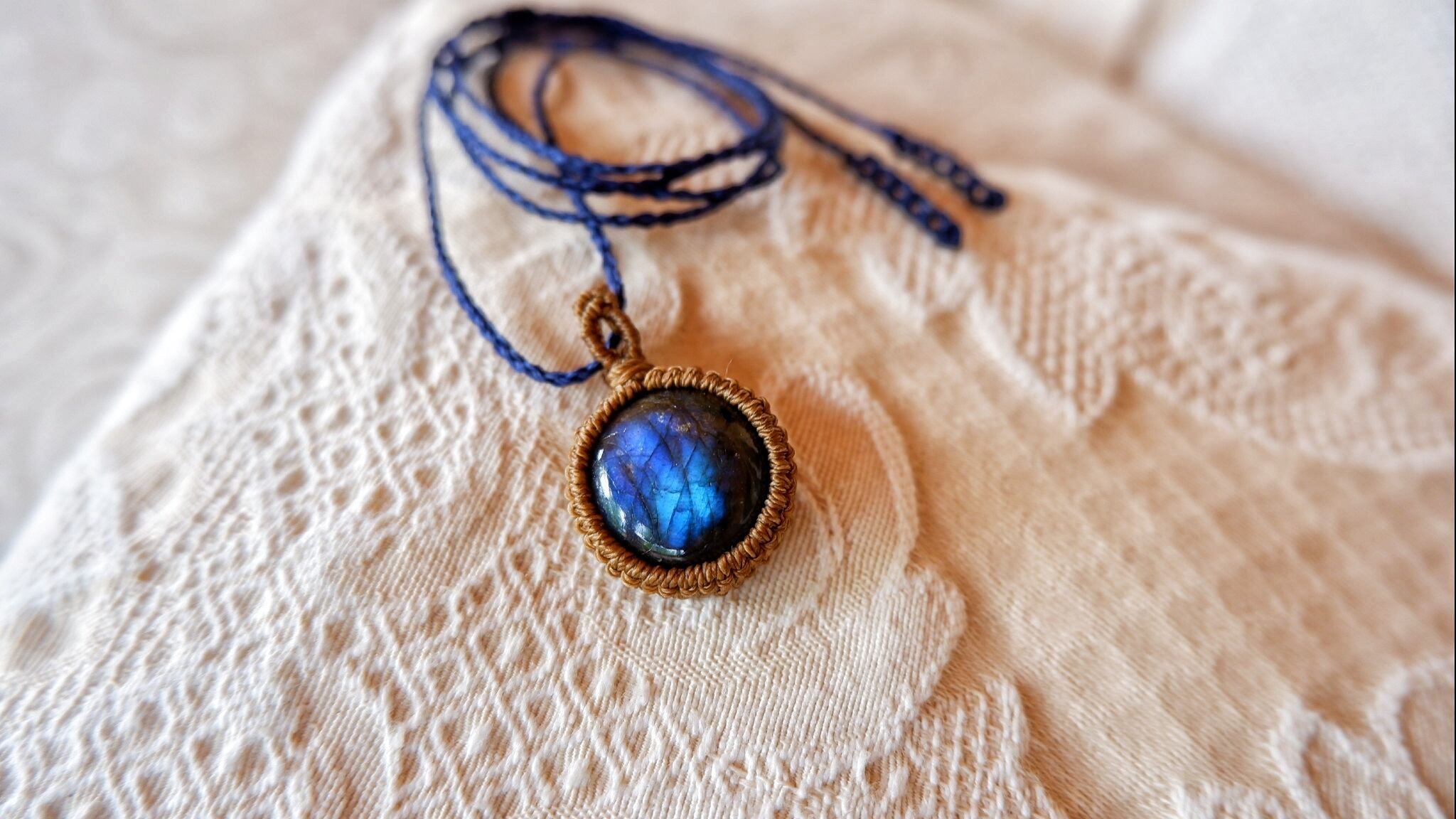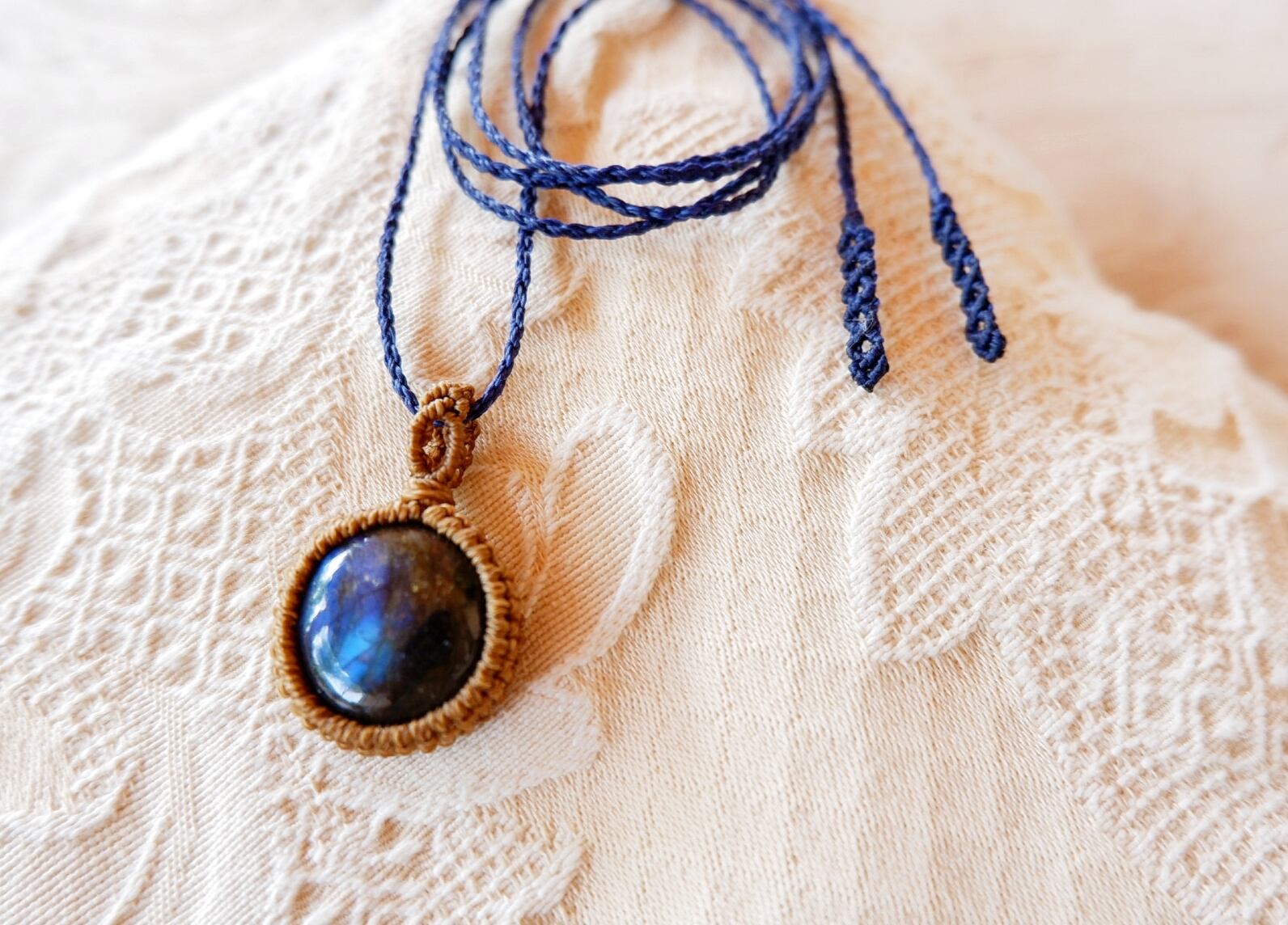 まんまるに磨かれた、深い青色の光が角度によってほんのり灯る、ラブラドライトのネックレス。