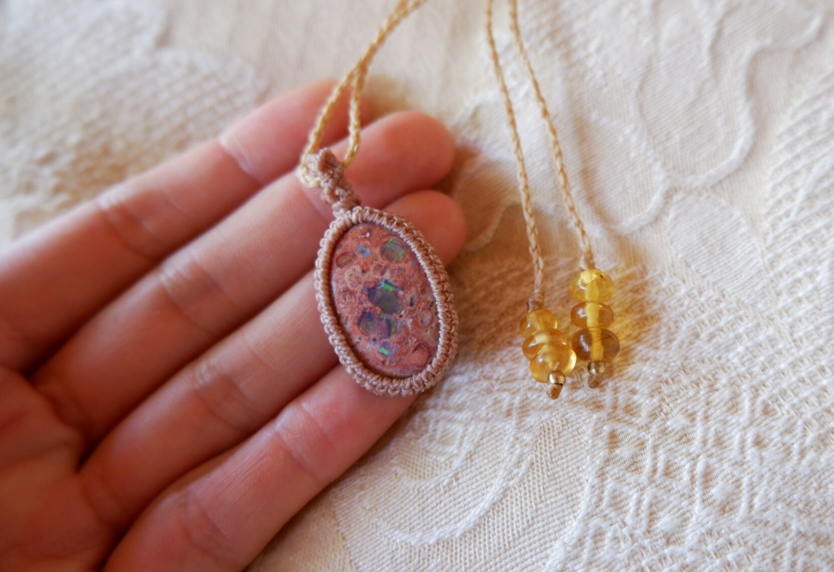 オパールの魅力を存分に引き出すために、0.25mmと0.5mmの繊細な極細の糸を組み合わせて丁寧に編んでいます。