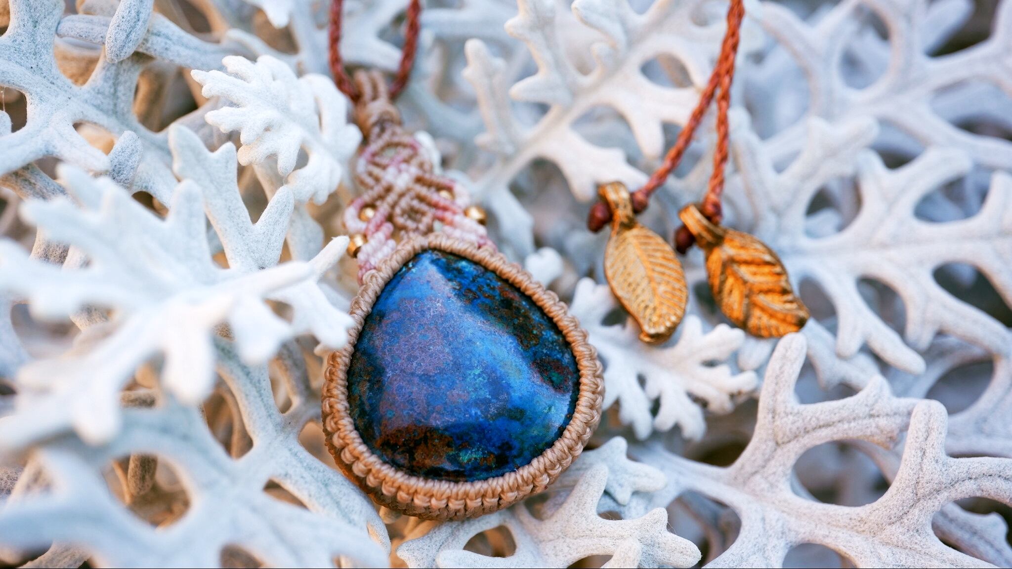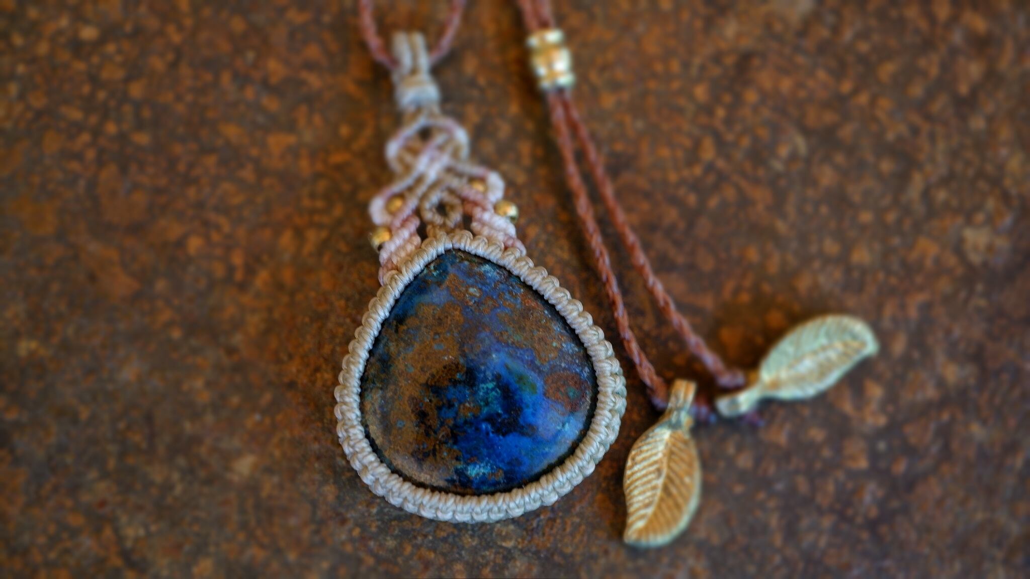 美しい青色が、心地よい自然の力を感じさせてくれるアズライトのネックレス。地球のエネルギー。それは大地も海も風も。