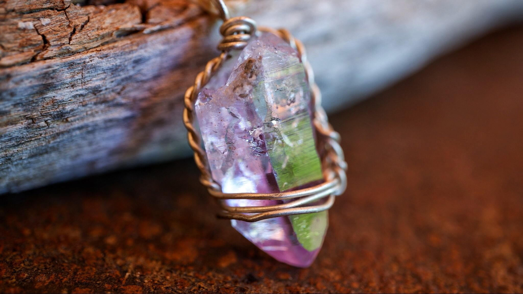 シルバー925でコーティングされたワイヤーで原石そのままのカタチでネックレスに仕立てました。