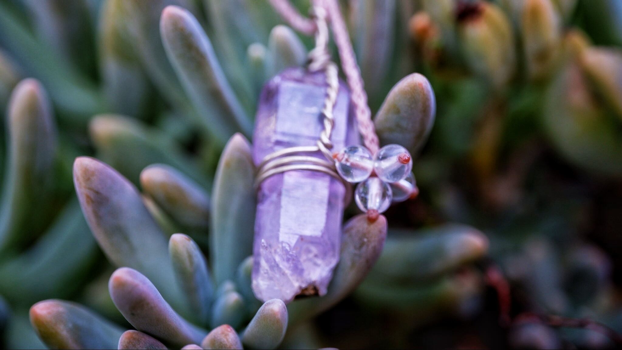 透明感とエネルギーを宿すアメジストの原石が、一つ一つ異なる形状でお守りとなります。原石そのままの生まれたままの形はとてもパワフル、自然の力と一体化し、心に癒しをもたらします。