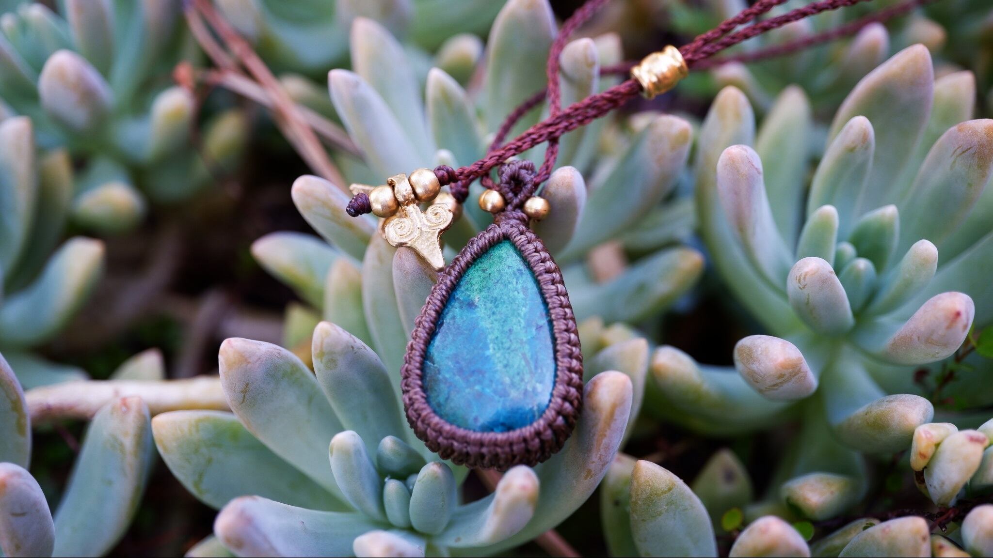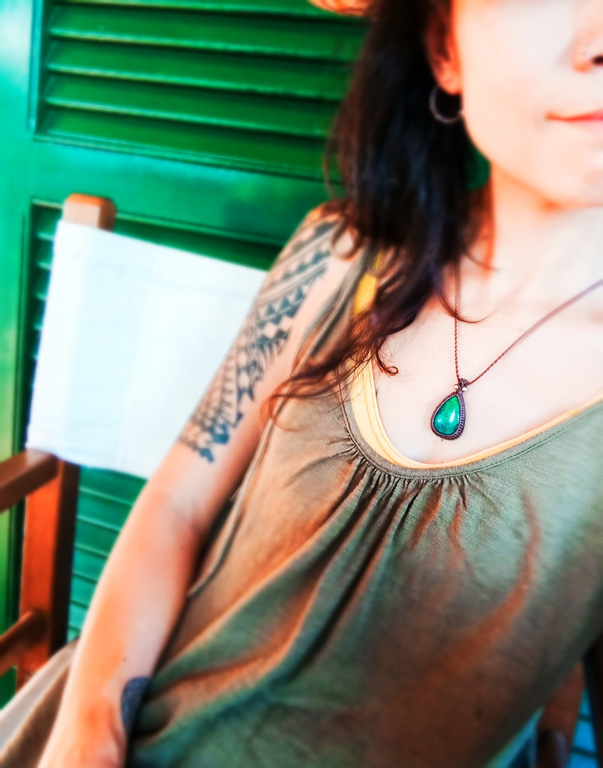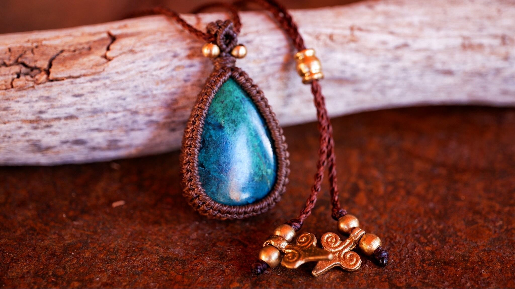 大地の力を秘めた美しいグリーンのクリソコラのネックレス。