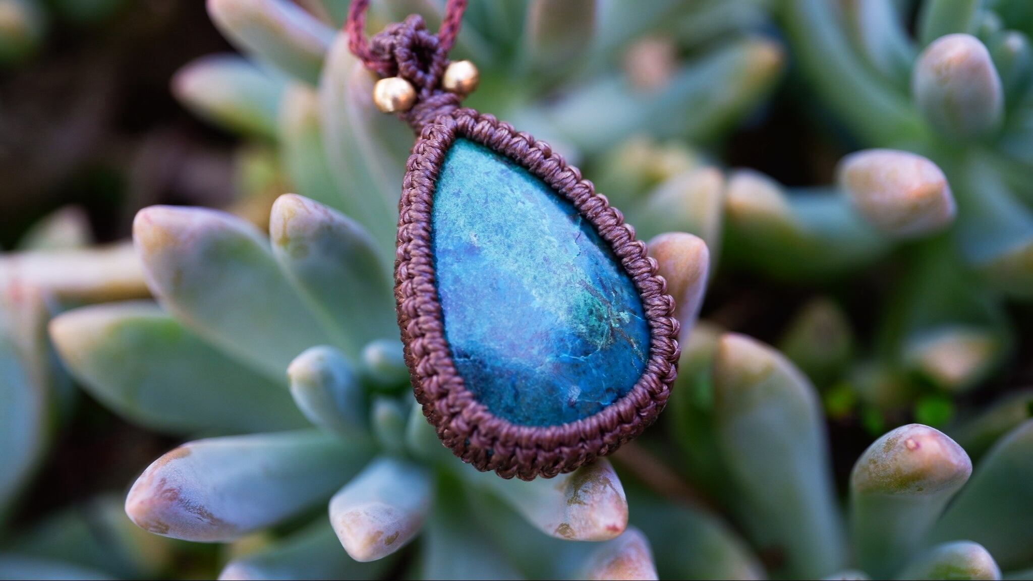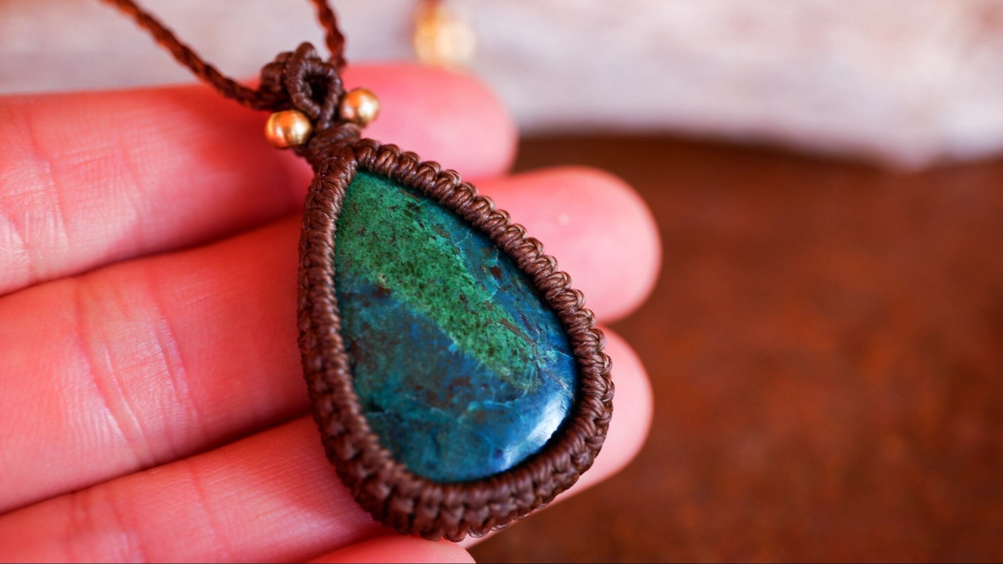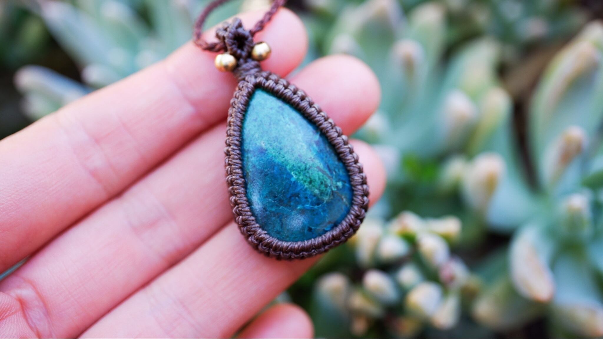 大地の力を秘めた美しいグリーンのクリソコラのネックレス。