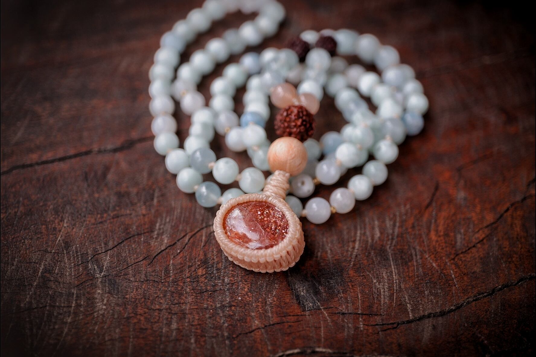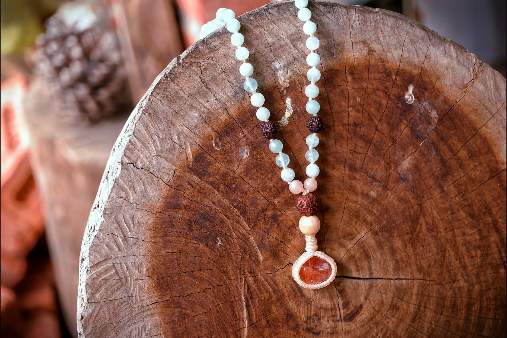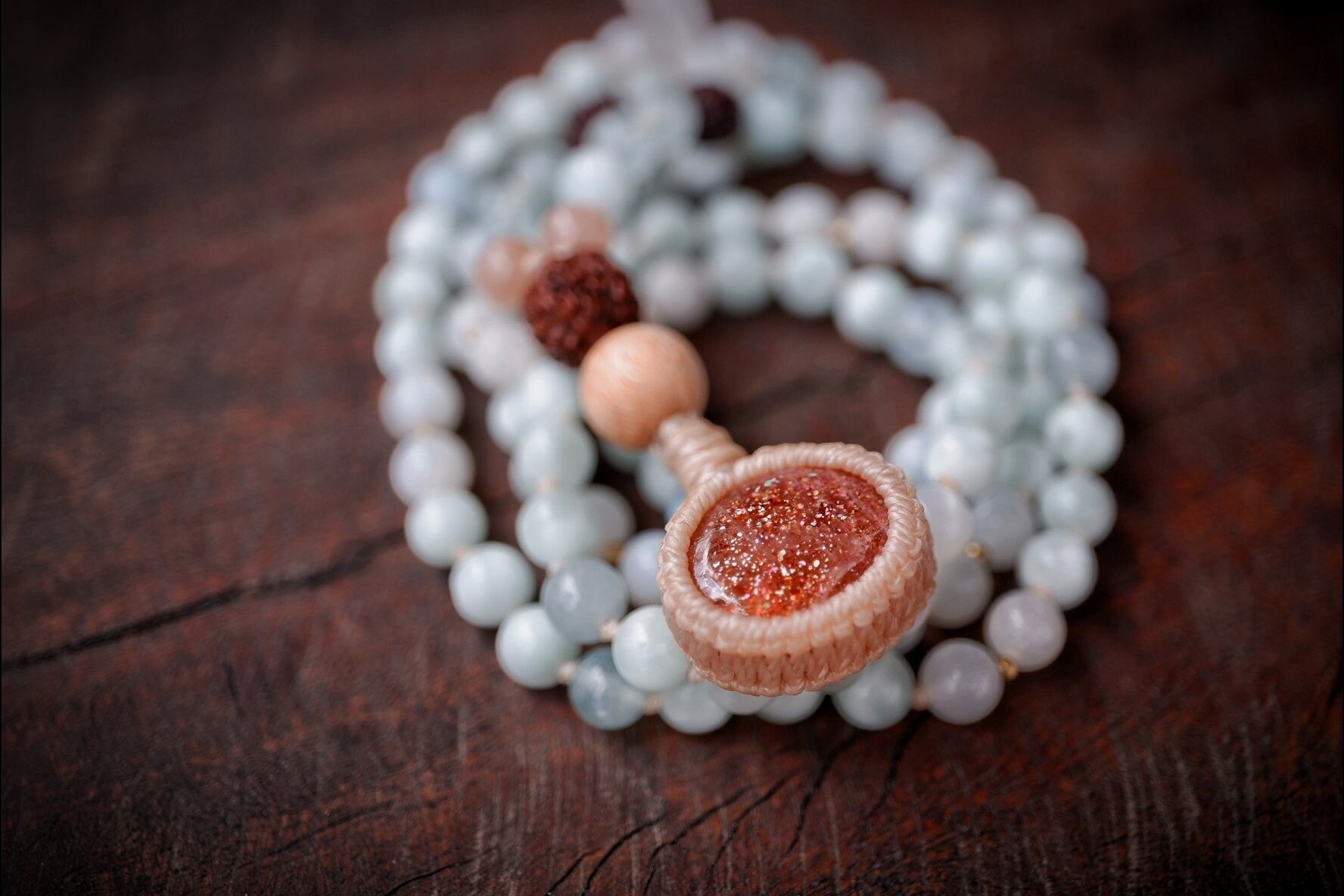 ビーズ部分:アクアマリン、セレスタイト、ムーンストーン、オレンジムーンストーン、ルドラクシャ