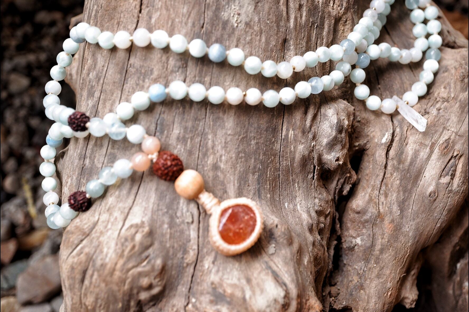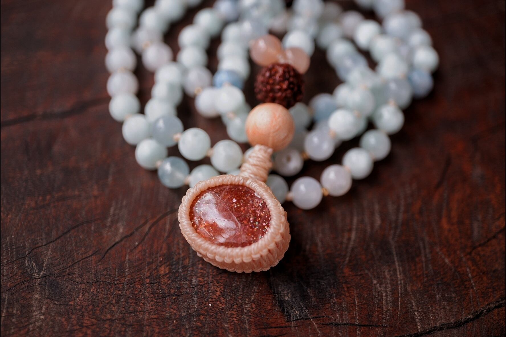 Japamala : Sunstone & Celestite & Aquamarine