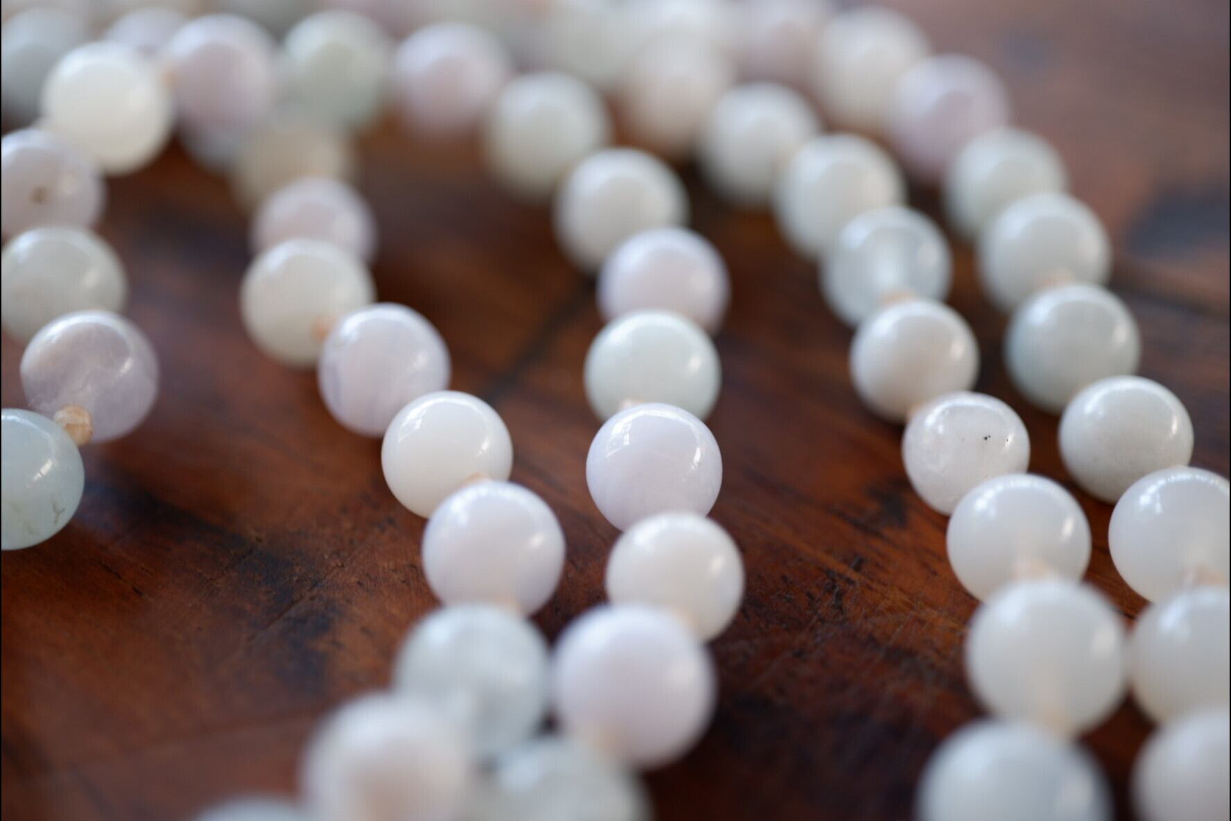 ひとつビーズを通して、ひとつ結び目を作る。マラを繰っていくとき、ビーズとビーズの間、この結び目に瞑想が起こる、と言われています。
