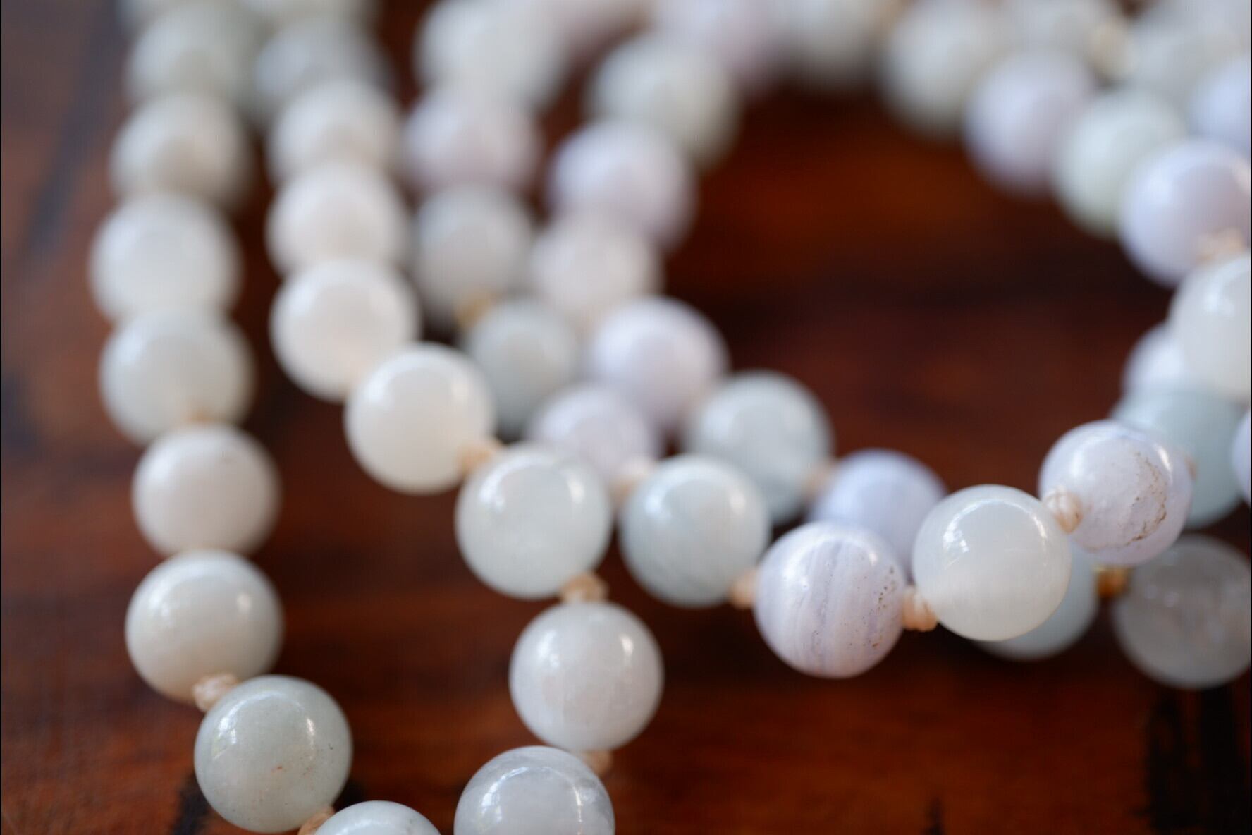 Japamala : Aquamarine & Moonstone & Blue Lace Agate