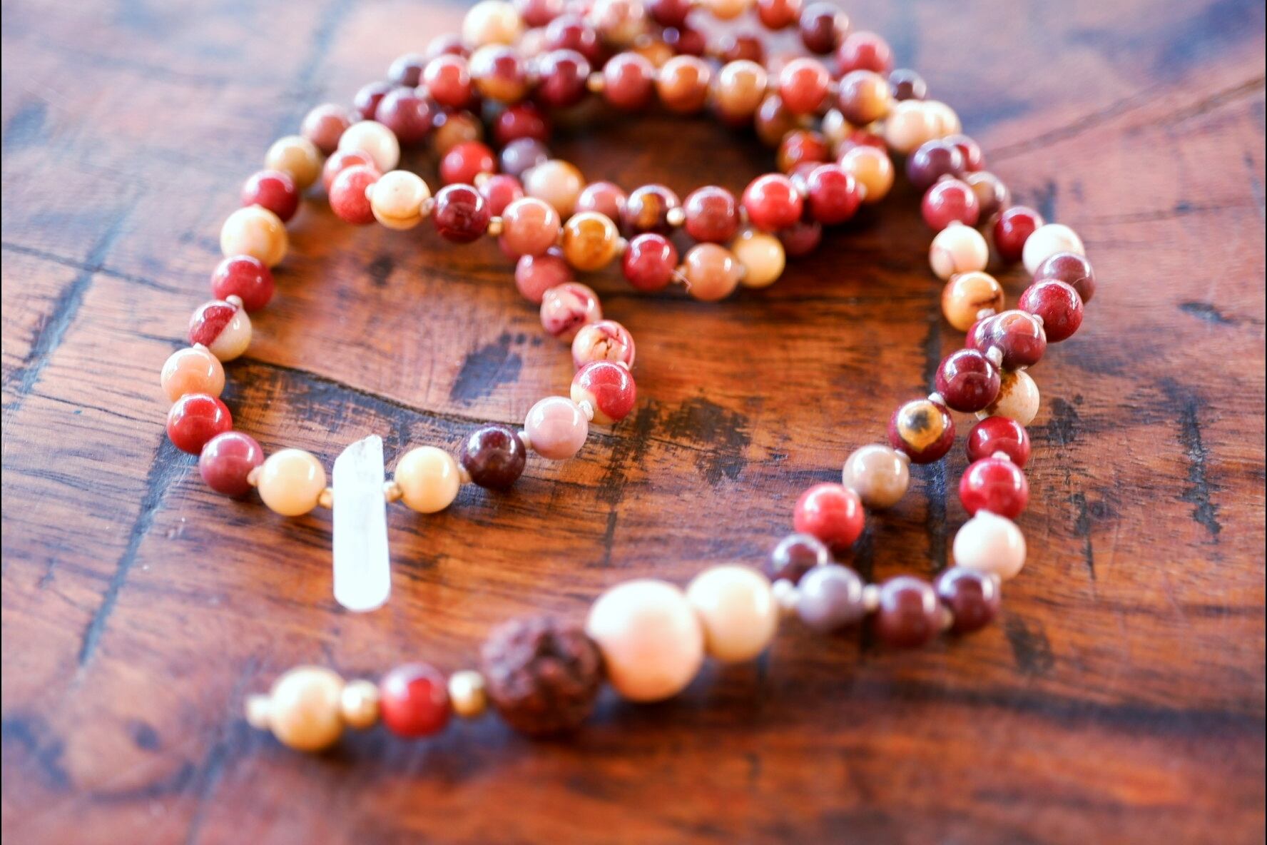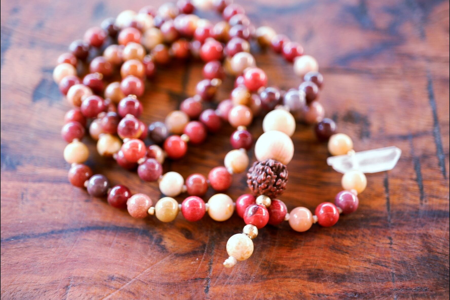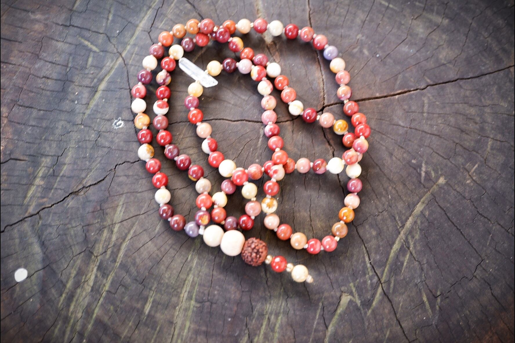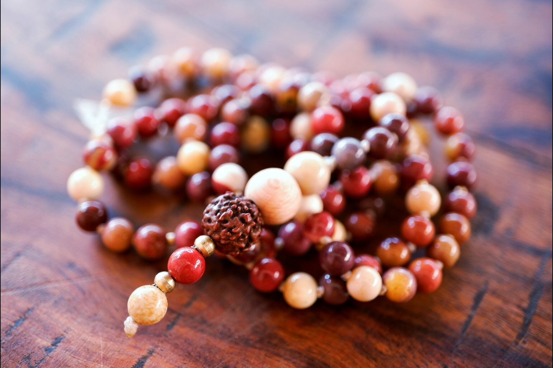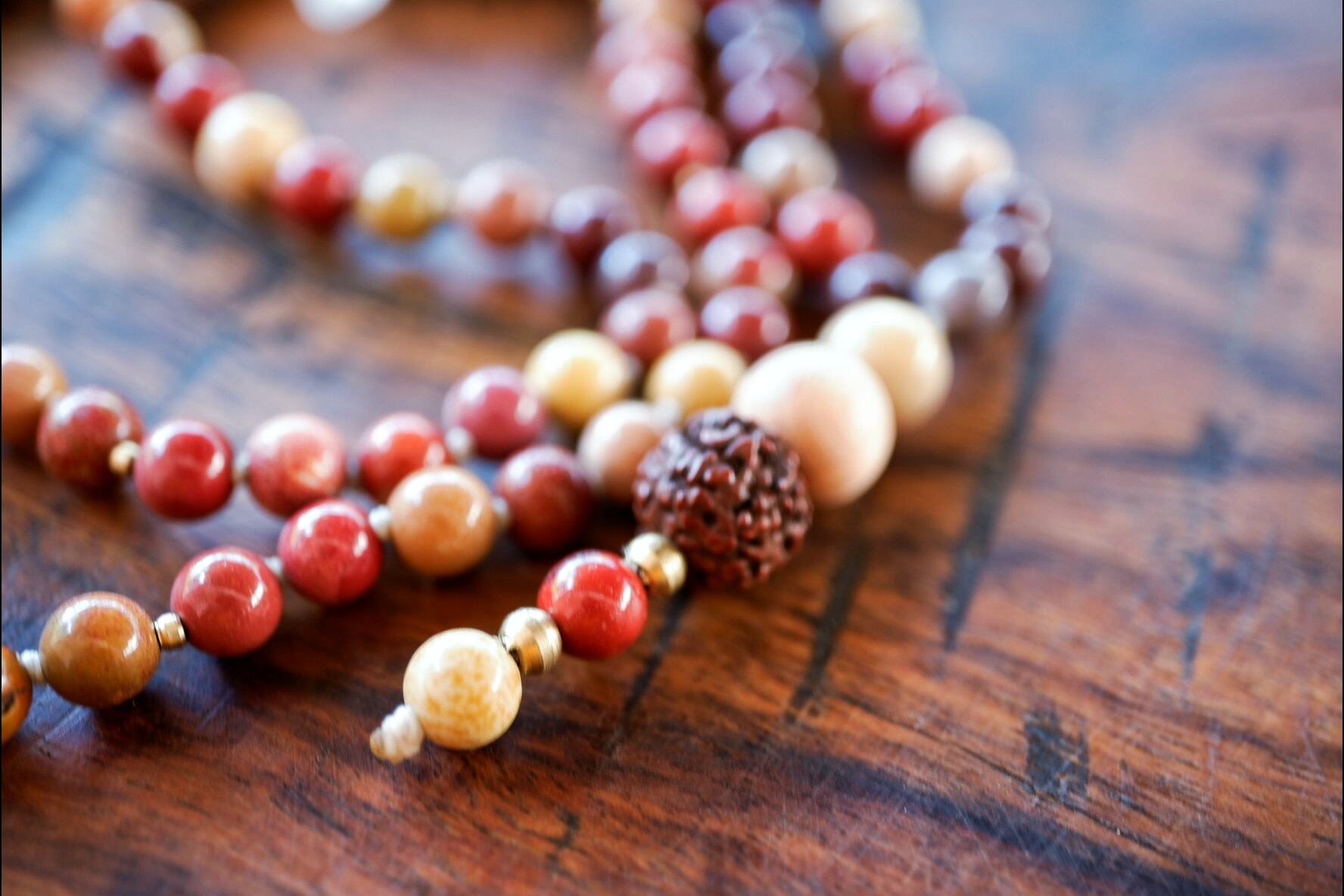 グルビーズ:ルドラクシャ&ブナの木 & フォシルコーラル & モカイトジャスパー