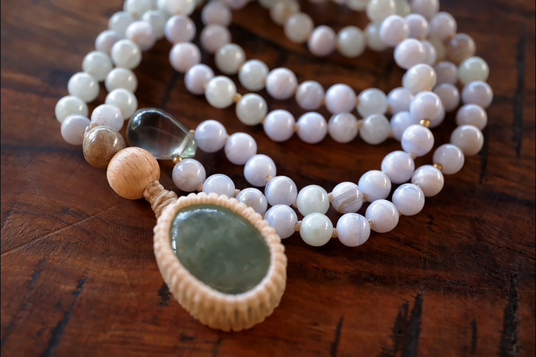 Japamala : Aquamarine & Jade & Blue Lace Agate