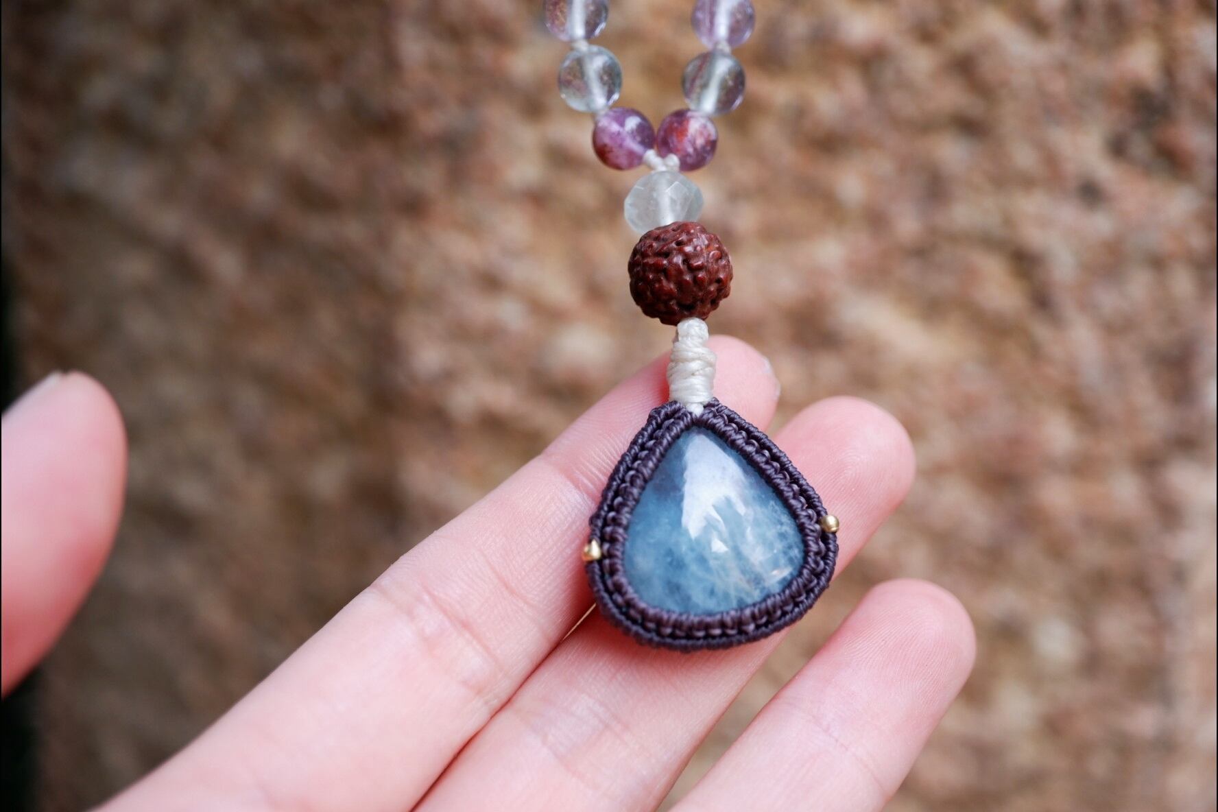 トップに選んだのは、美しい水色のドロップ型のアクアマリン。アクアマリンは海のエネルギー。清らかな海で、心身ともに清められ癒やされていくようなエネルギー。